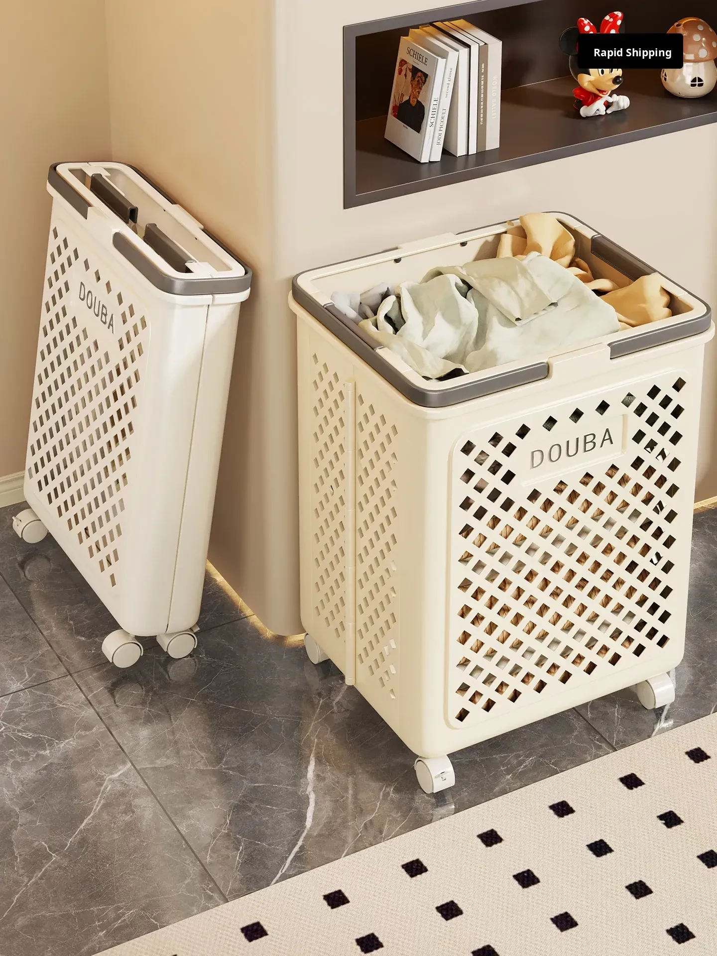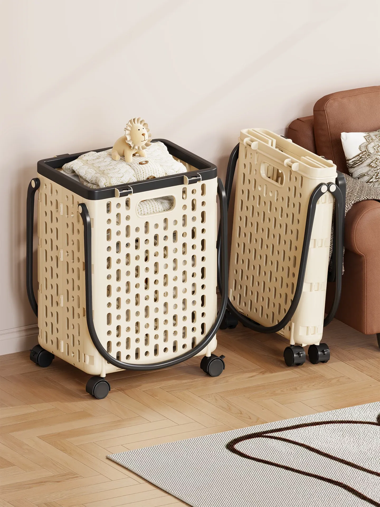 Large Capacity Foldable Laundry Basket with Wheels - Stylish and Elegant Laundry Hamper for Home Use, Perfect for Bathrooms and Easy Clothes Storage.