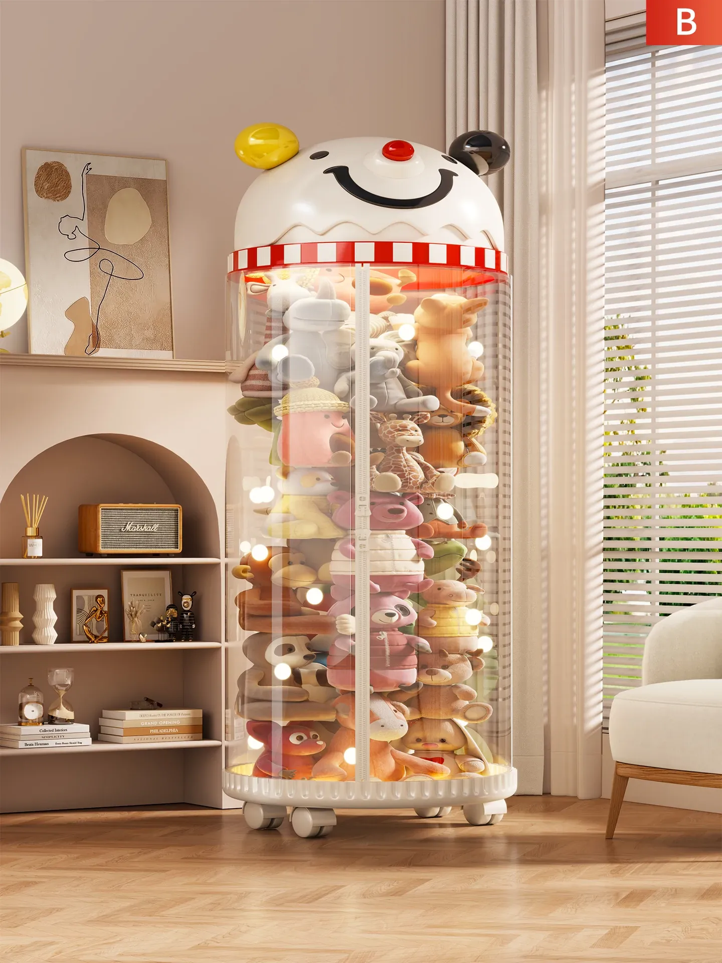 Stylish Large Capacity Toy Storage Bin - Dustproof Transparent Container for Dolls and Plush Toys - The Perfect Organizer for Home Use!