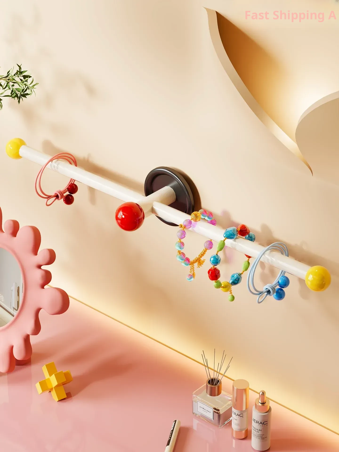 Wall-Mounted Hair Accessories Organizer with No Drilling - Stylish Dopamine-Inspired Display Rack for Bracelets, Headbands, and Jewelry Storage in Your Bathroom