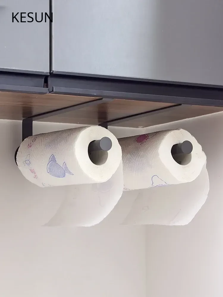 No-Drill Kitchen Paper Towel Holder - Space-Saving Under-Cabinet Roll Organizer for Plastic Wrap, Bags, and Cloths - Easy Installation Hanging Storage Solution
