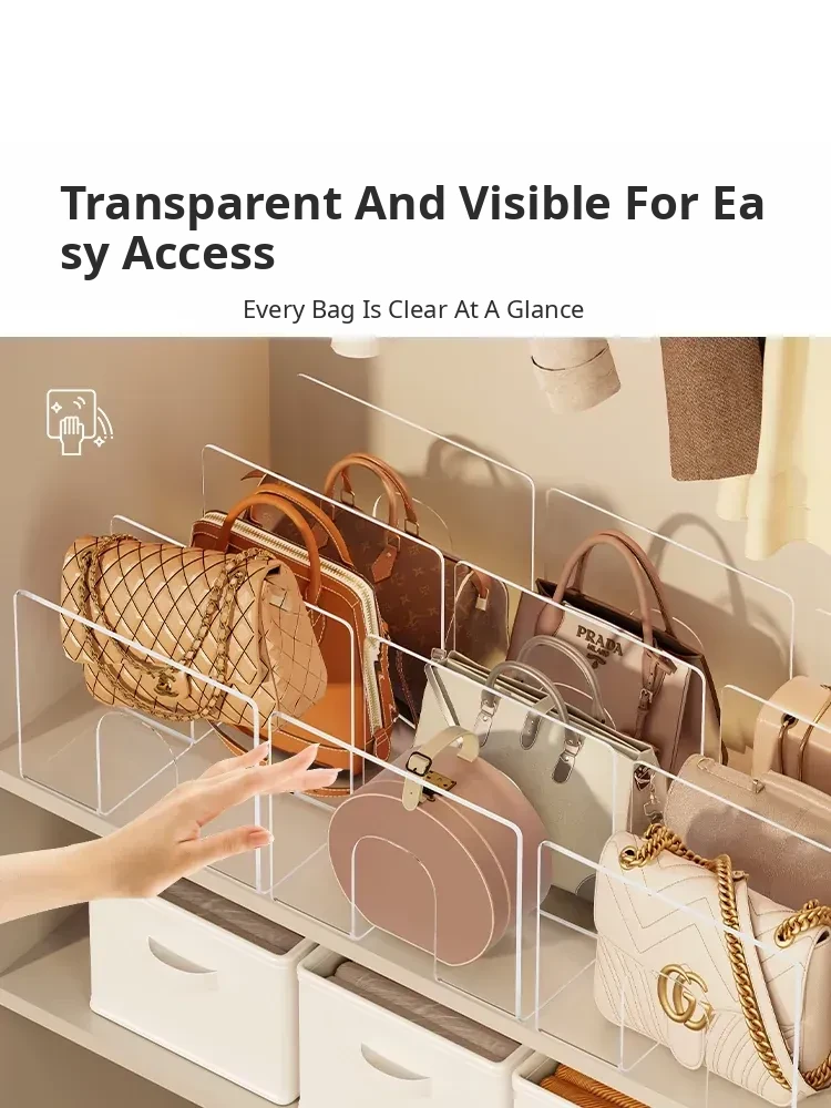 Acrylic Bag Organizer - Transparent Dividers for Closet Storage, Stylish Purse Display Rack, Perfect for Neat and Easy Access to Your Handbags!