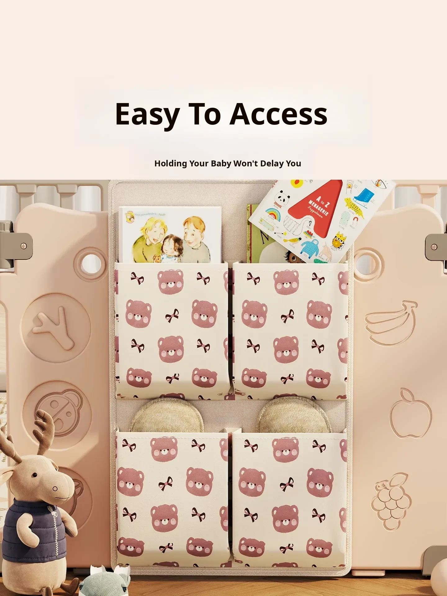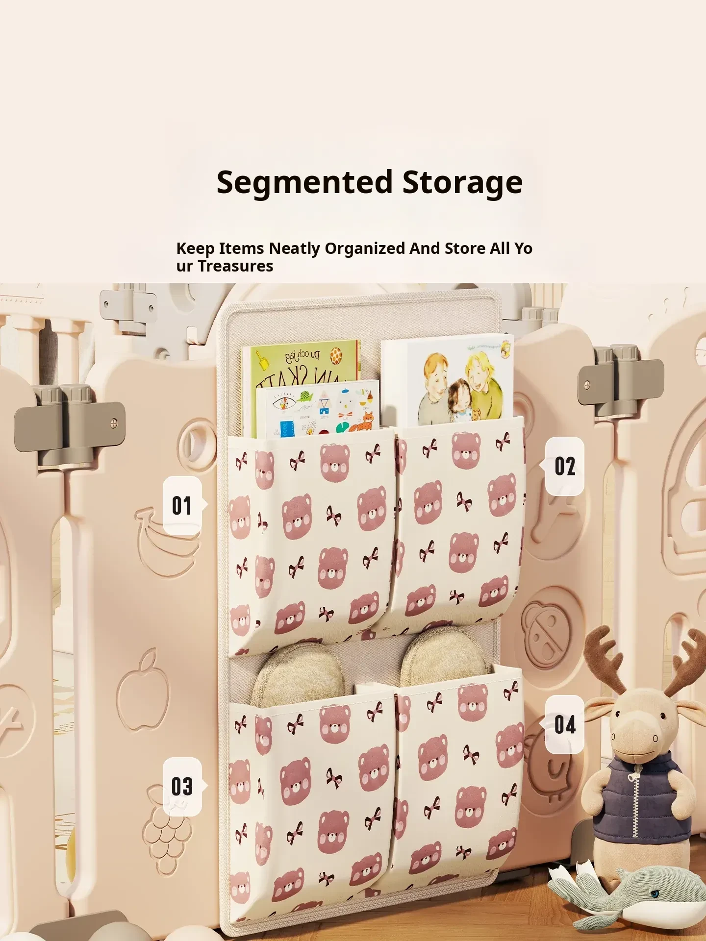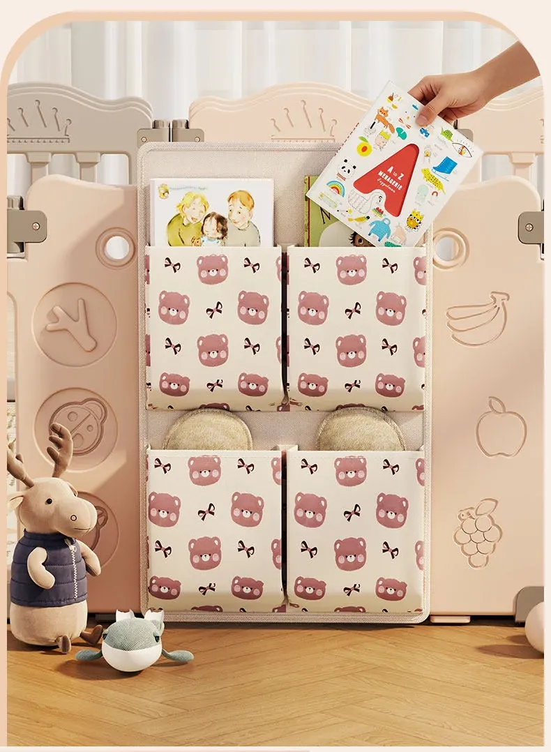 Baby Playpen Organizer Bag - Children's Picture Book Storage Rack, Toy and Bottle Holder, Climbing Frame Safety Barrier, Versatile Storage Solution for Nursery.