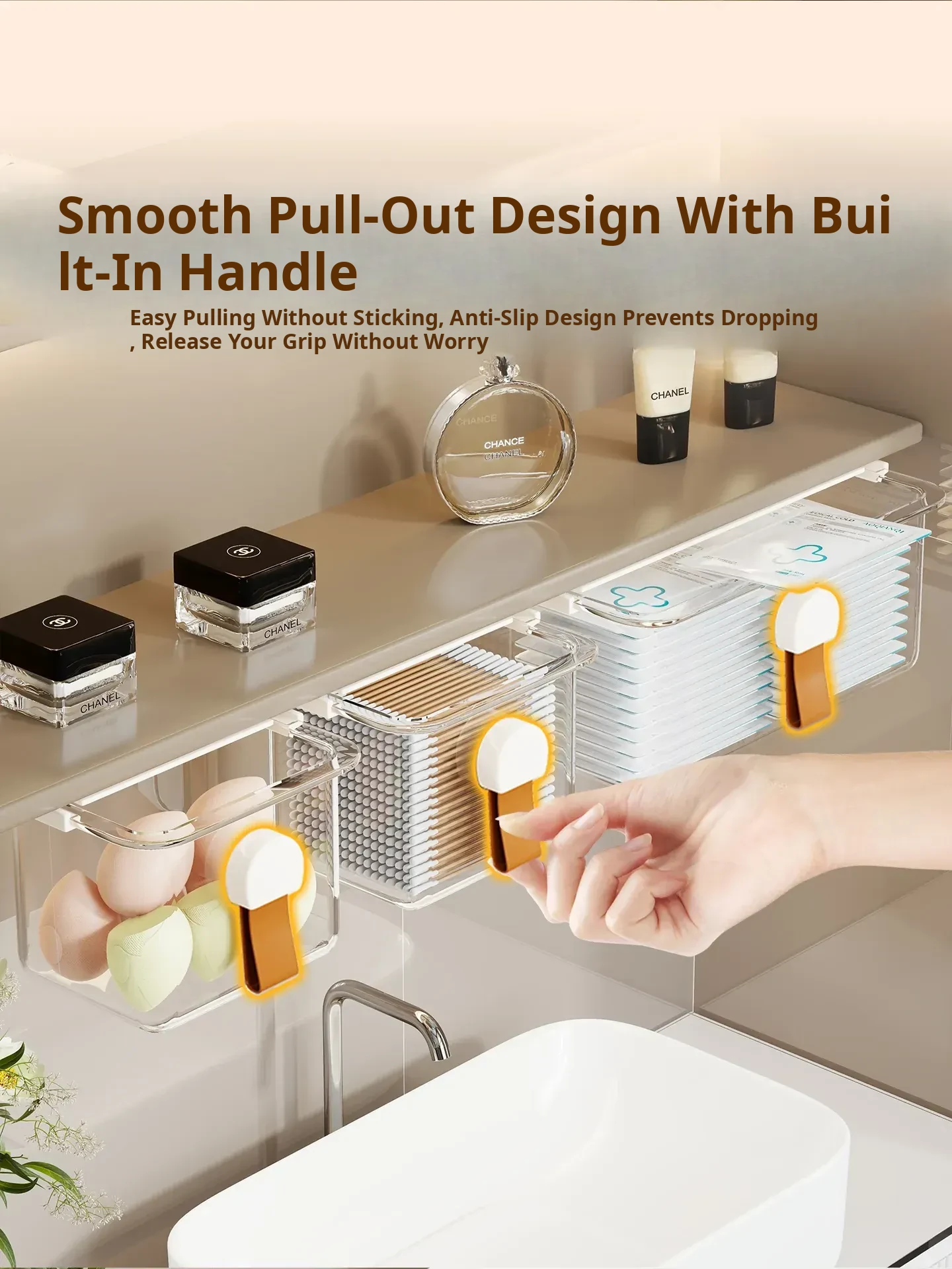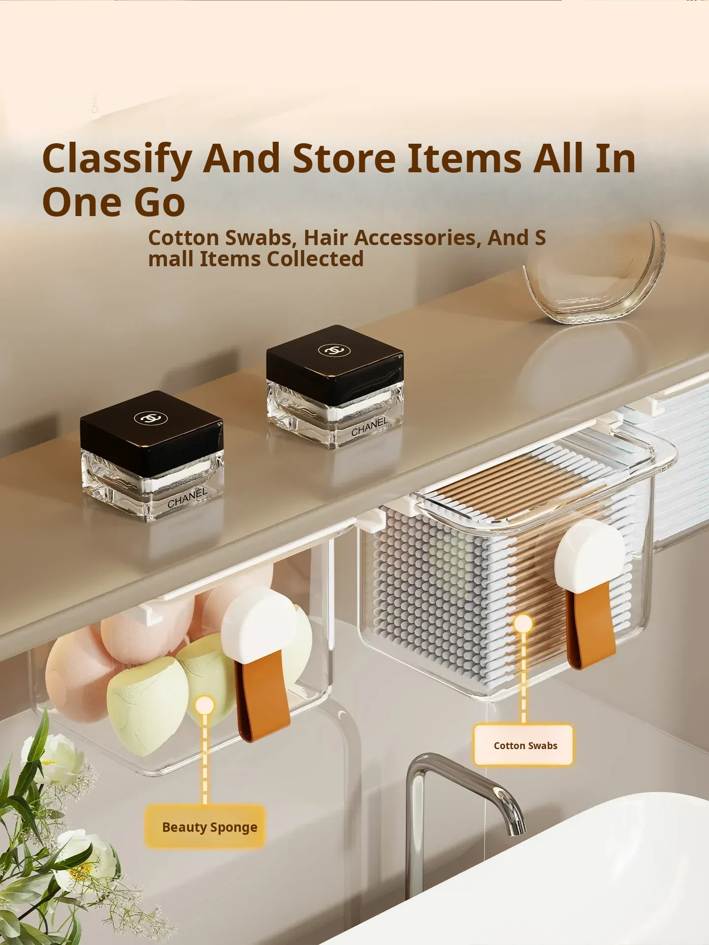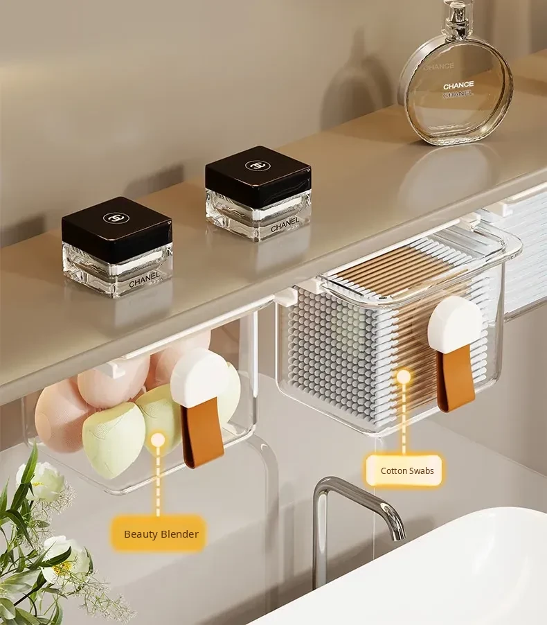 Clear Acrylic Makeup Organizer - Pull-Out Cotton Swab and Makeup Remover Holder for Bathroom Vanity Storage, Perfect for Home Use