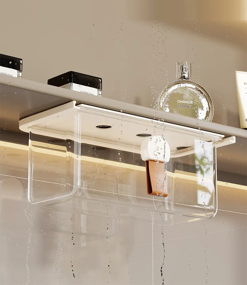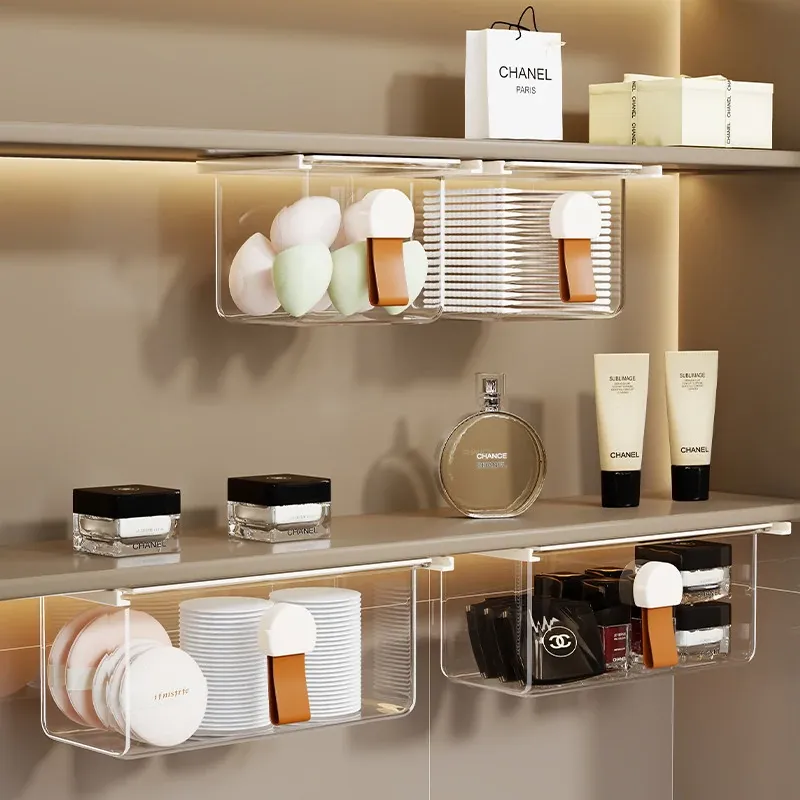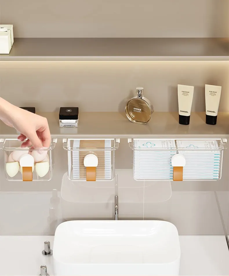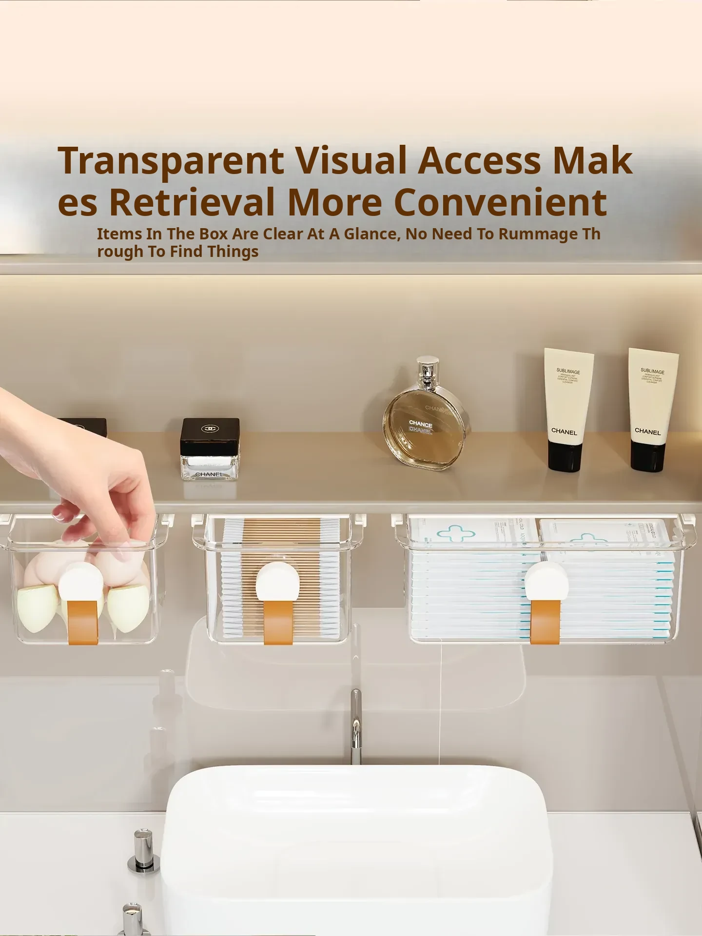 Clear Acrylic Makeup Organizer - Pull-Out Cotton Swab and Makeup Remover Holder for Bathroom Vanity Storage, Perfect for Home Use