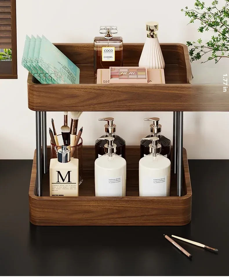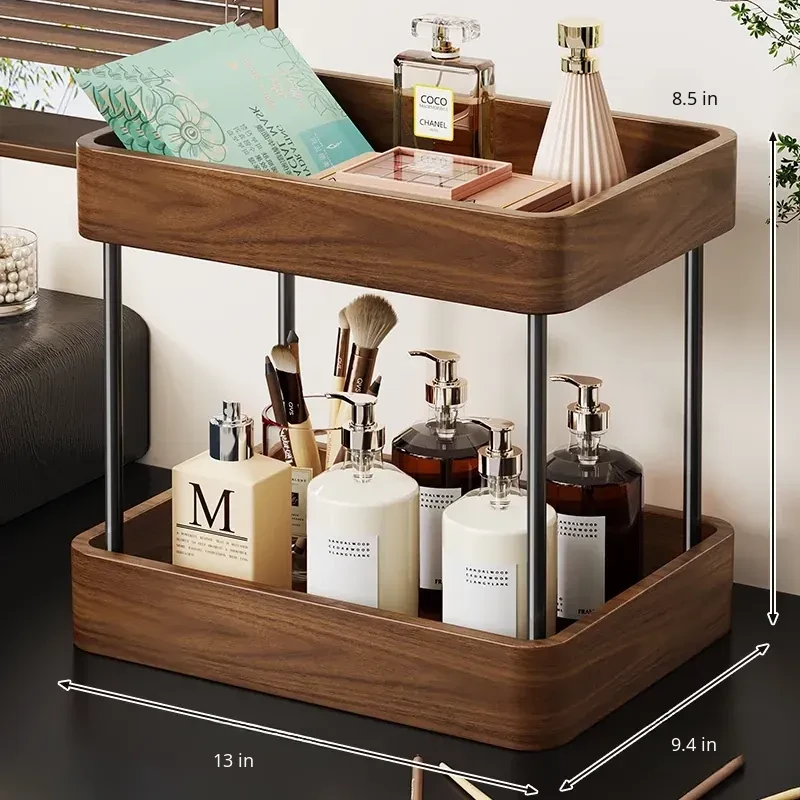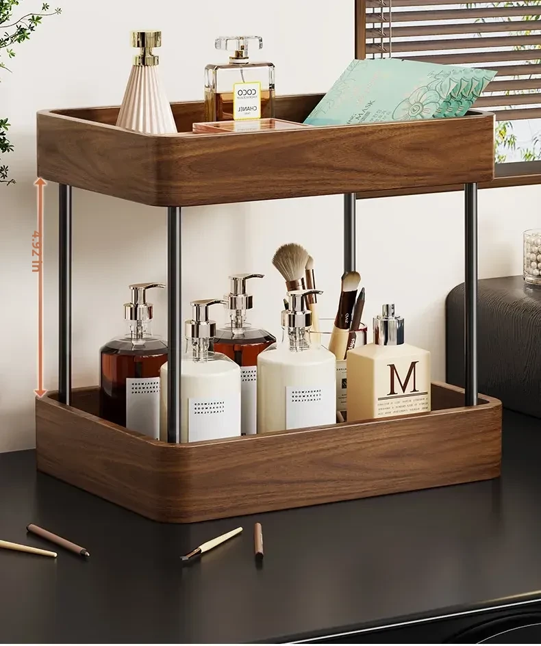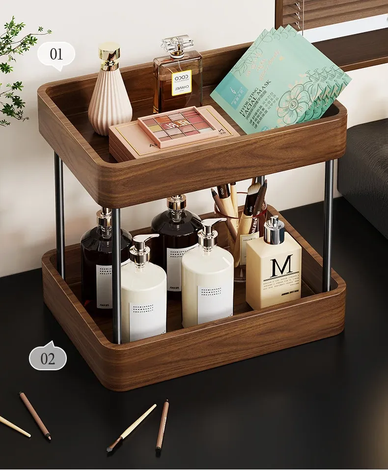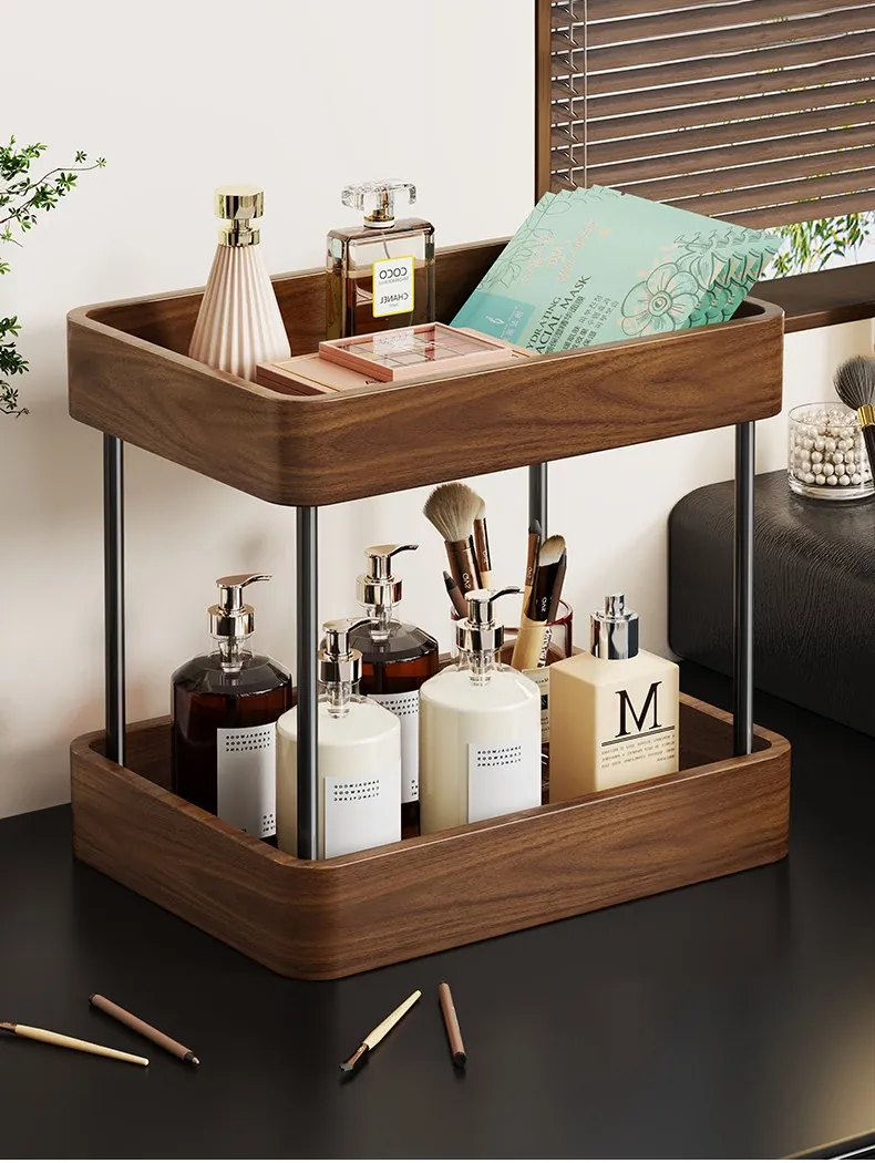 Elegant Solid Wood Makeup Organizer - Spacious Vanity Storage Box for Skincare Products & Face Masks - Stylish Desktop Display for a Chic Makeup Station