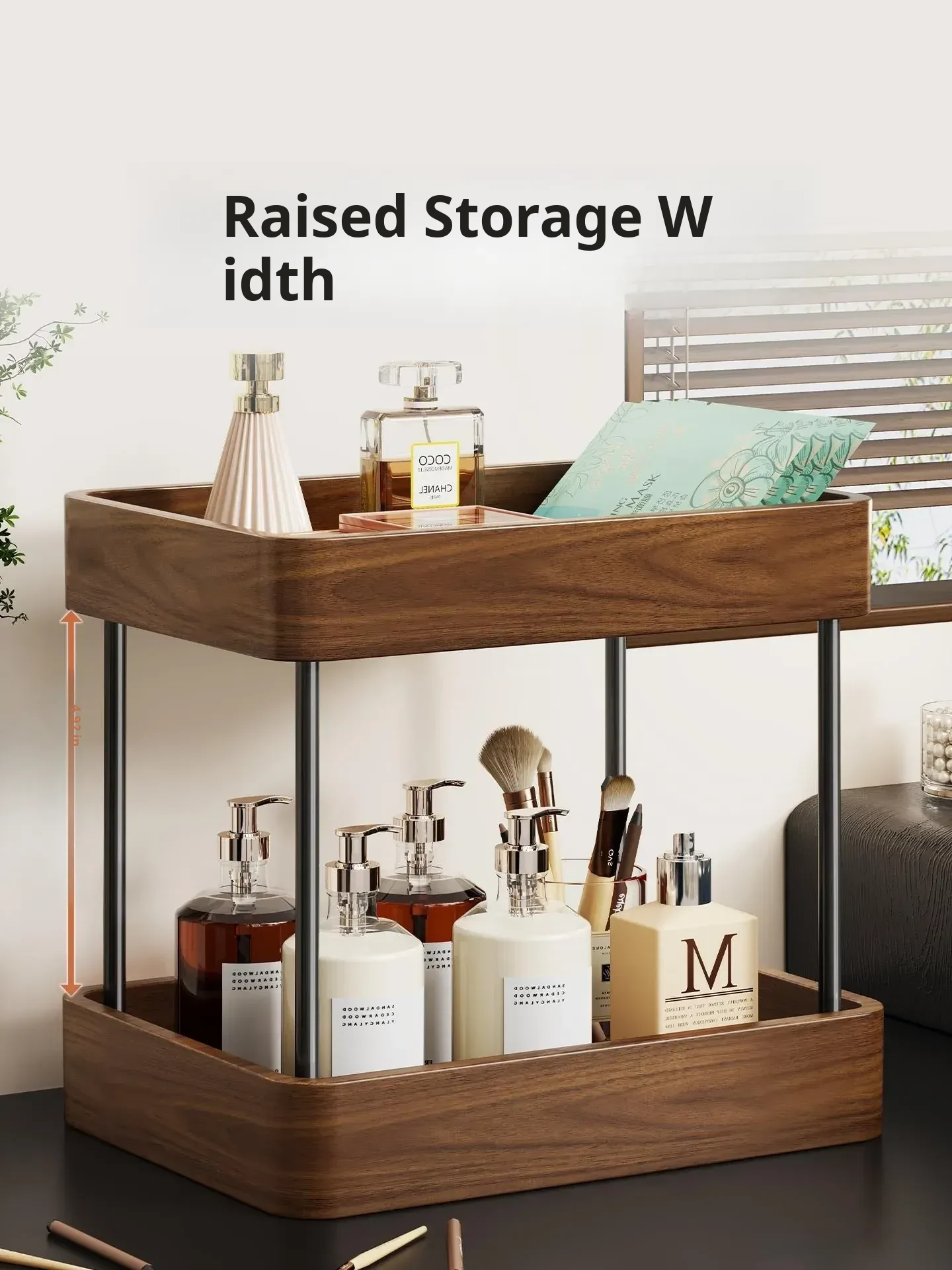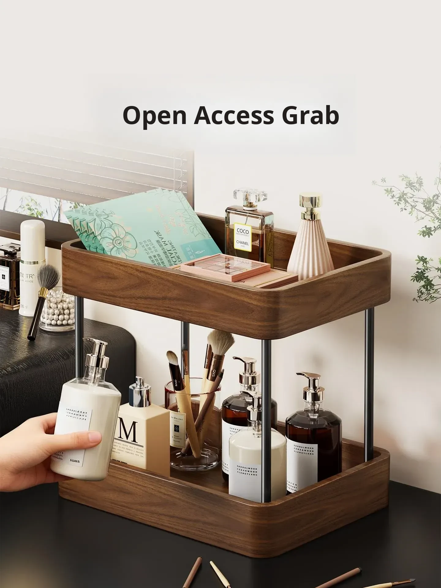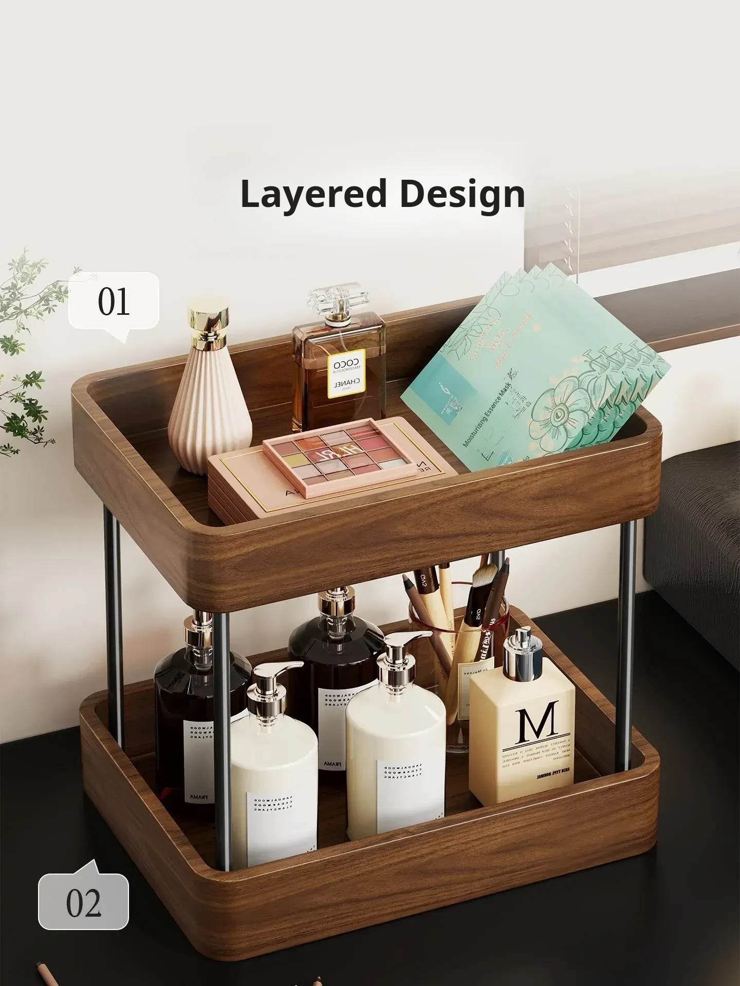 Elegant Solid Wood Makeup Organizer - Spacious Vanity Storage Box for Skincare Products & Face Masks - Stylish Desktop Display for a Chic Makeup Station