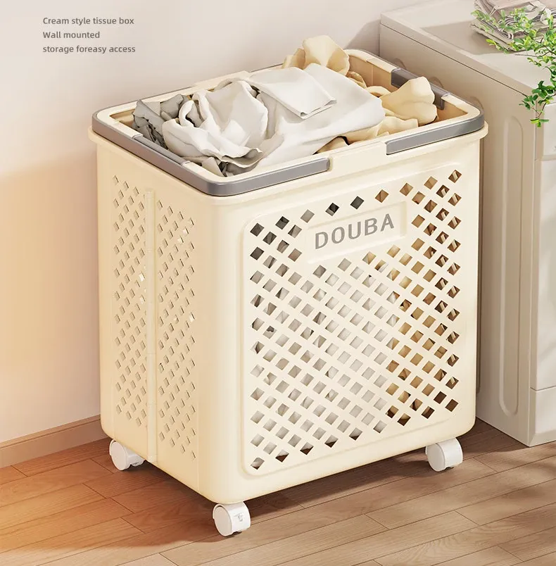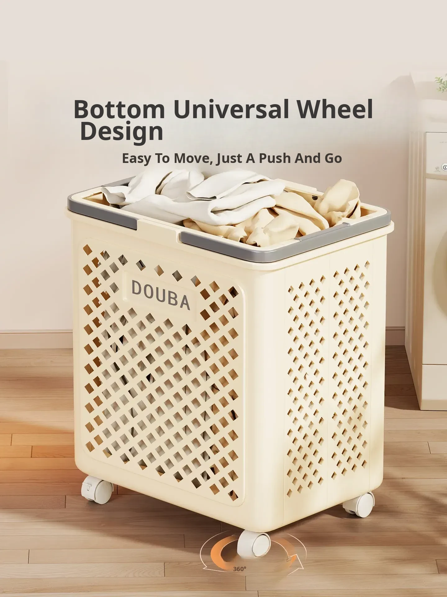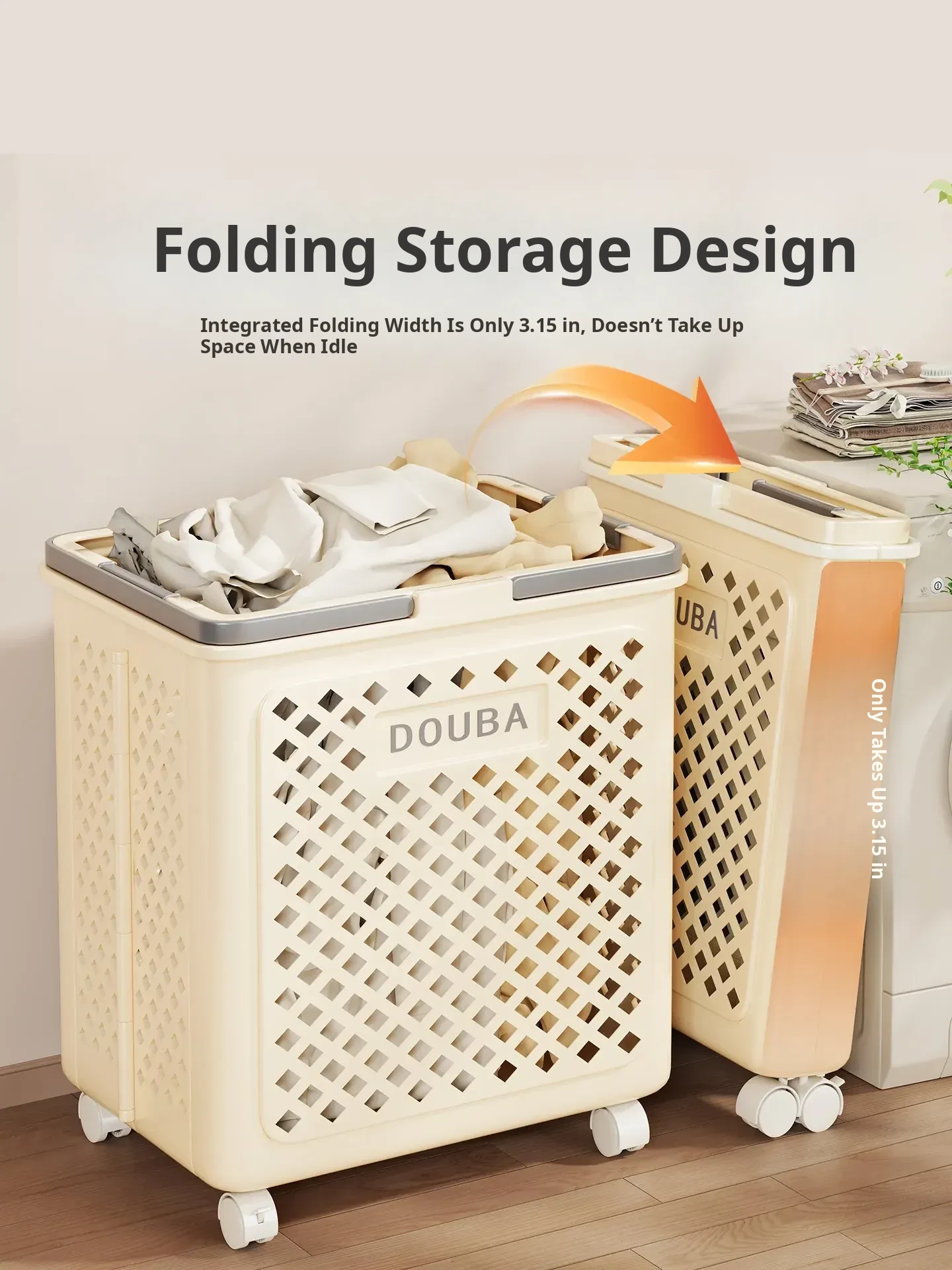 Foldable Laundry Basket with Wheels - Spacious Storage Hamper for Home Use, Perfect for Bathrooms and Laundry Rooms, Easy to Move and Tidy Up Your Dirty Clothes