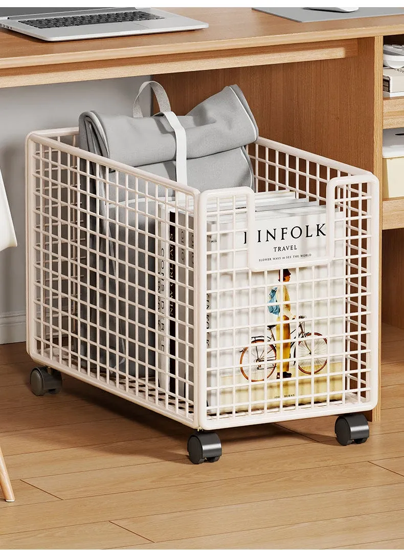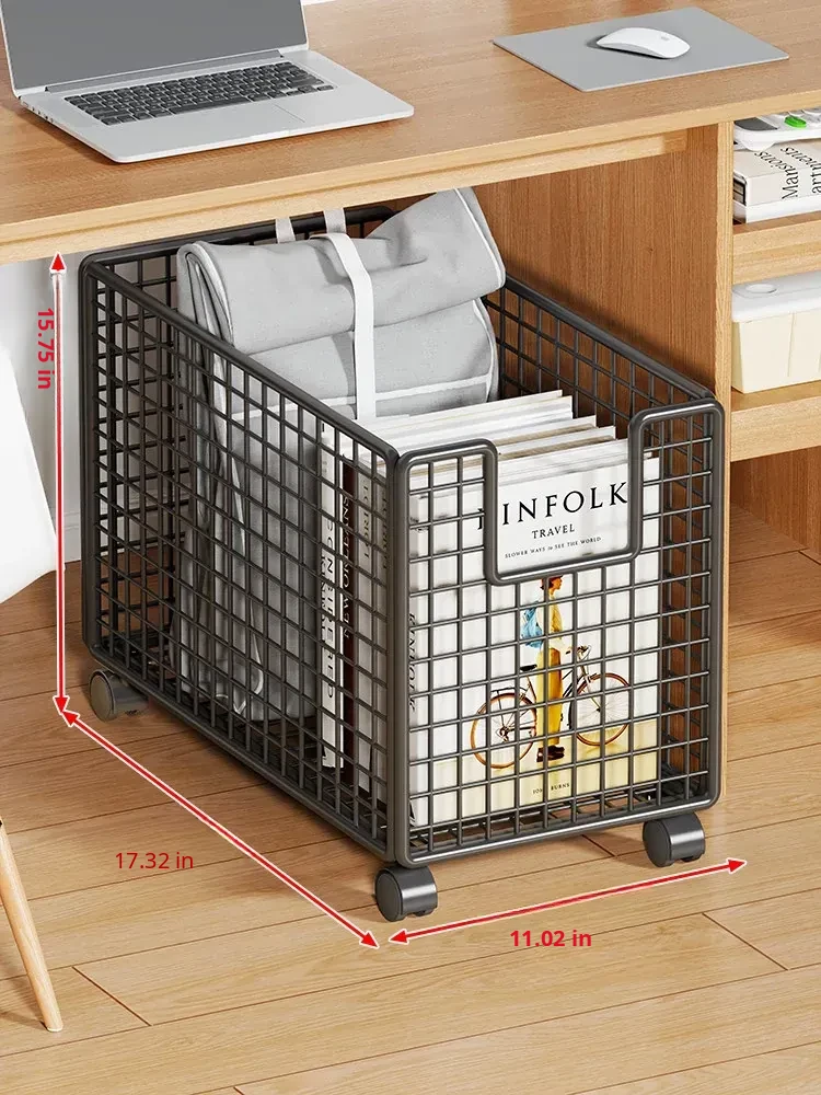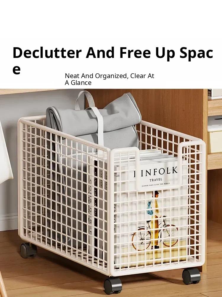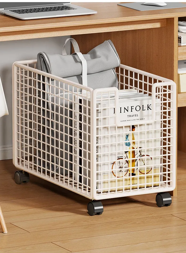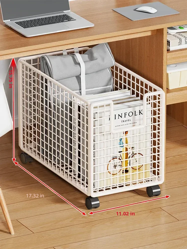 Foldable Under-Desk Bookshelf with Wheels - Space-Saving Backpack Organizer for Office Workstations, Perfect for Keeping Your Workspace Tidy and Efficient