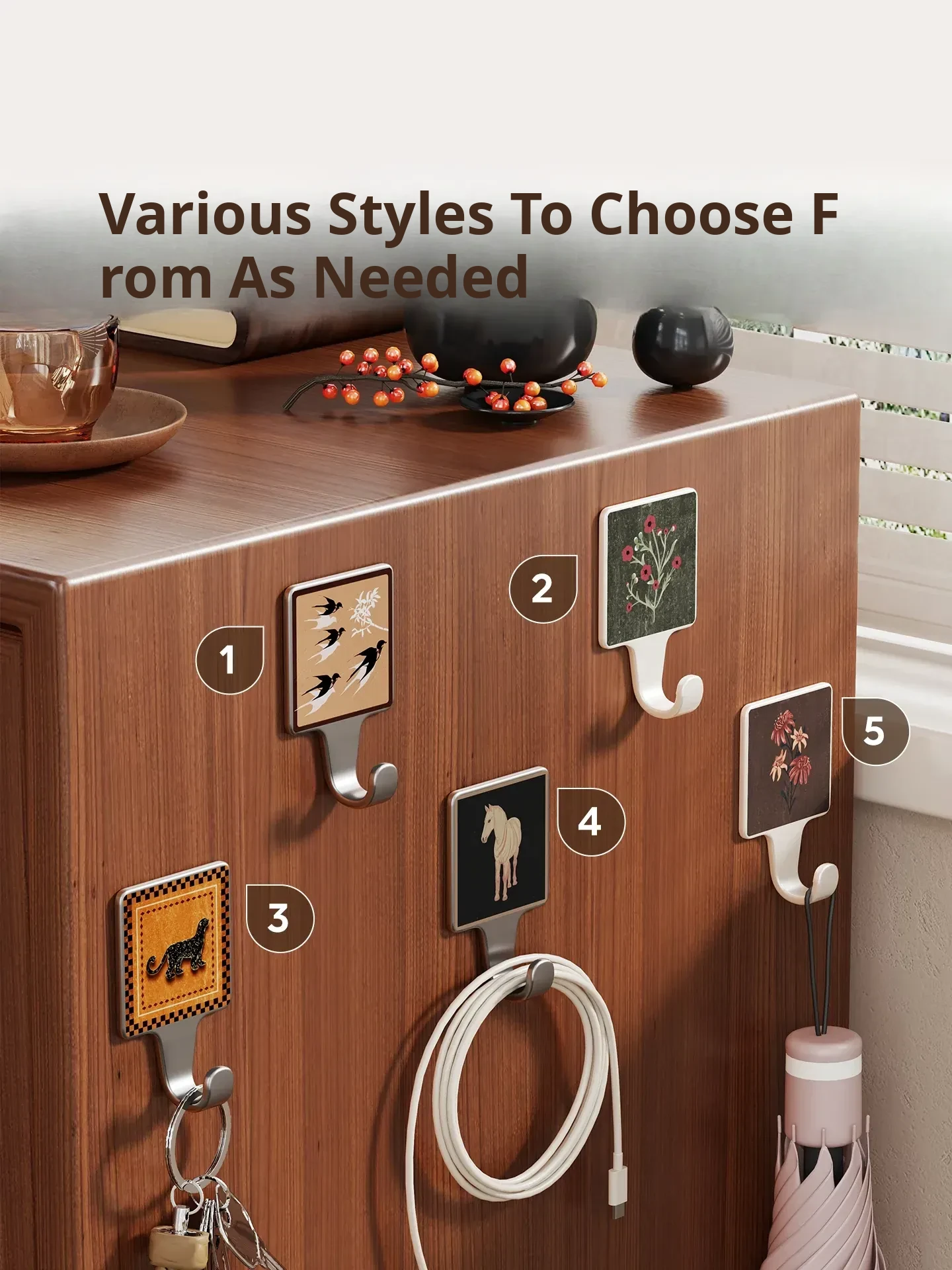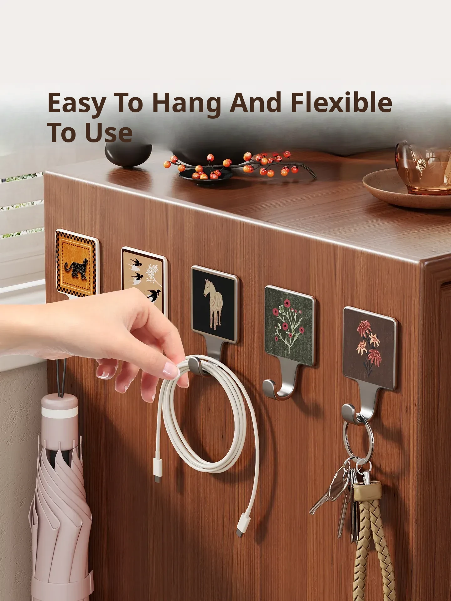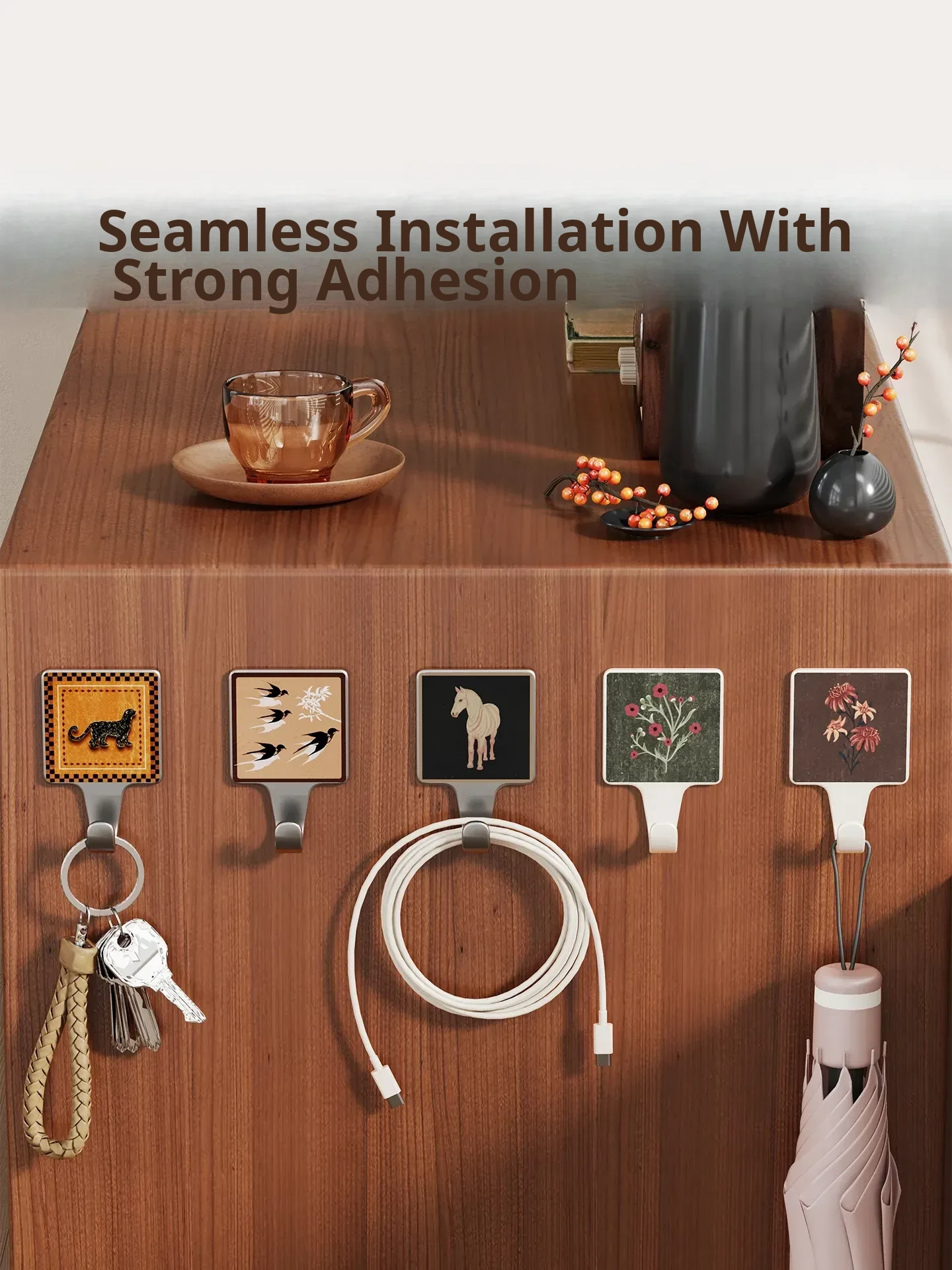 Heavy-Duty No-Drill Hooks for Kitchen and Bathroom - Damage-Free Adhesive Wall Hooks for Hanging Items Behind Doors