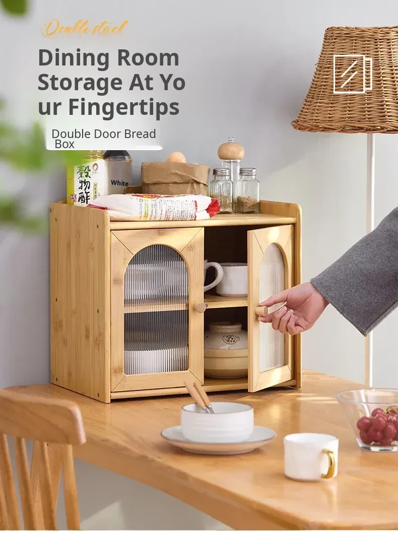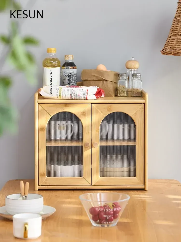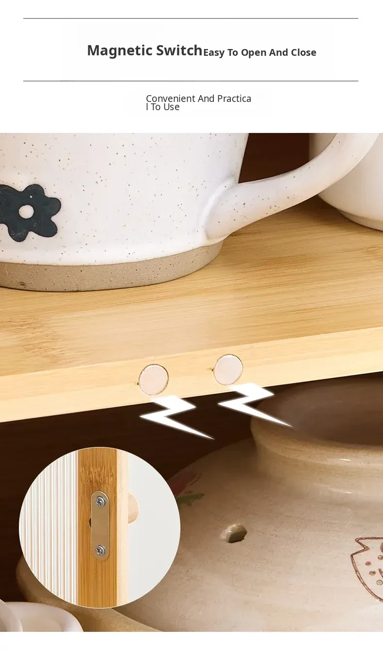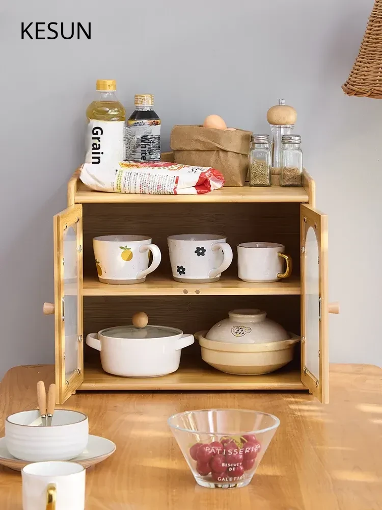 Japanese Style Desktop Organizer - Multi-functional Cup and Spice Rack for Kitchen, Stylish Storage Cabinet for Cutlery and Utensils, Perfect for Home or Restaurant Use.