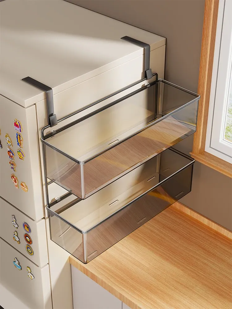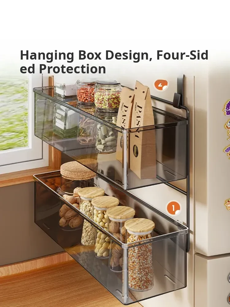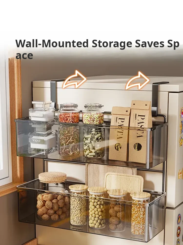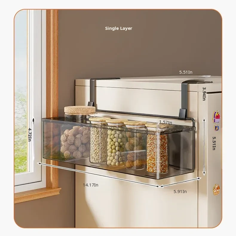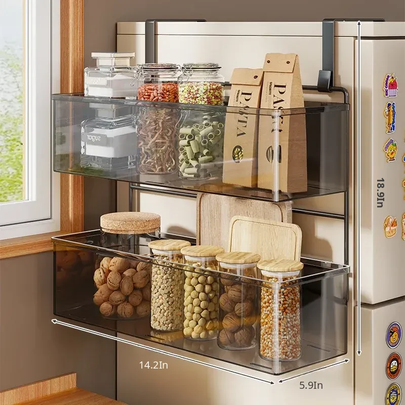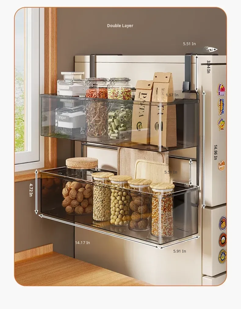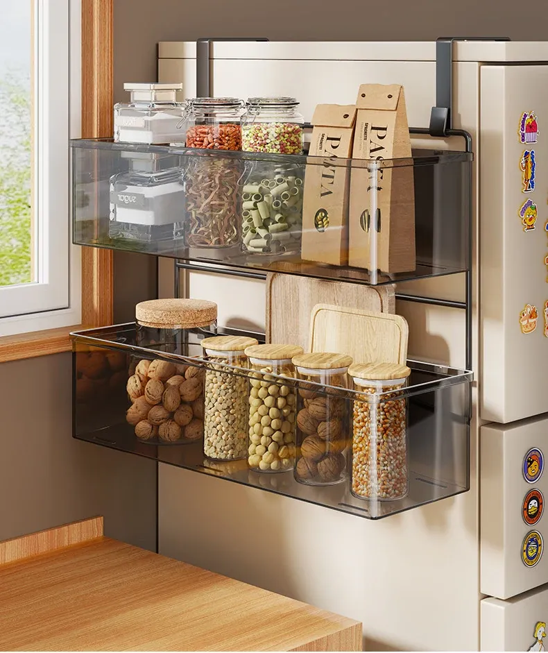 Kitchen Refrigerator Side Storage Rack - Hanging Organizer for Cling Film and Baskets, Perfect for Maximizing Space and Keeping Your Kitchen Tidy!