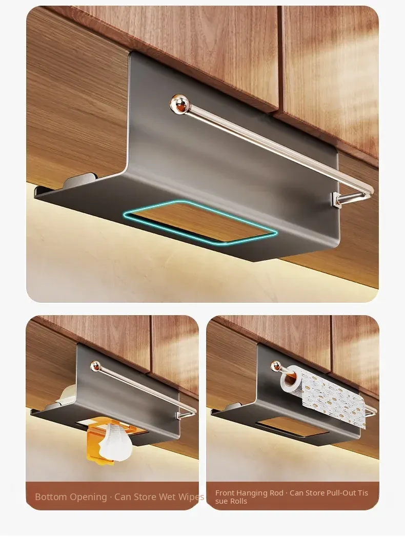 Kitchen Wet Wipe Storage Box - Hanging Tissue Holder for Cabinets, Reversible Paper Towel Dispenser, Plastic Wrap Organizer, and Face Towel Rack - Keep Your Kitchen Neat and Organized!