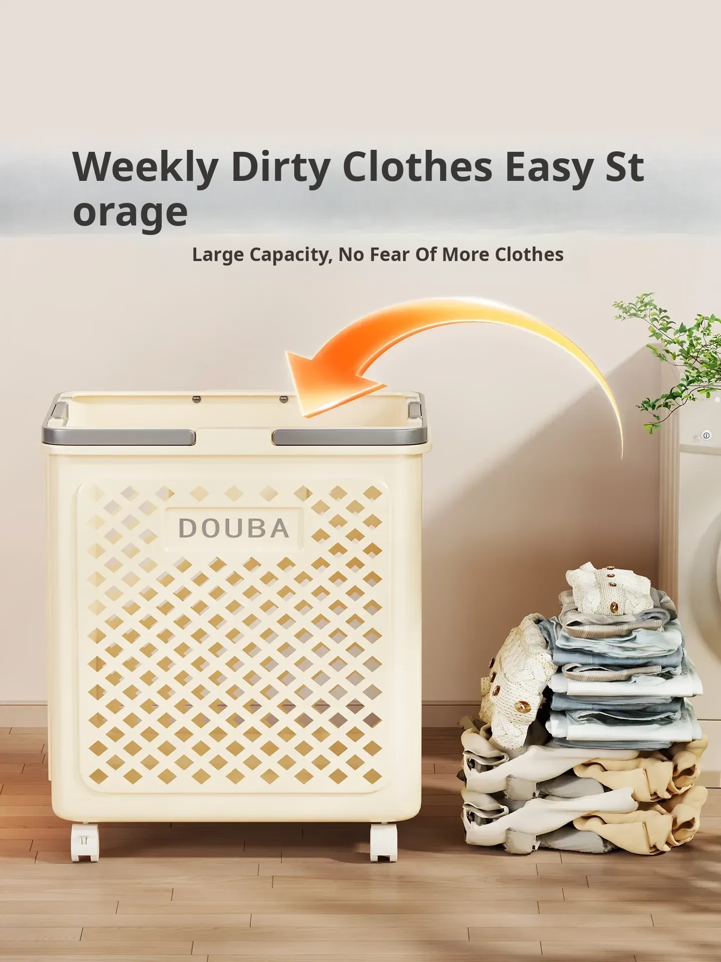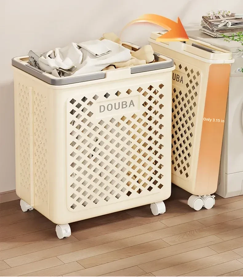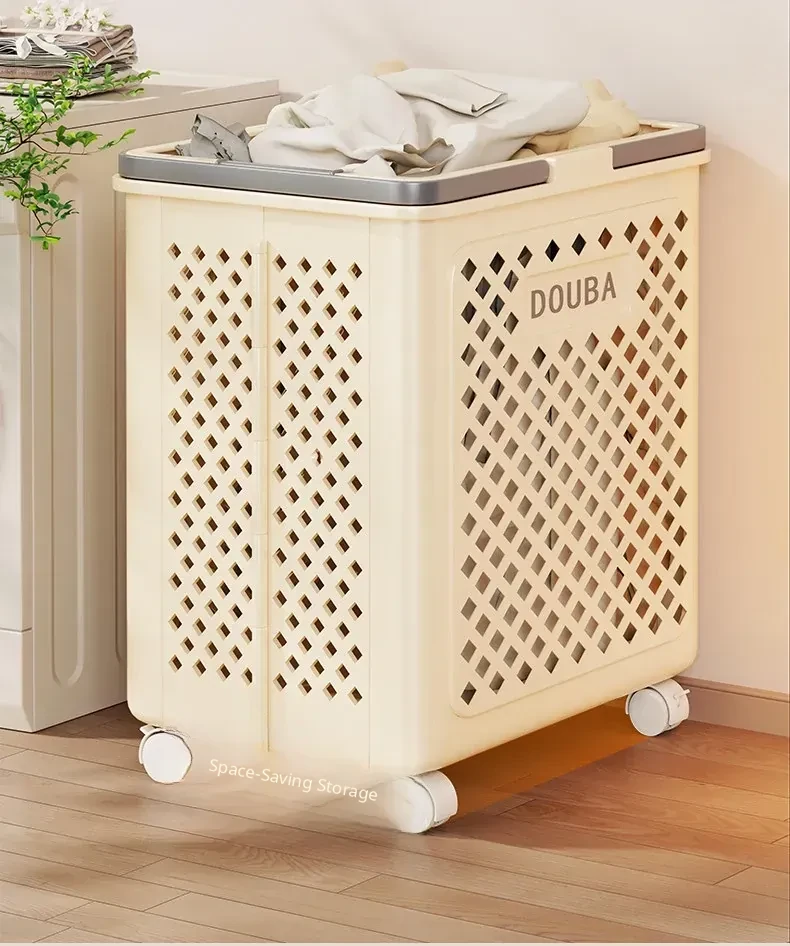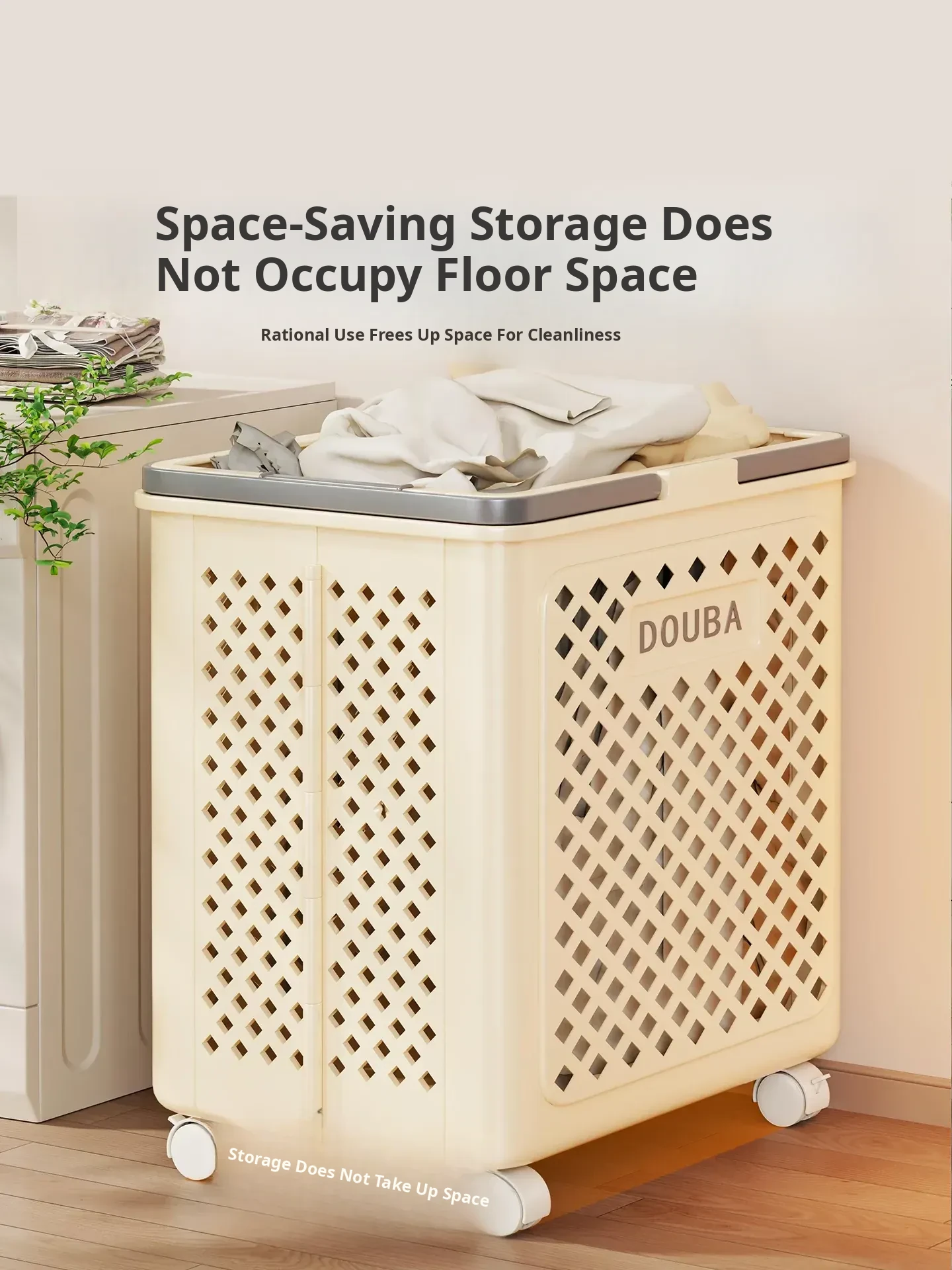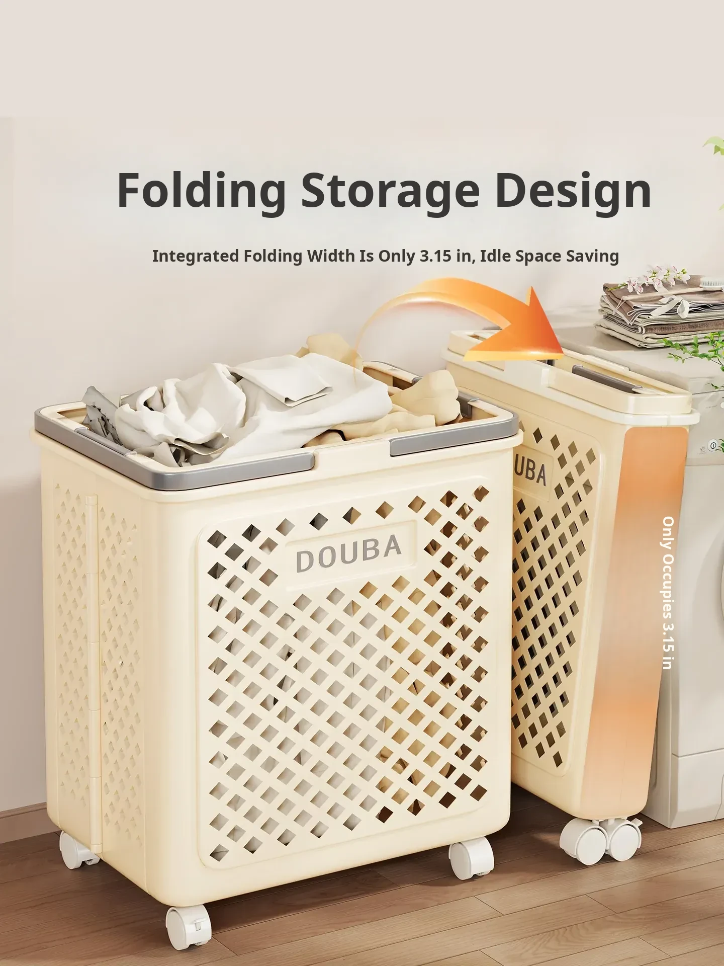 Large Capacity Foldable Laundry Basket with Wheels - Convenient Portable Laundry Hamper for Home Storage, Ideal for Bathroom and Laundry Room Use