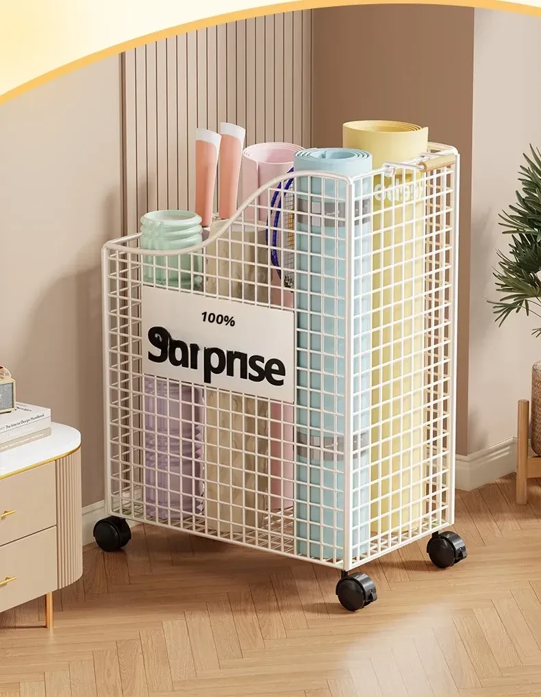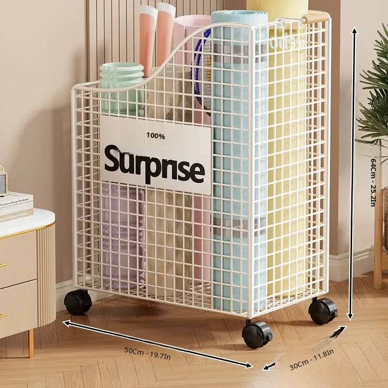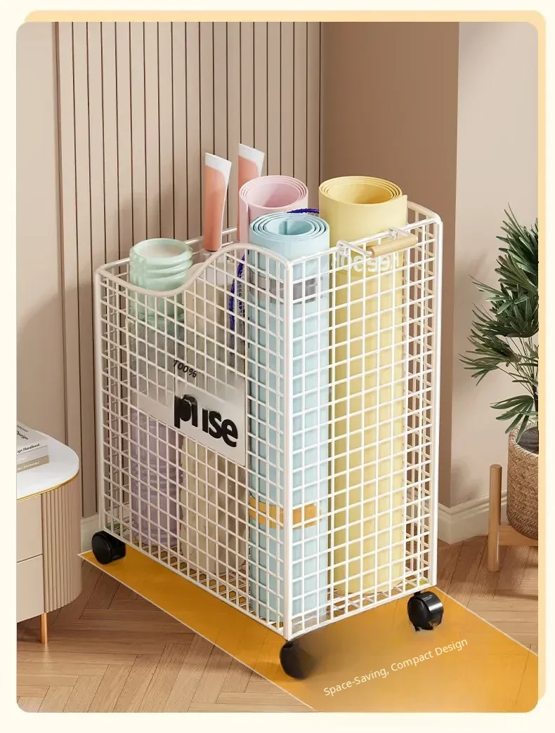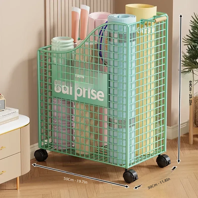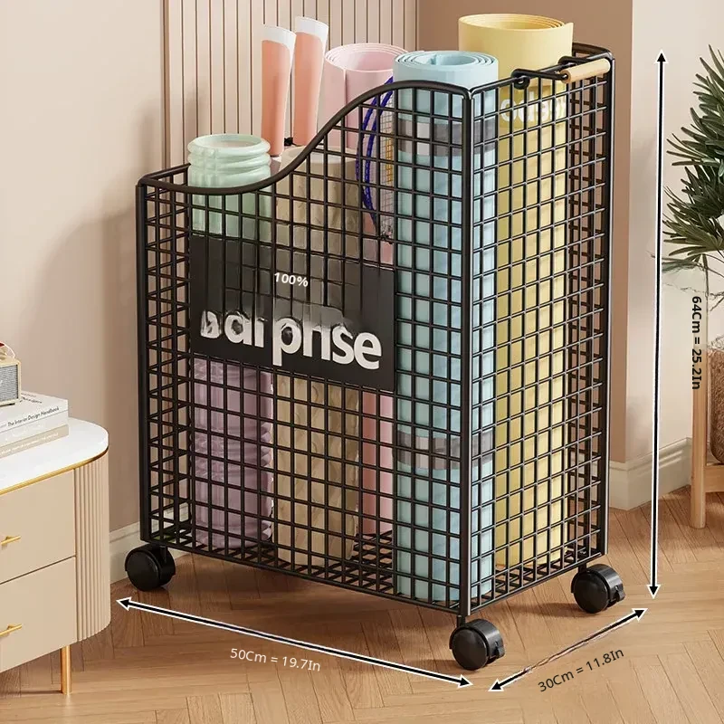 Large Capacity Yoga Mat Storage Basket with Wheels - Mobile Iron Frame Exercise Equipment Organizer, Perfect for Home Use!