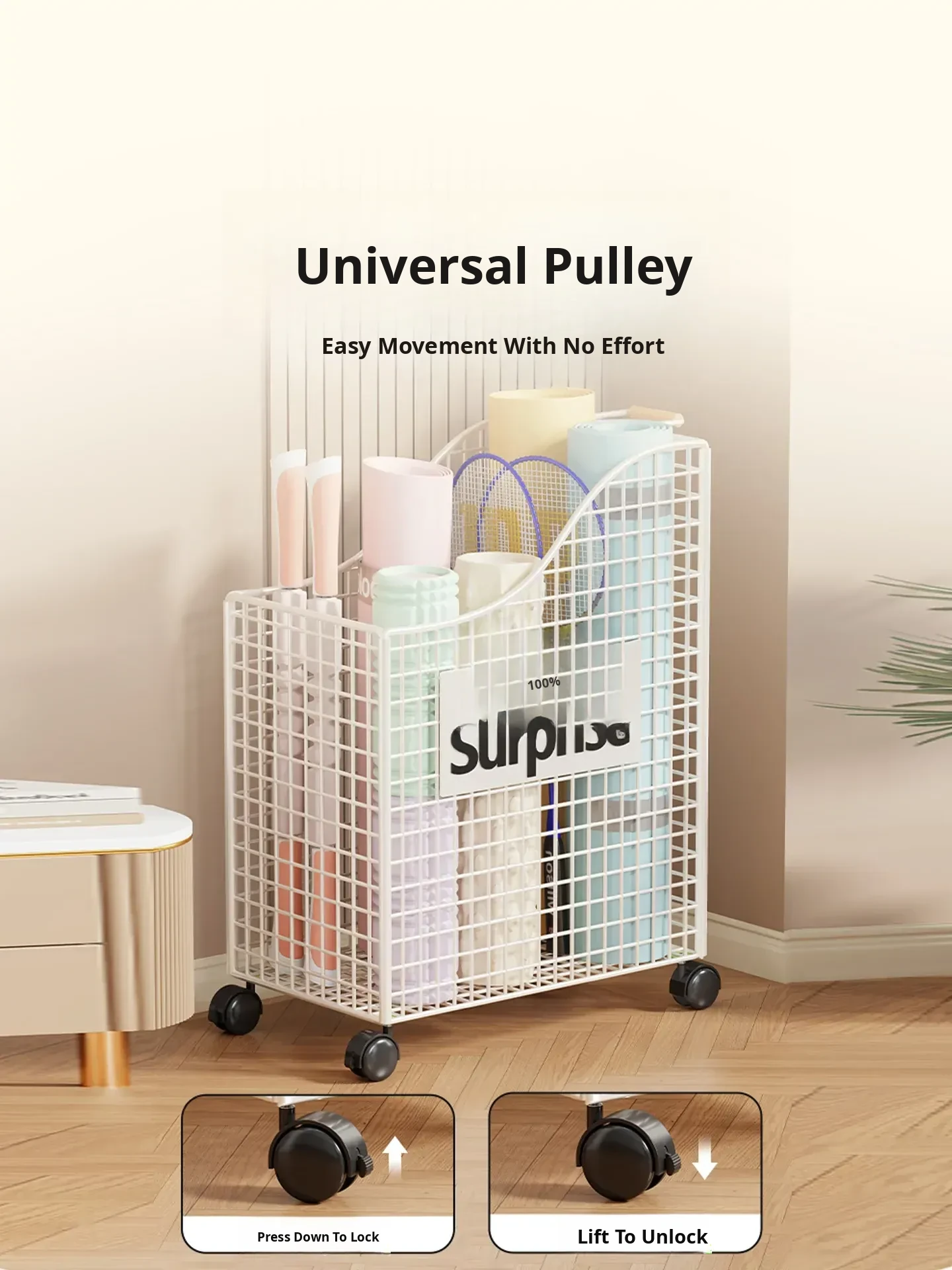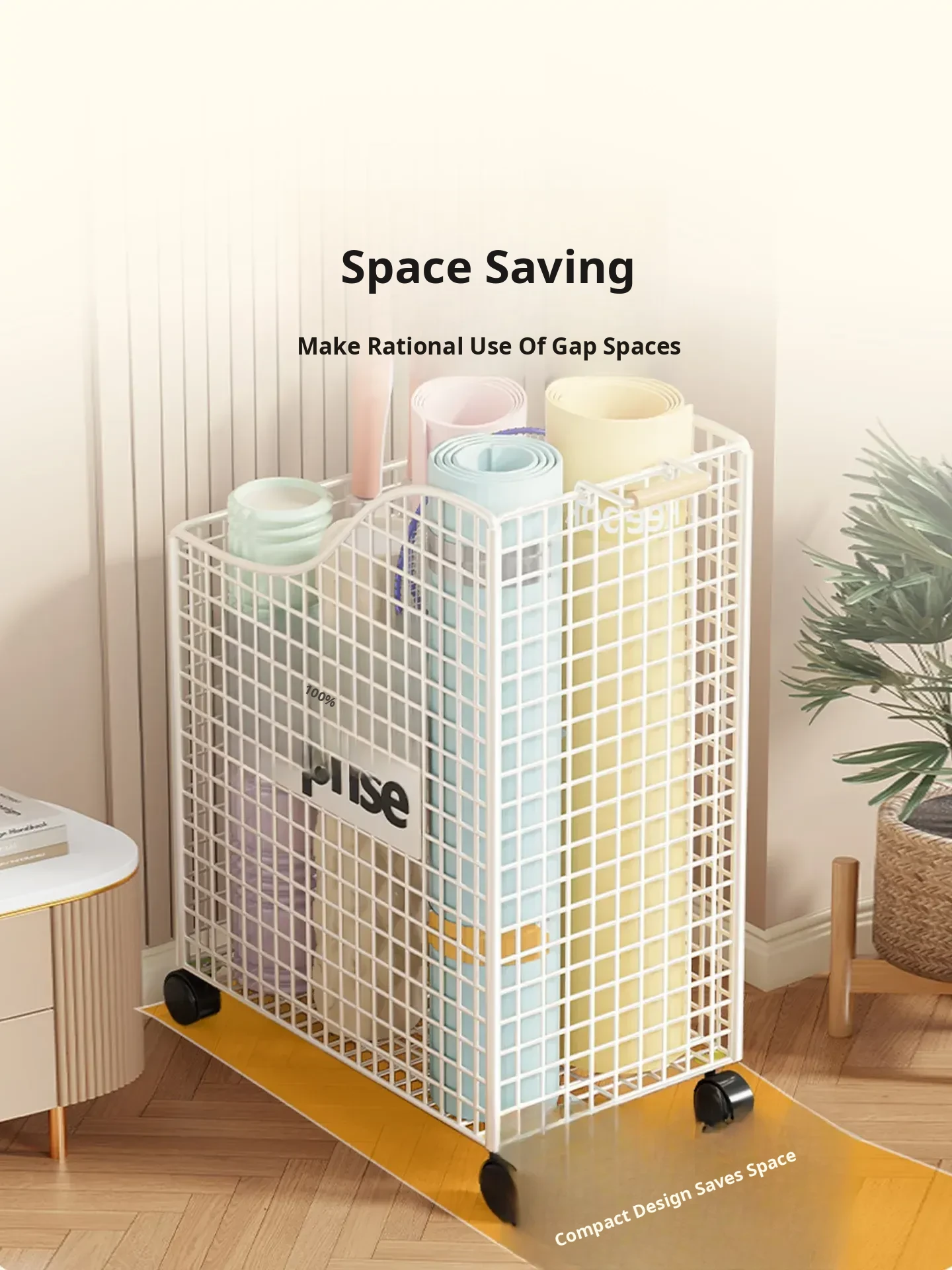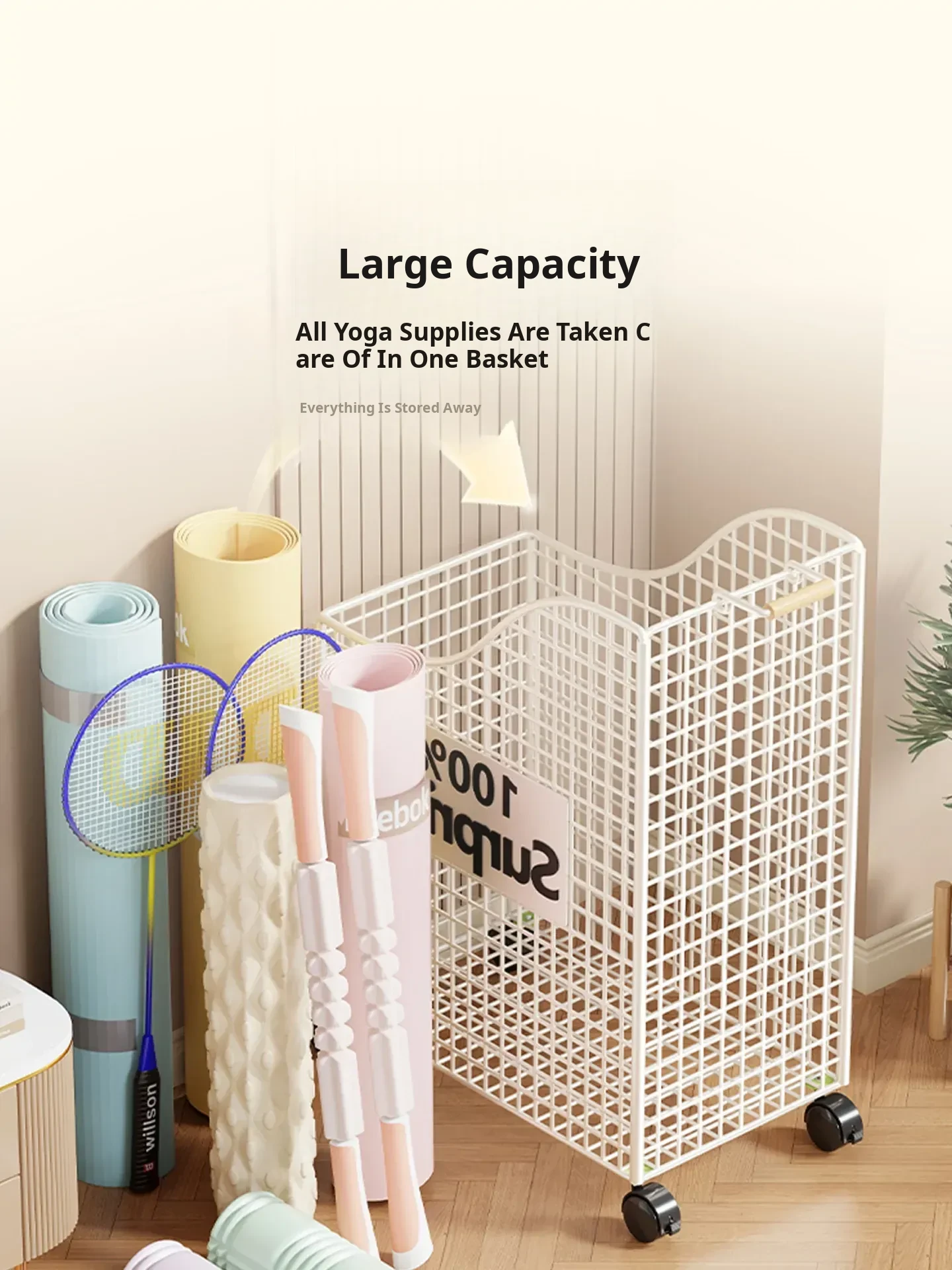 Large Capacity Yoga Mat Storage Basket with Wheels - Mobile Iron Frame Exercise Equipment Organizer, Perfect for Home Use!