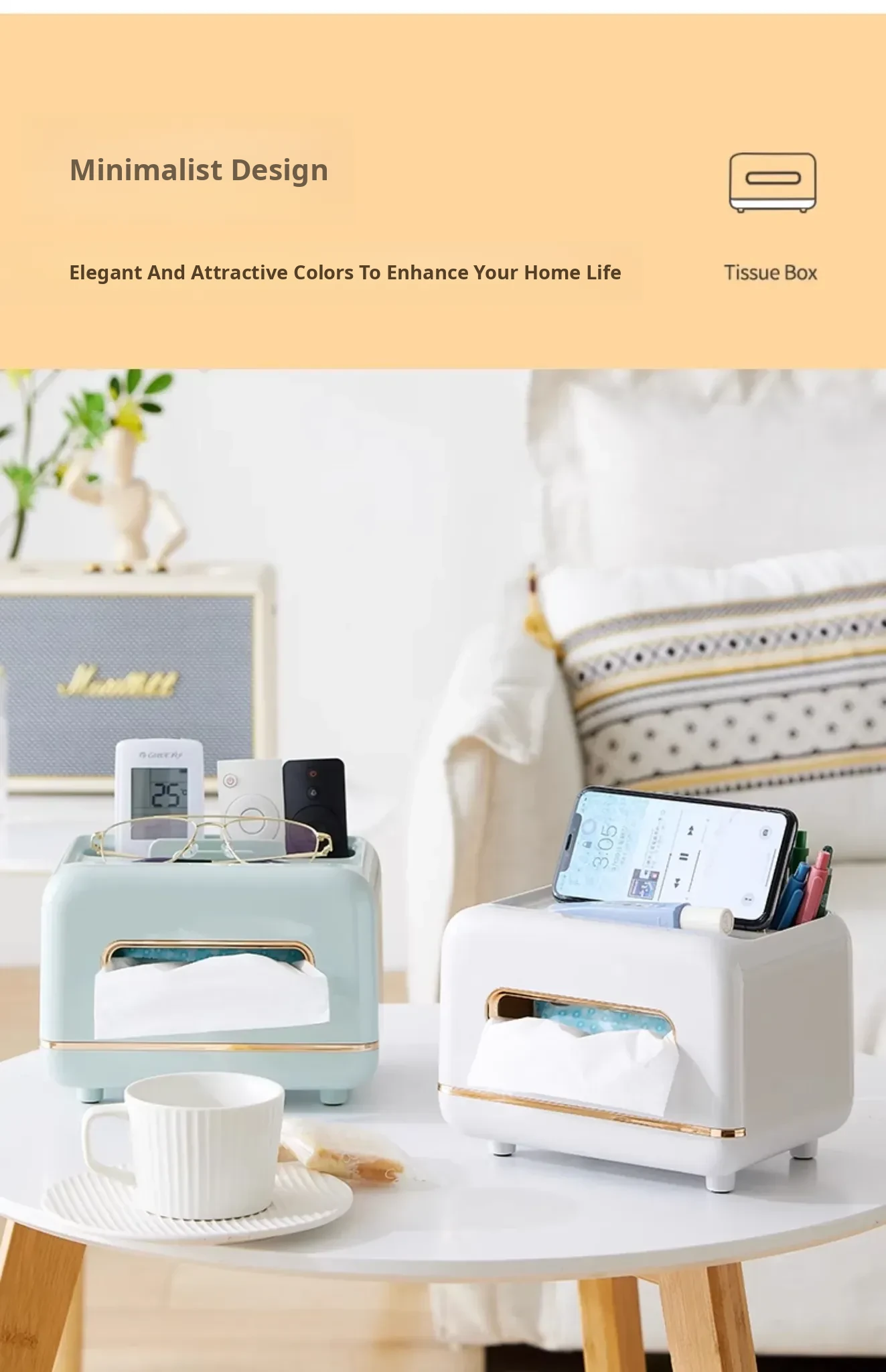 Multifunctional Tissue Box [White] + [Custard] 2 Pieces