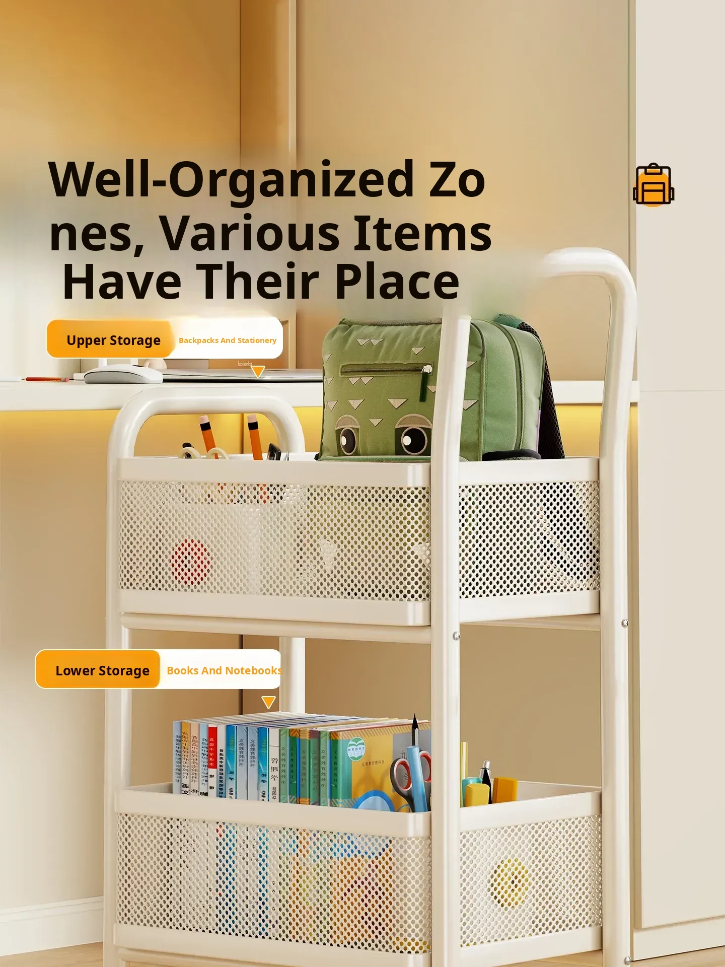 Multifunctional Rolling Book Cart - Portable Storage Rack for Students, Desk Side Book Organizer, Ideal for Home Use, Perfect for Books and Supplies