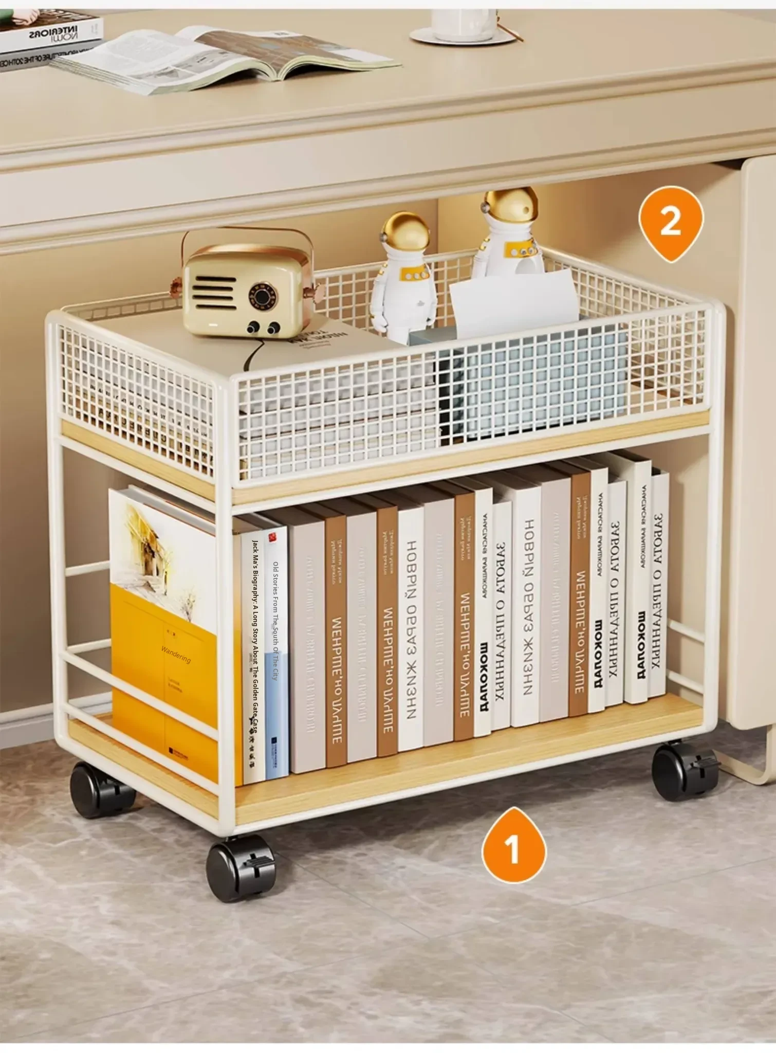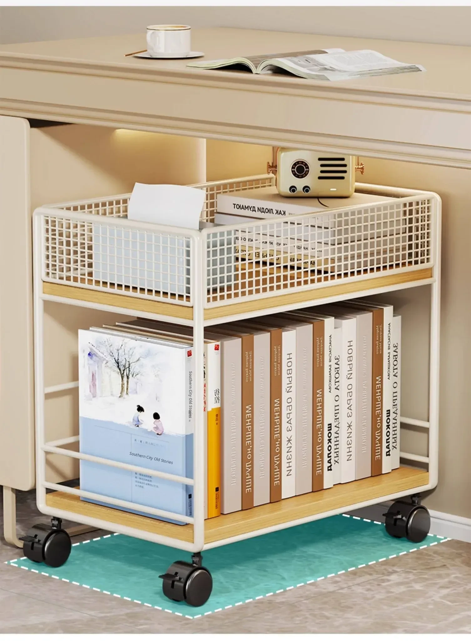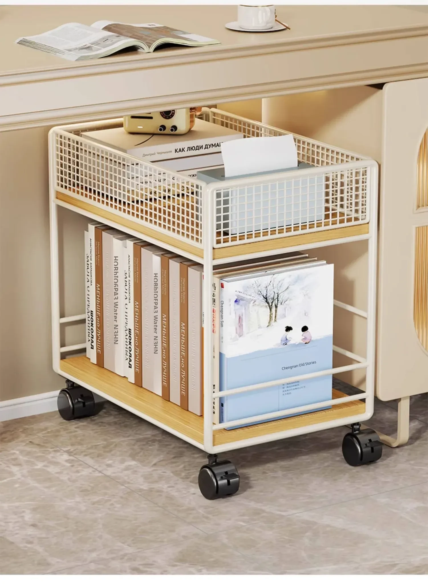 Multifunctional Rolling Cart: Under-Desk Storage Shelf with Wheels for Books, Perfect for Study Area or Home Office, Easy to Move and Organize Your Space!