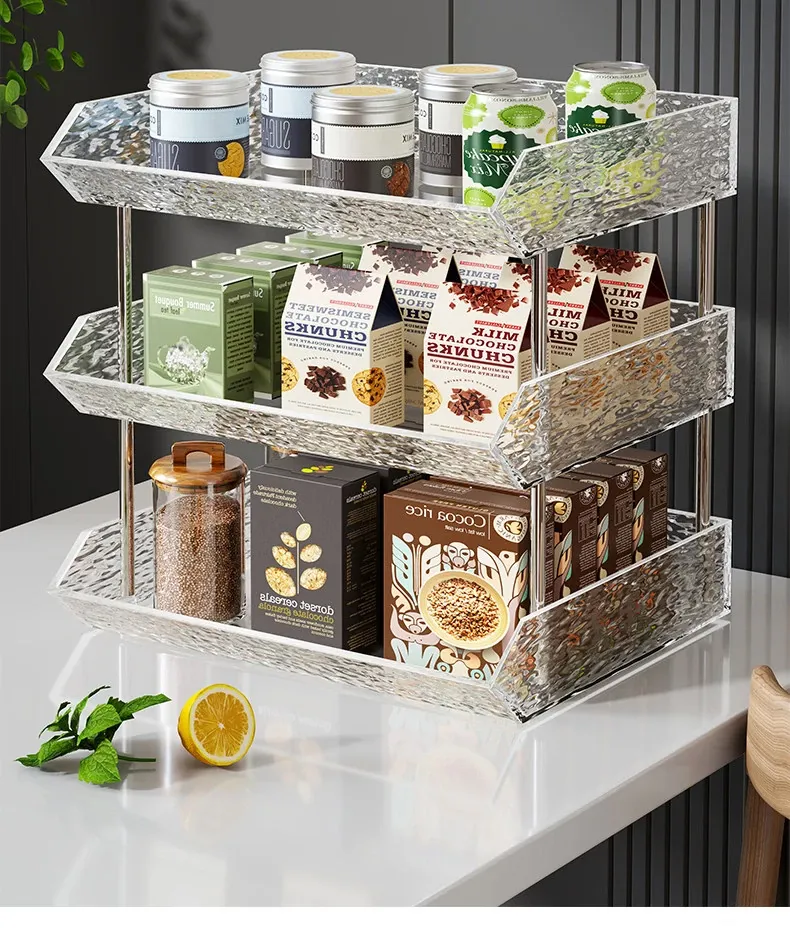 Multilayer Acrylic Kitchen Storage Rack - Stylish Tabletop Fruit and Snack Organizer, Perfect for Cups and Utensils, Your Ultimate Space-Saving Solution!