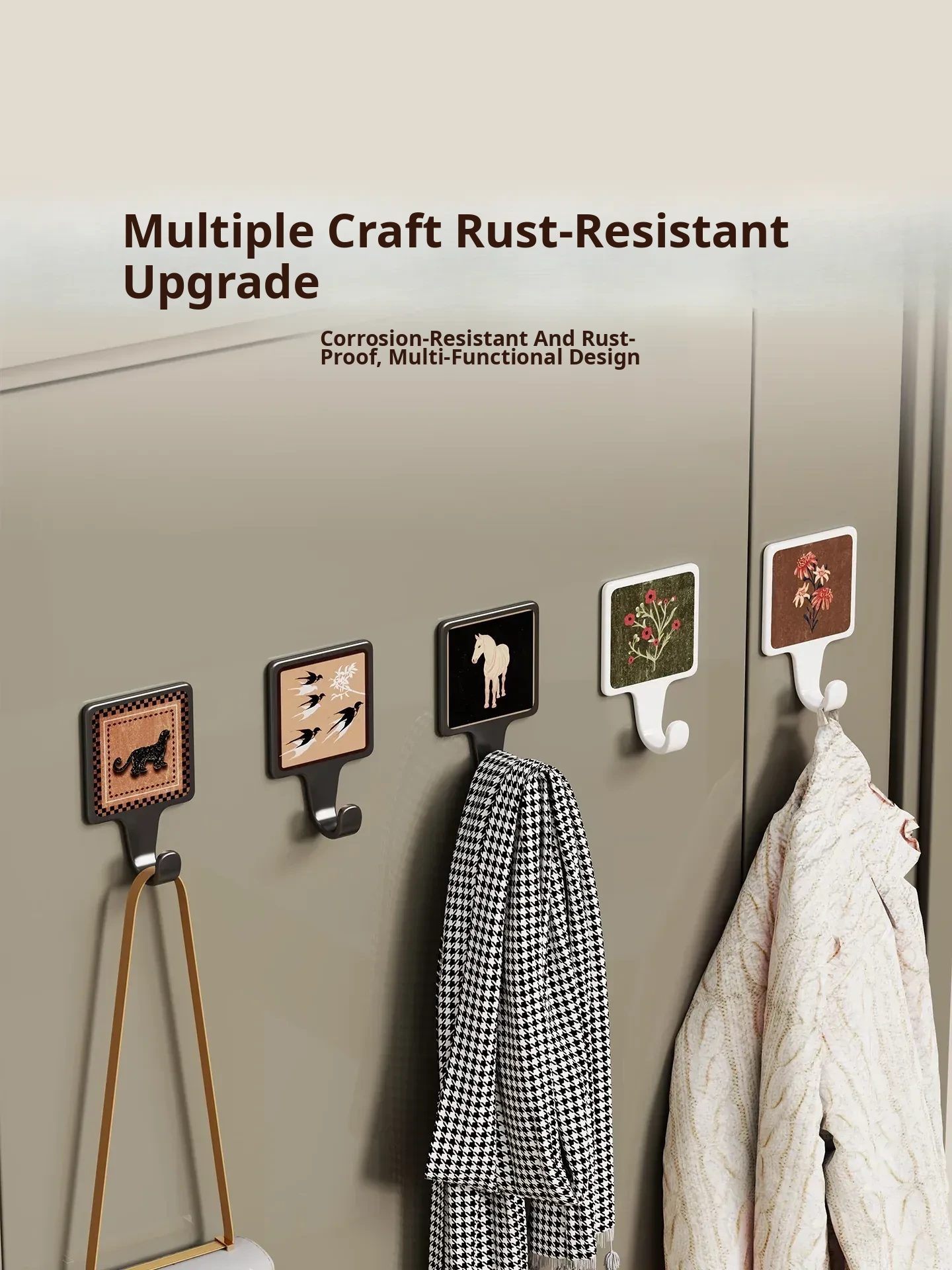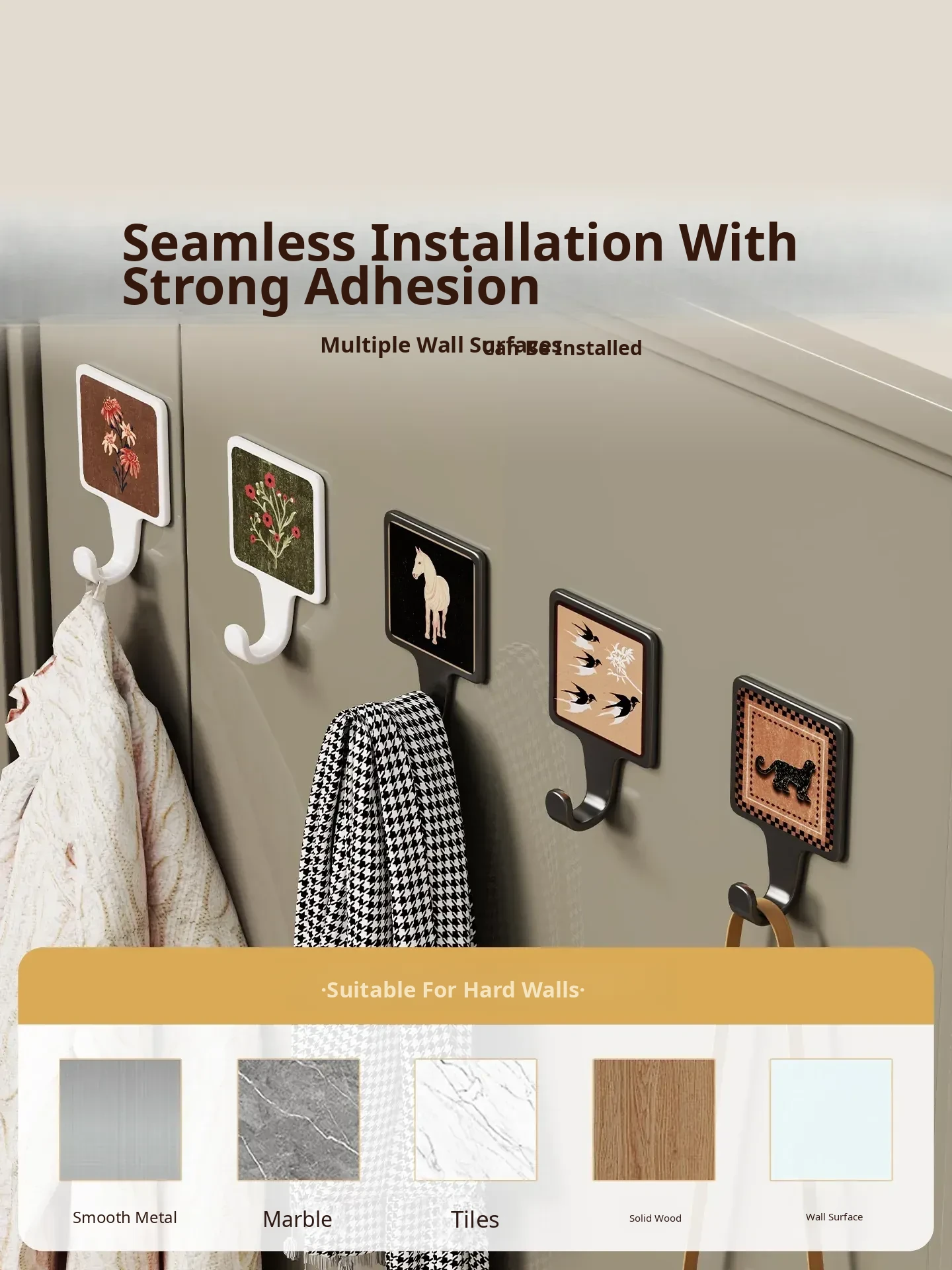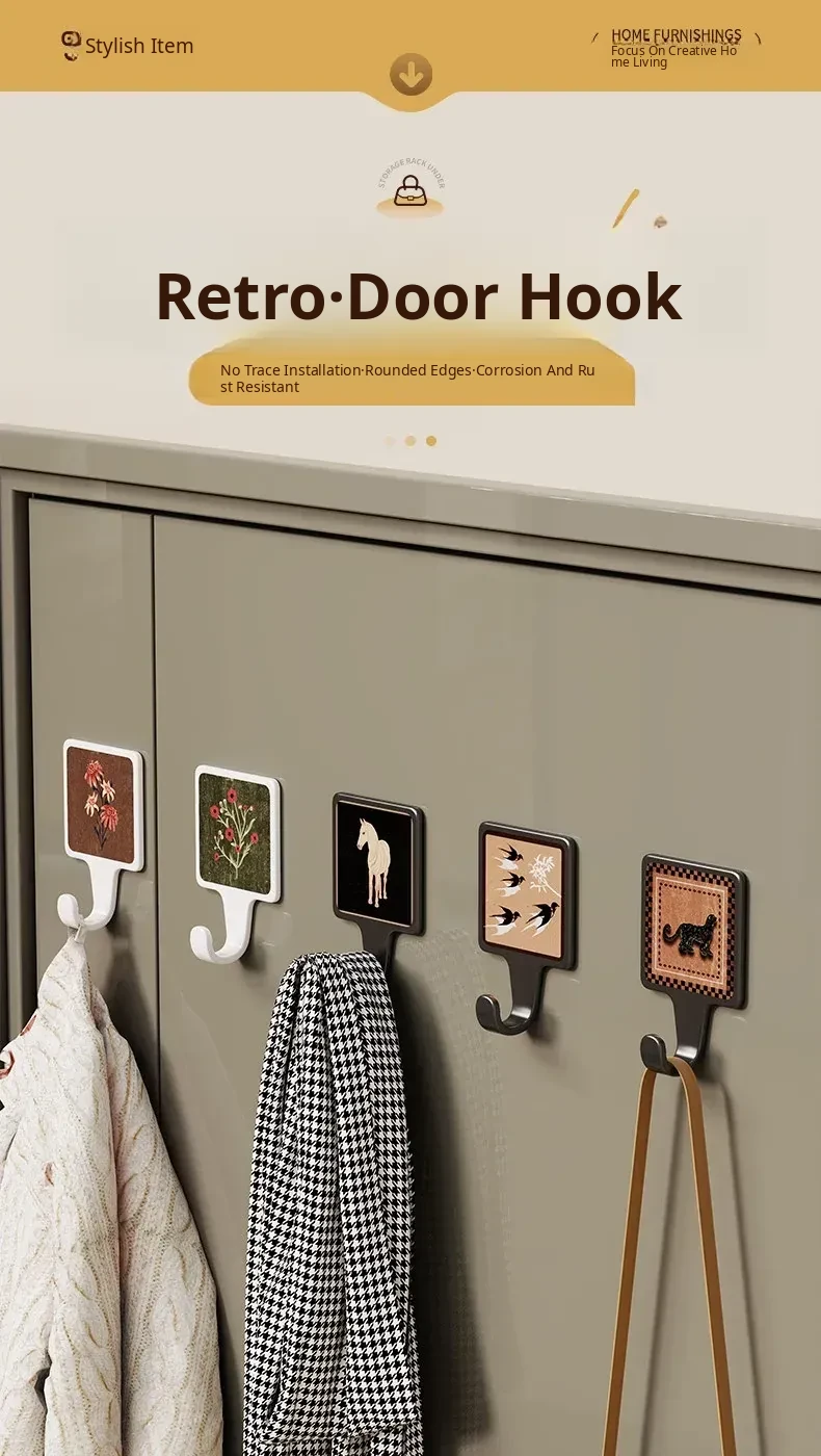 No-Drill Adhesive Hooks for Door - Heavy-Duty, Non-Marking Wall Organizer for Bedroom - Easy to Install, Strong Adhesive, Perfect for Coats and Accessories Storage
