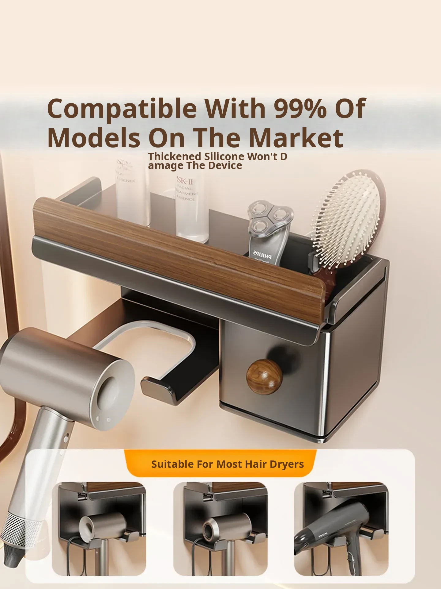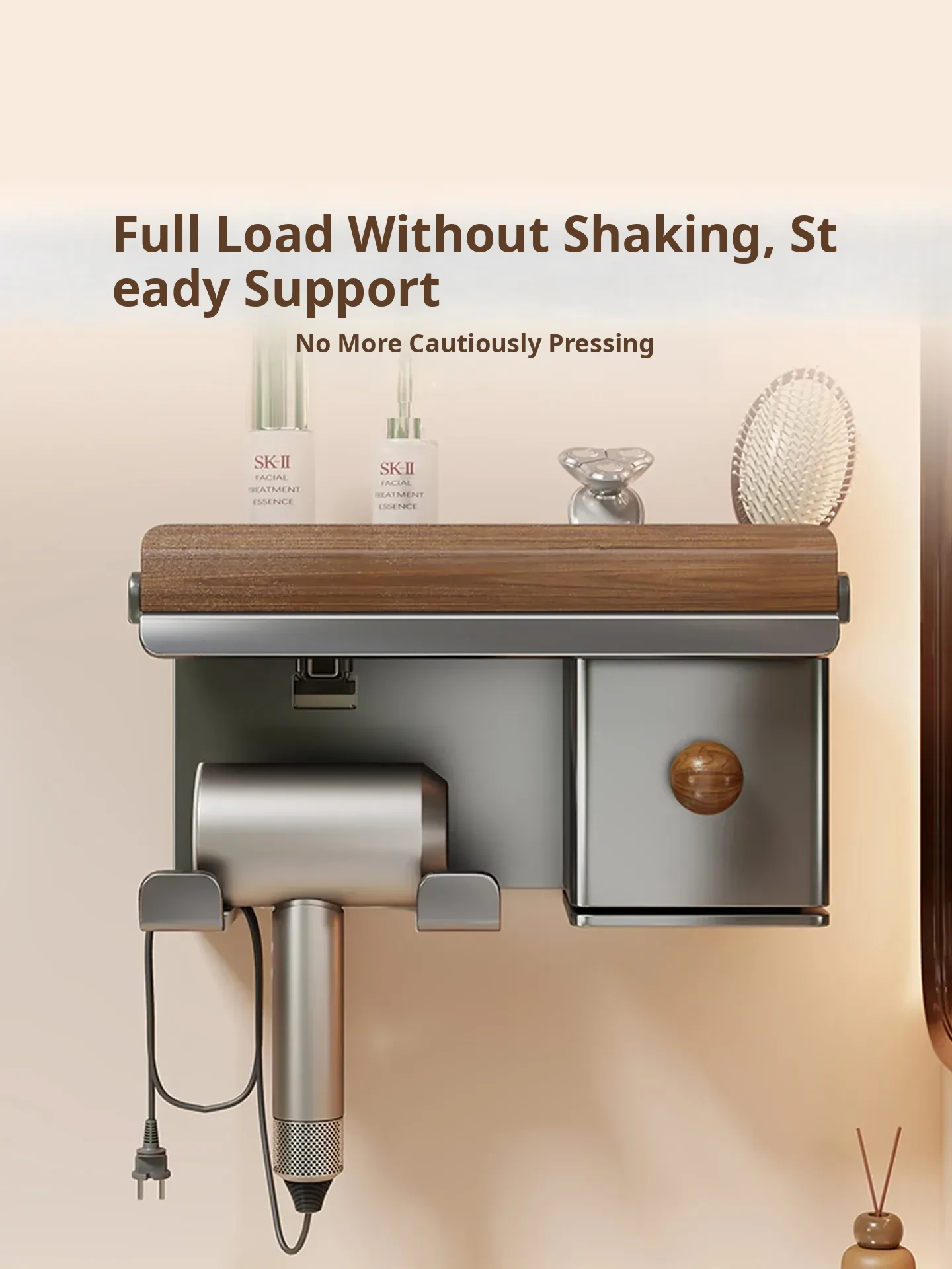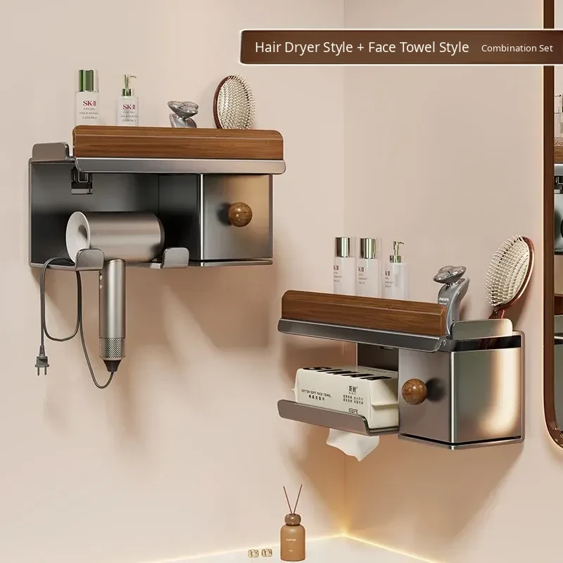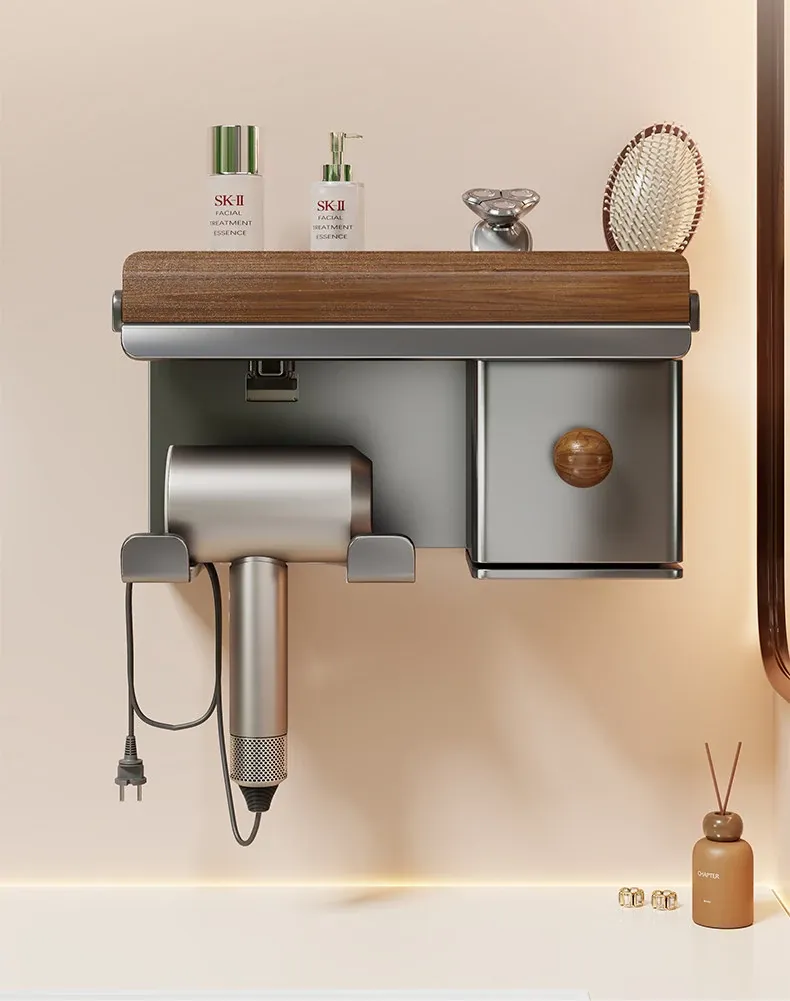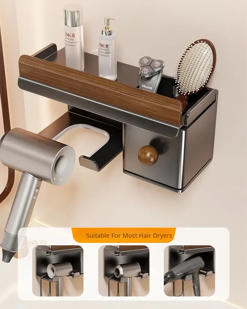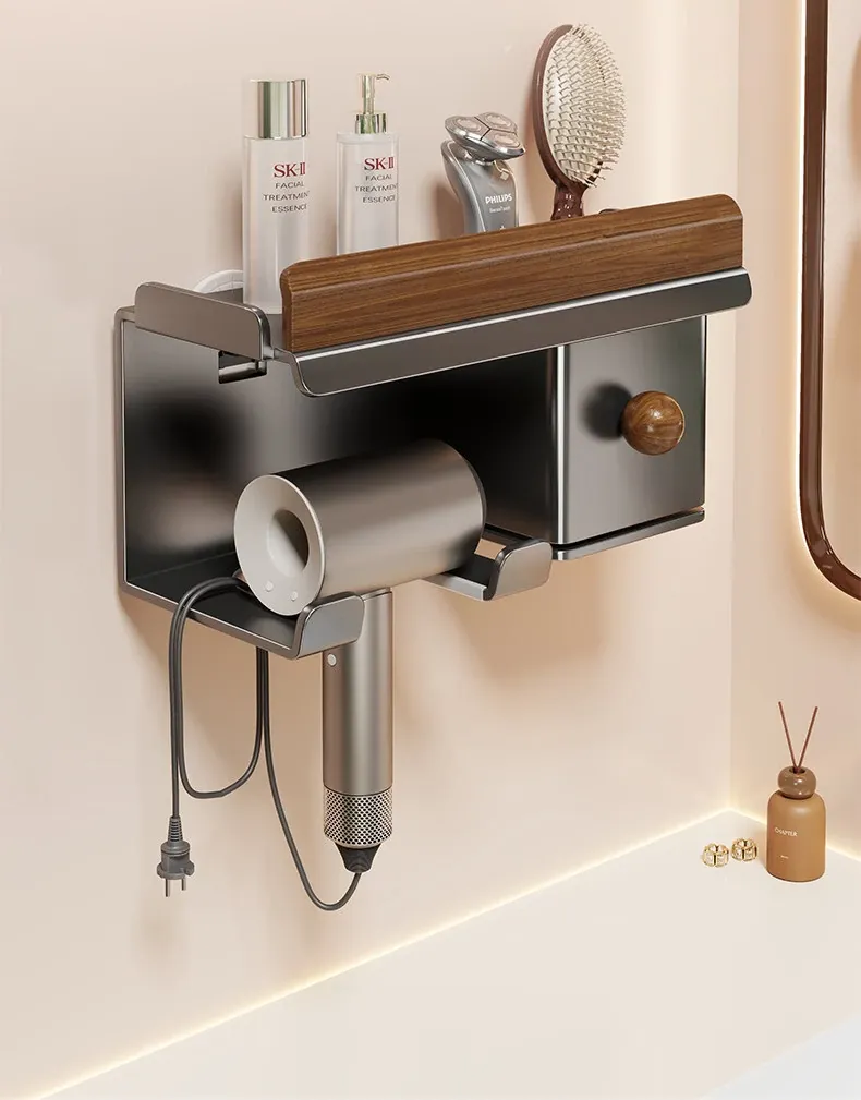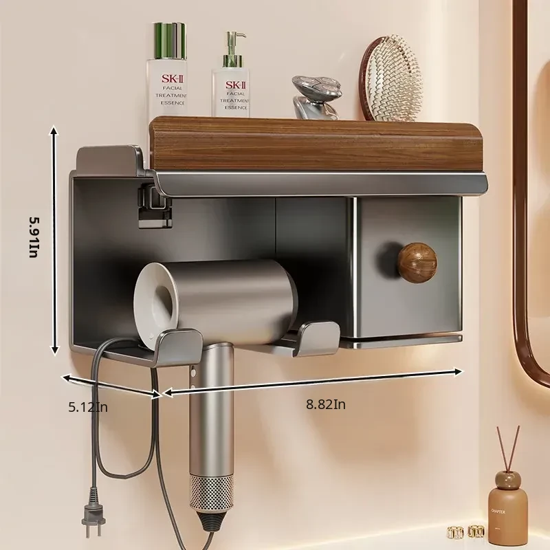 No-Drill Hair Dryer Storage Rack for Bathroom - Stylish Organizer for Toiletries and Hair Tools, Perfect for Countertops and Wall-Mounting, Keep Your Space Neat and Tidy!