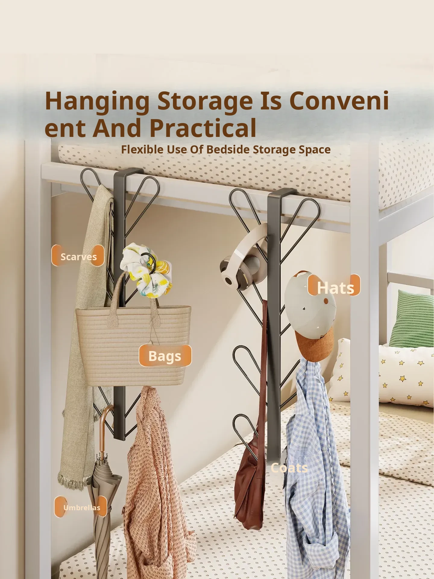No-Drill Hanging Hooks for Dormitory Bedside - Space-Saving Coat, Bag, and Hat Organizer with Adhesive Hooks - Perfect for Your Under-Bed Storage Needs!