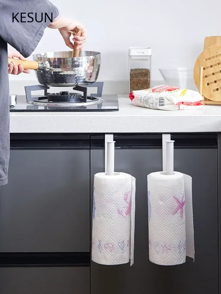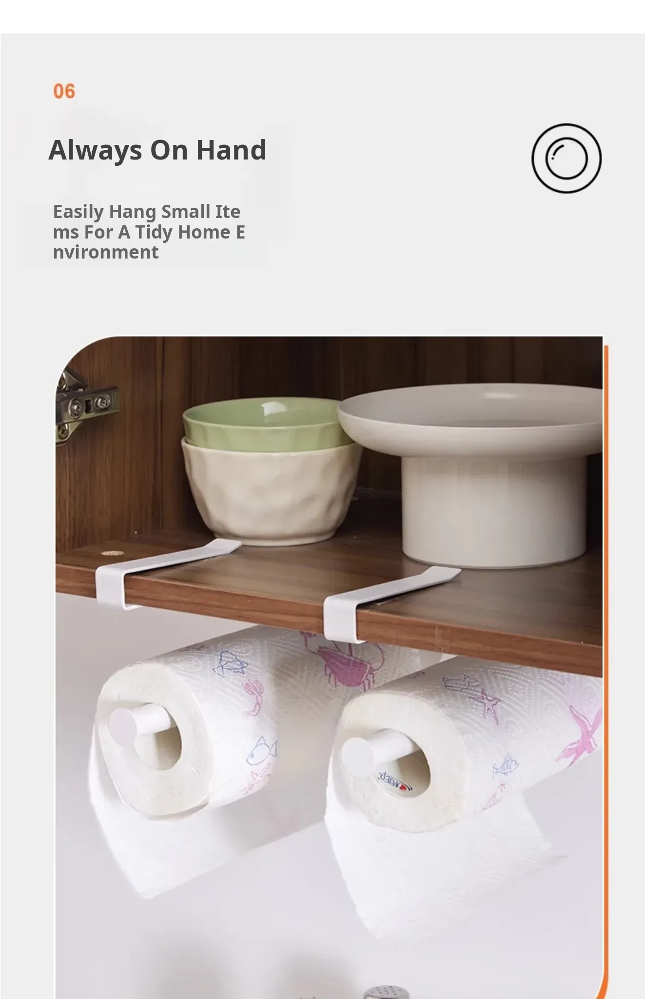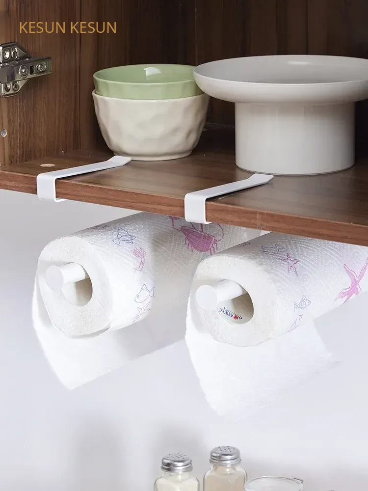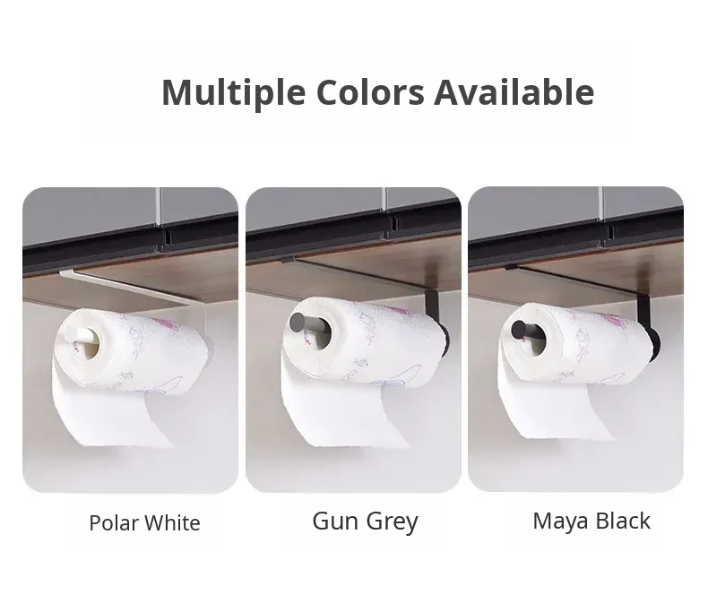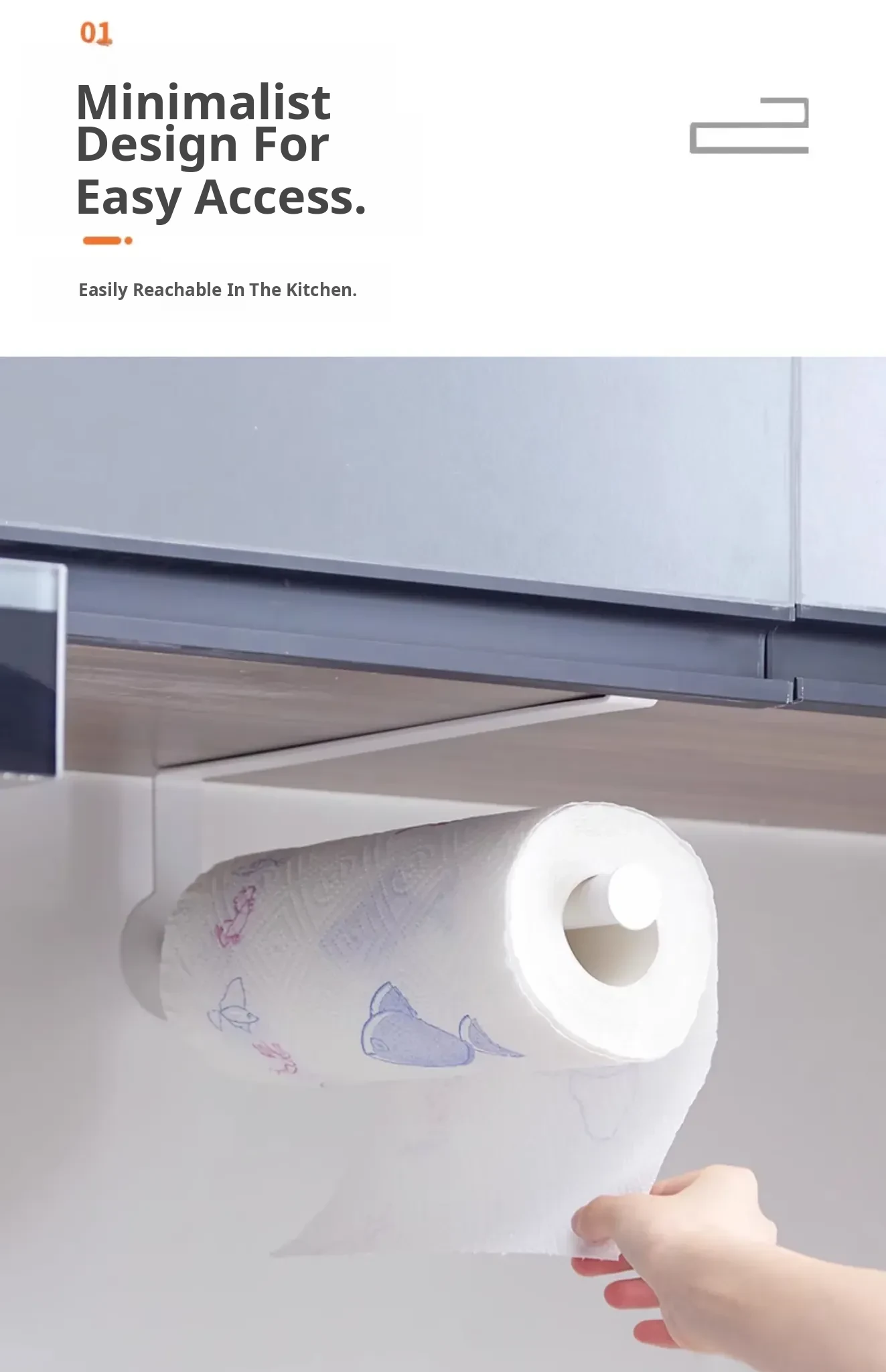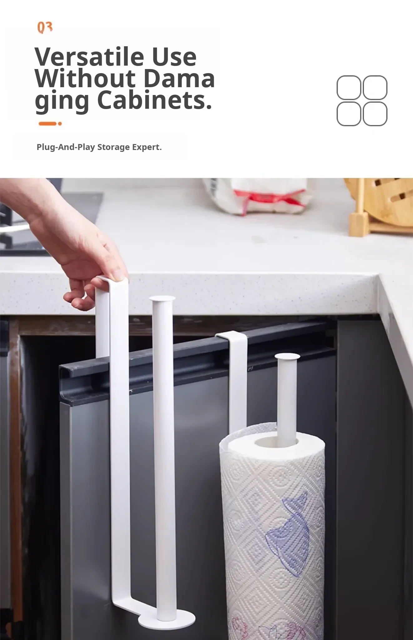 No-Drill Kitchen Paper Towel Holder - Space-Saving Under-Cabinet Roll Organizer for Plastic Wrap, Bags, and Cloths - Easy Installation Hanging Storage Solution