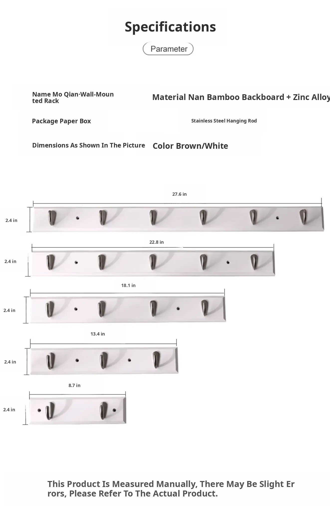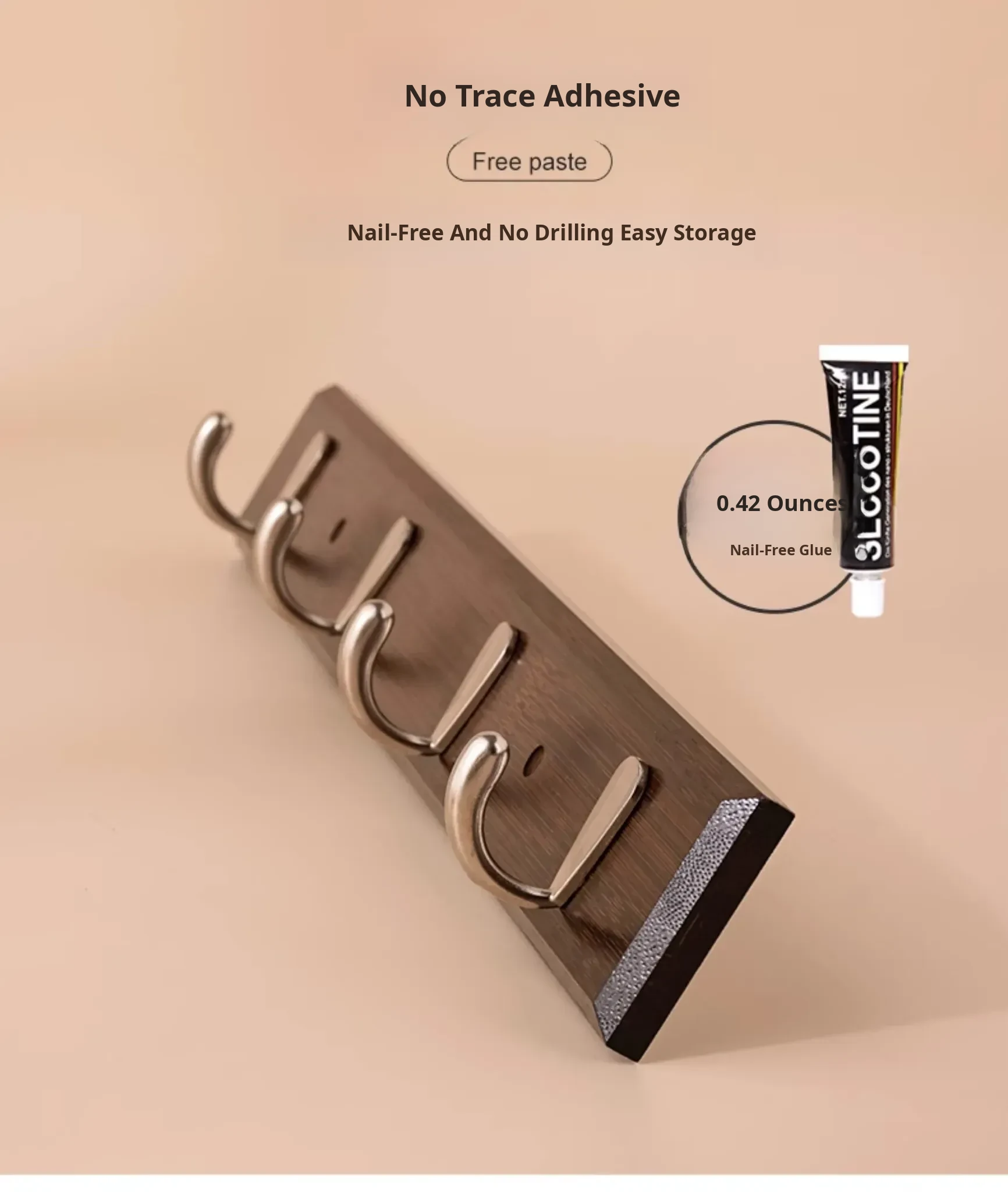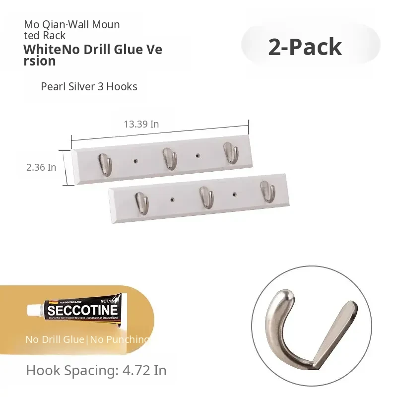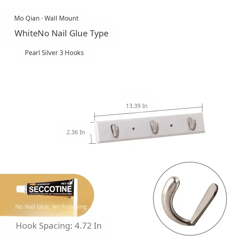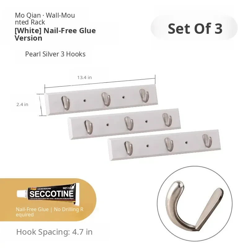 [White - Nail-Free Glue Model] [Silver 3 Hooks]