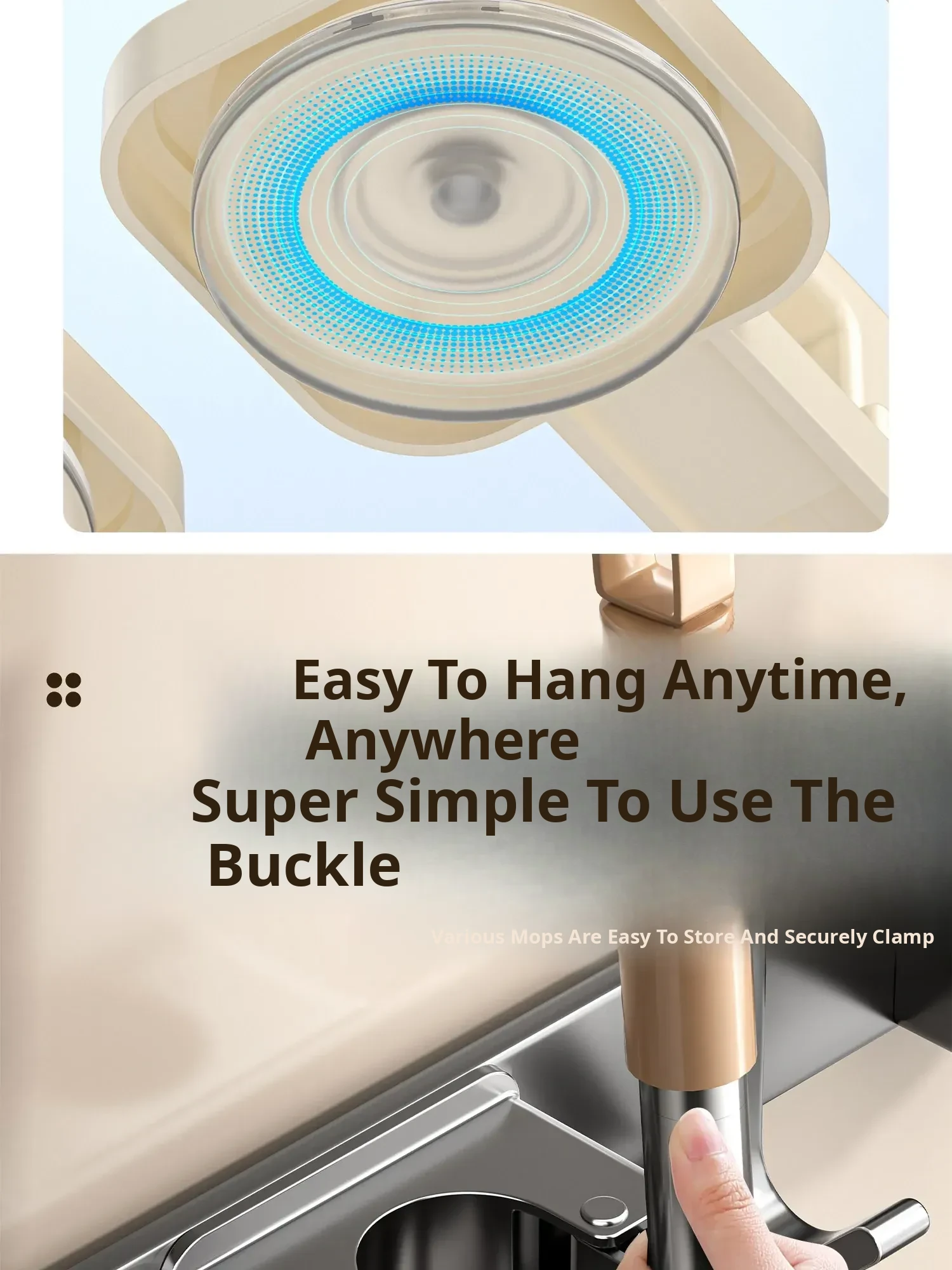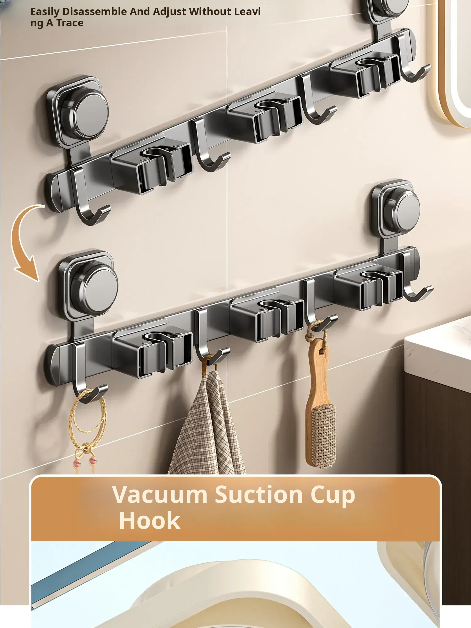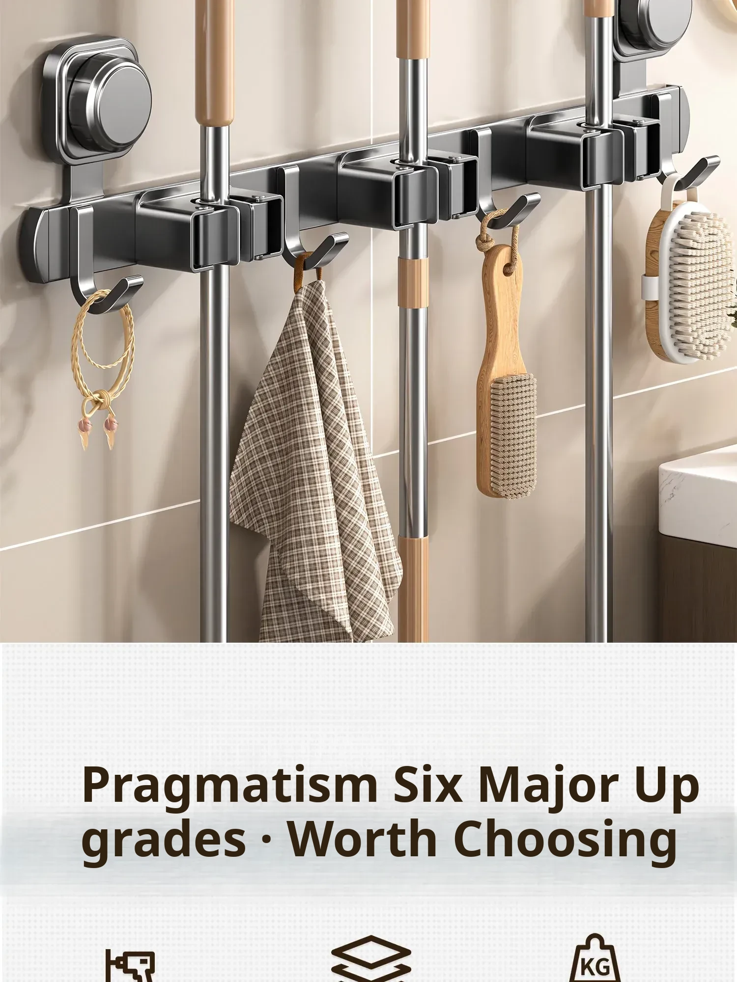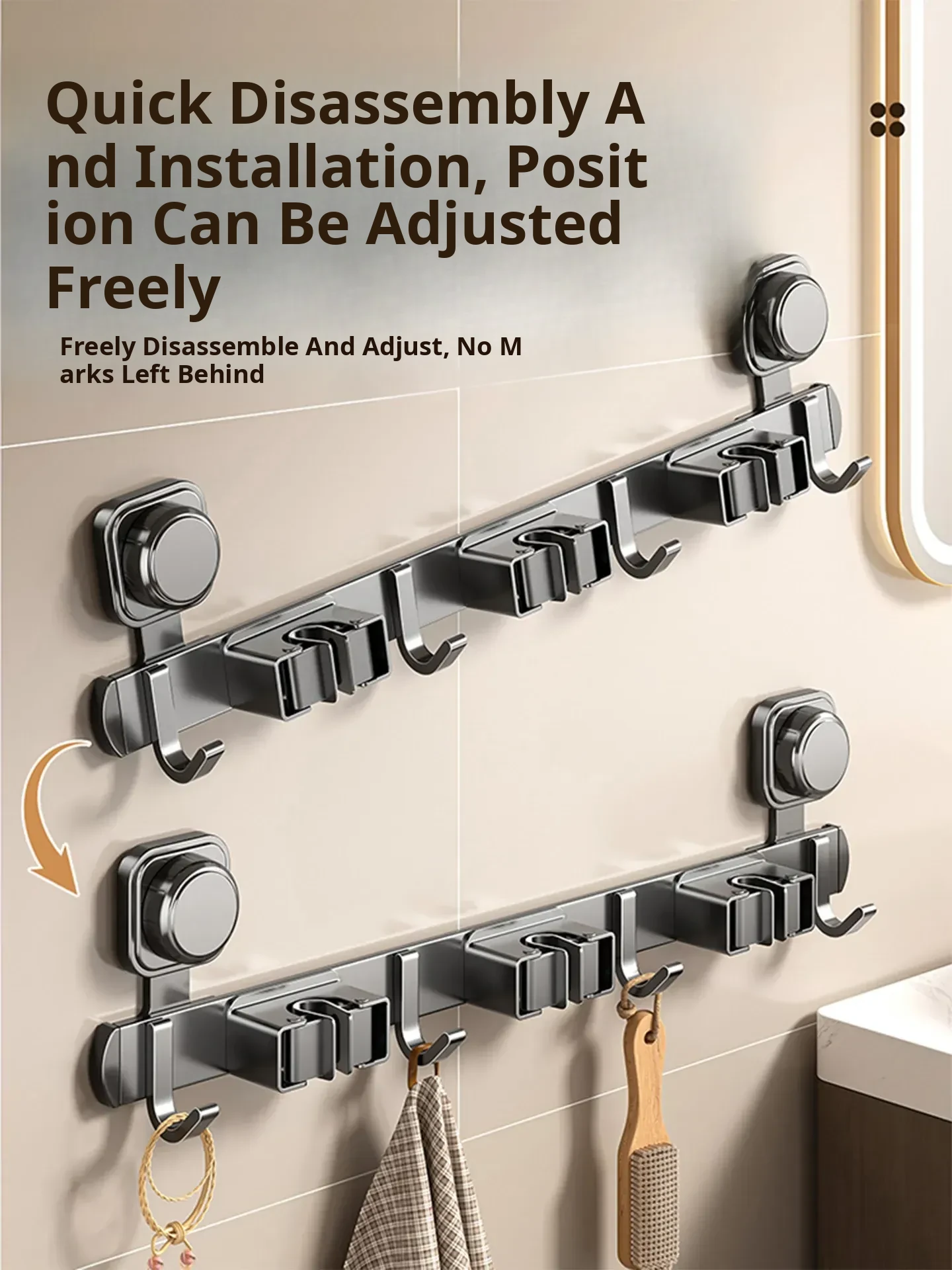 Powerful No-Drill Mop Holder – Wall-Mounted Bathroom Organizer with Suction Hooks for Brooms and Mops – Perfect for Space-Saving Storage Behind Doors and in Bathrooms