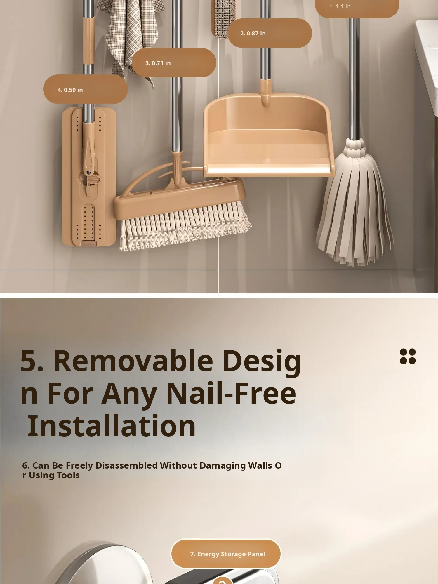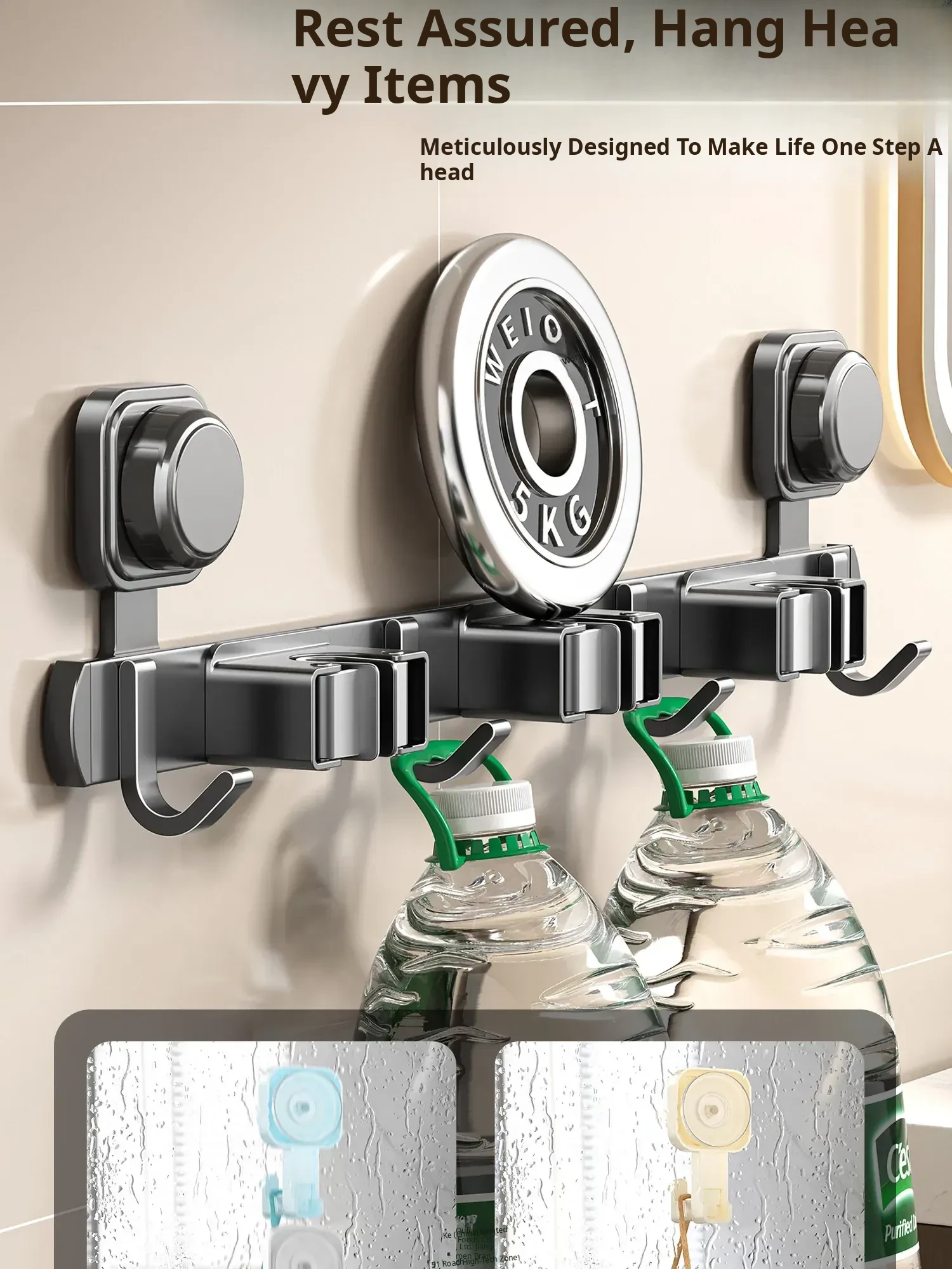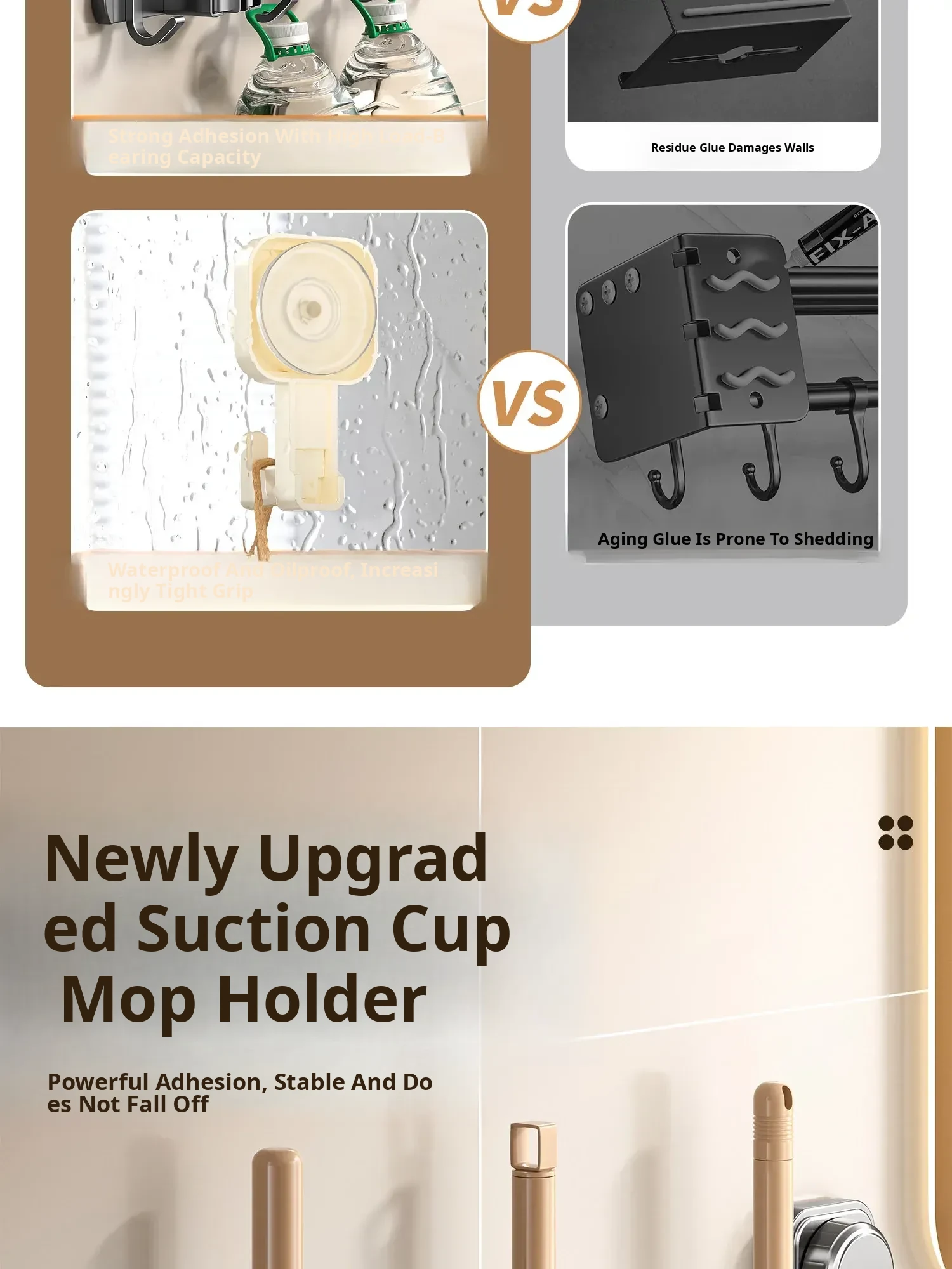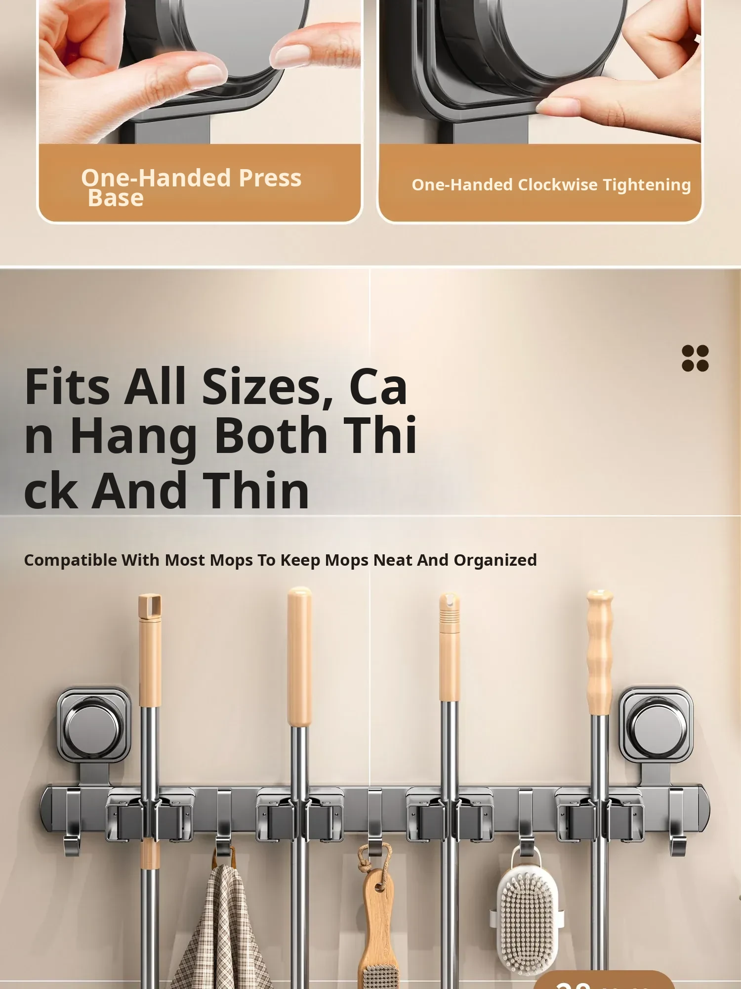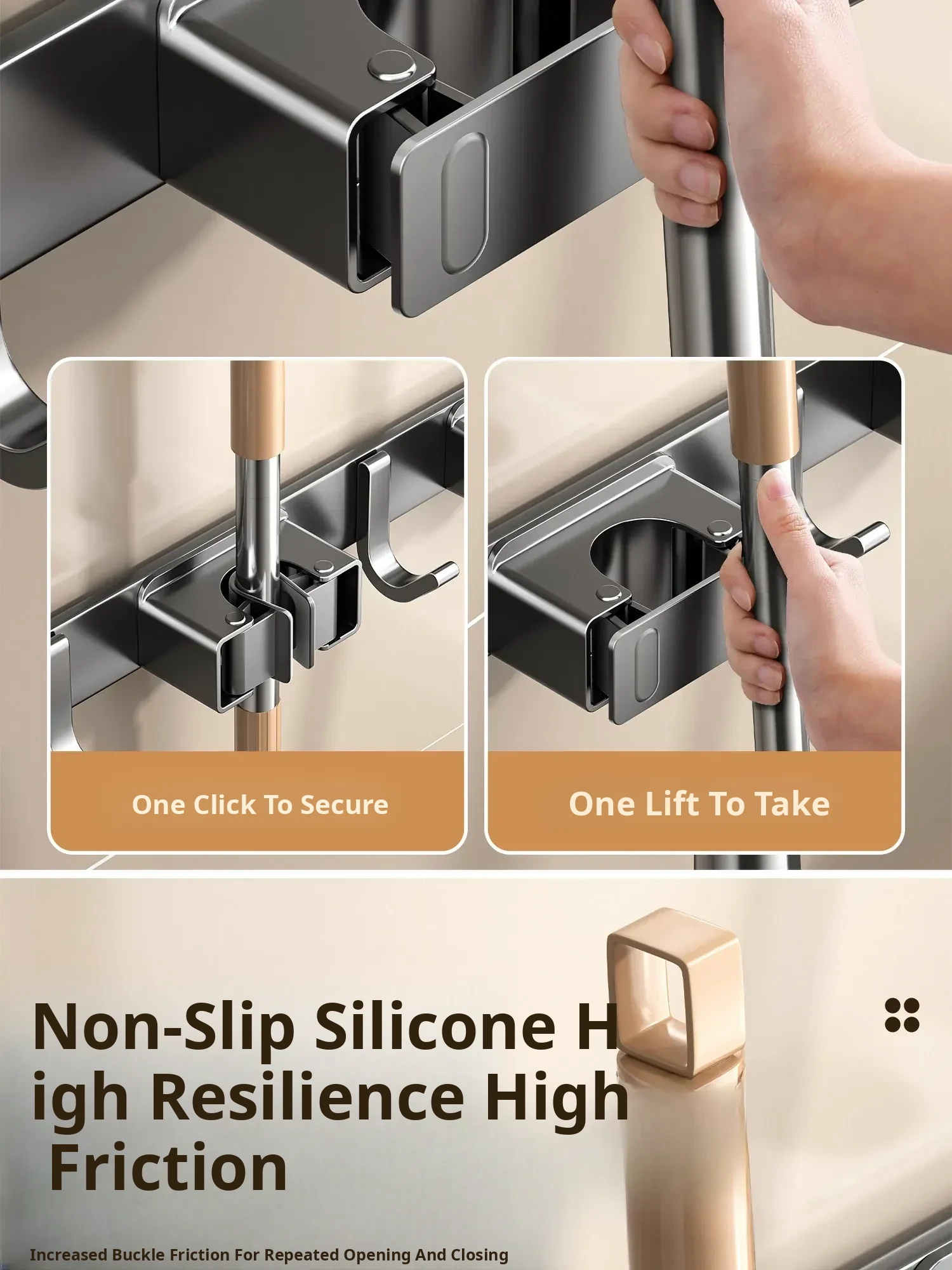 Powerful No-Drill Mop Holder – Wall-Mounted Bathroom Organizer with Suction Hooks for Brooms and Mops – Perfect for Space-Saving Storage Behind Doors and in Bathrooms