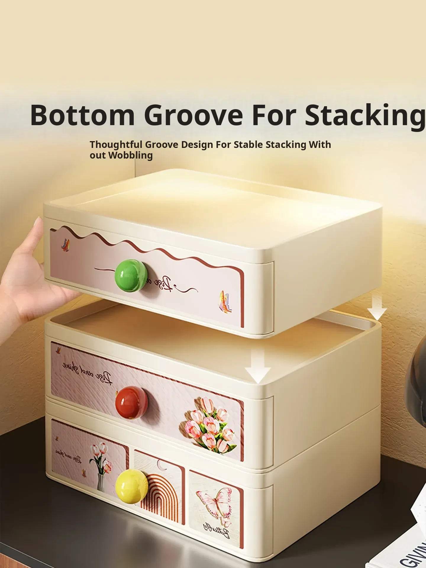 Stackable Desktop Organizer Box - Stylish Entryway Storage Solution for Keys and Miscellaneous Items - Large Capacity Drawer Shelving Unit for Living Room and Hallway