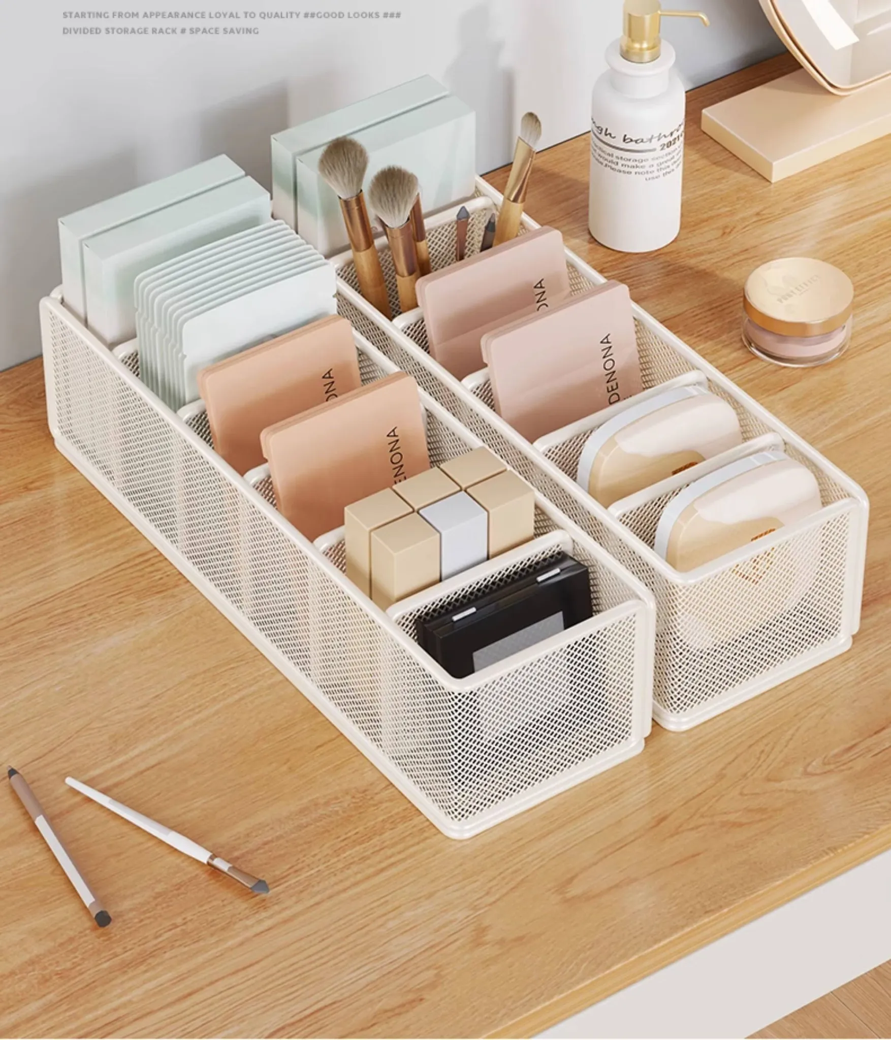 Stylish Desktop Cosmetic Organizer - Divided Makeup Storage Rack for Vanity, Ideal for Eyeshadow Palettes and Face Masks, Perfect for Dorm Room and Home Use