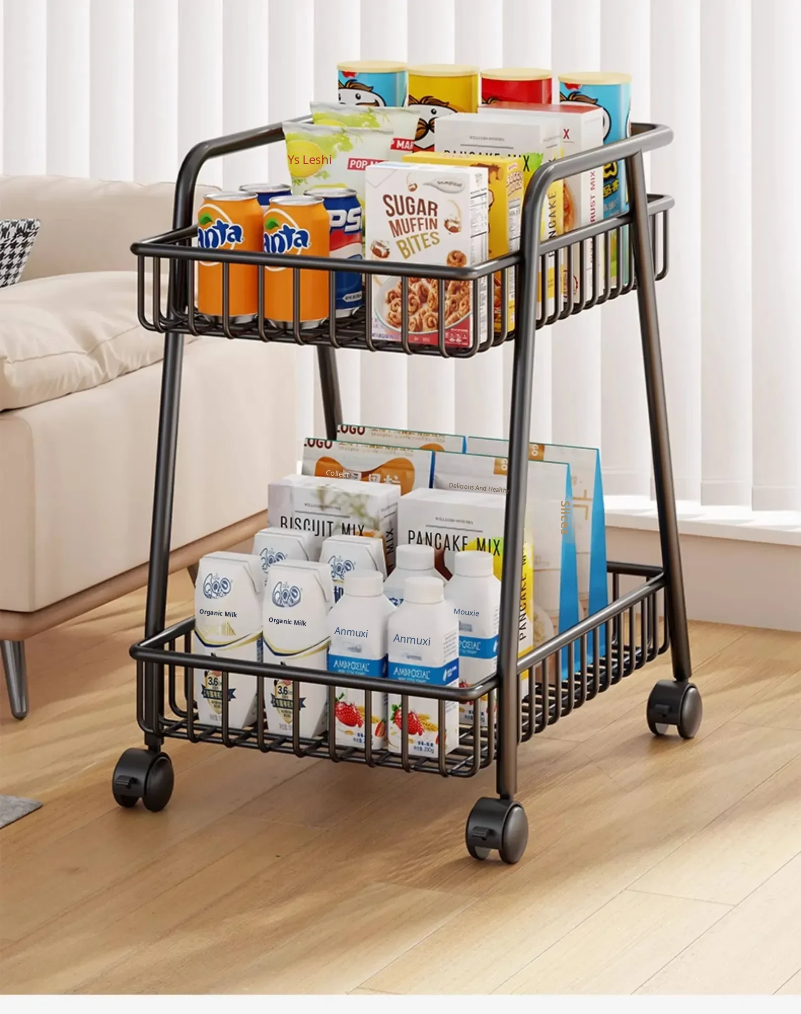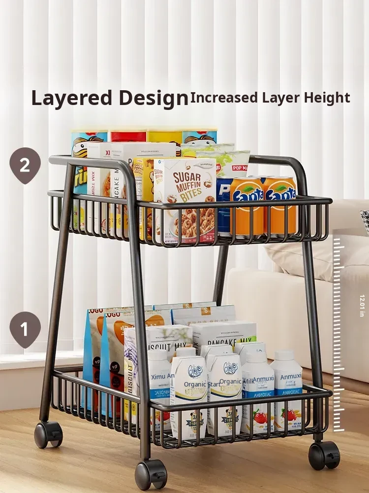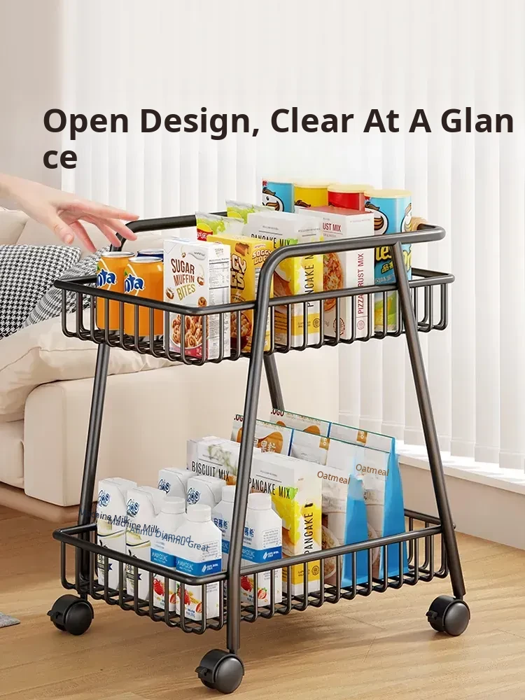 Stylish Mobile Living Room Storage Rack with Wheels - Versatile Iron Snack Organizer and Kitchen Cart for Easy Access and Space-Saving Solutions