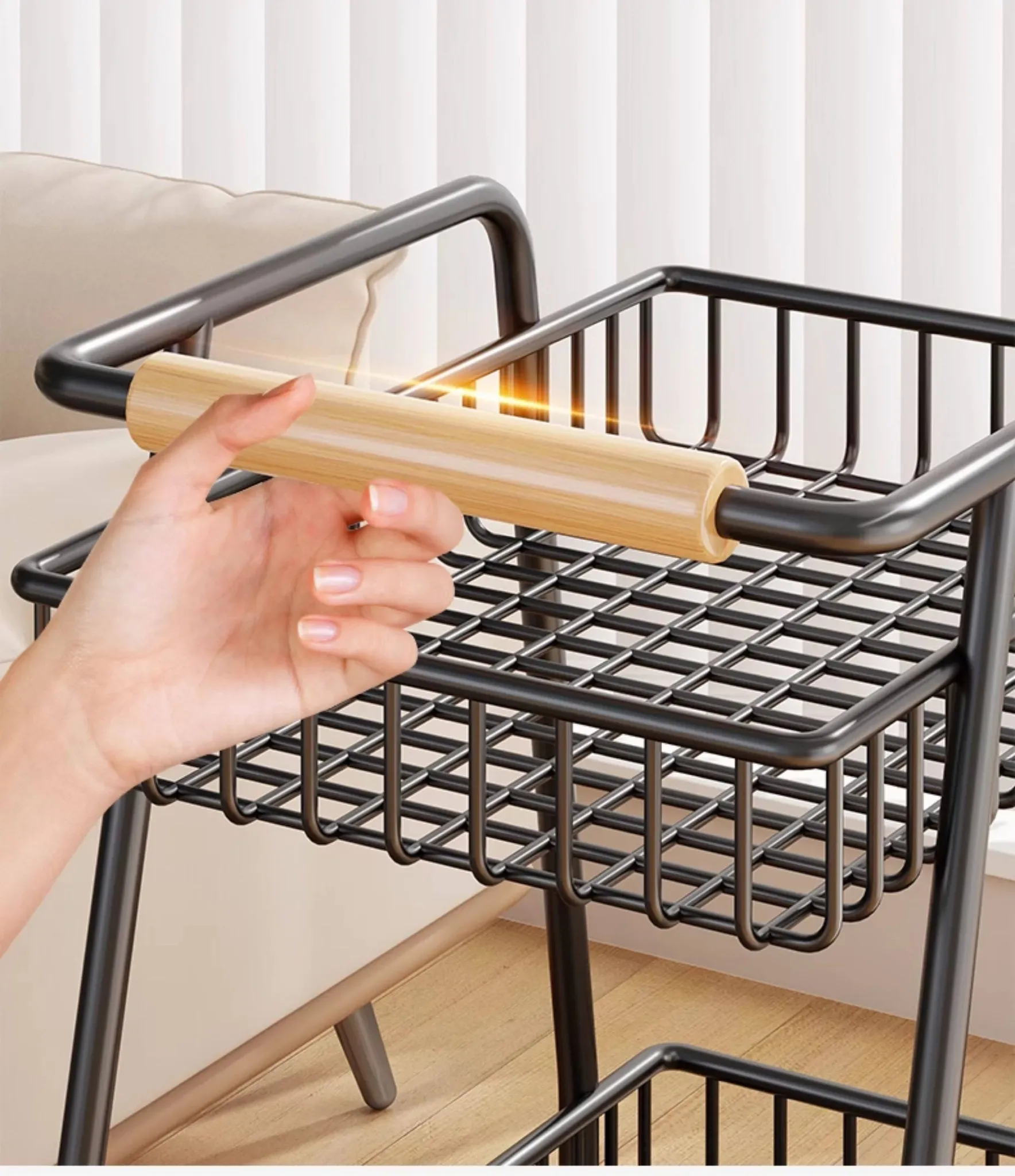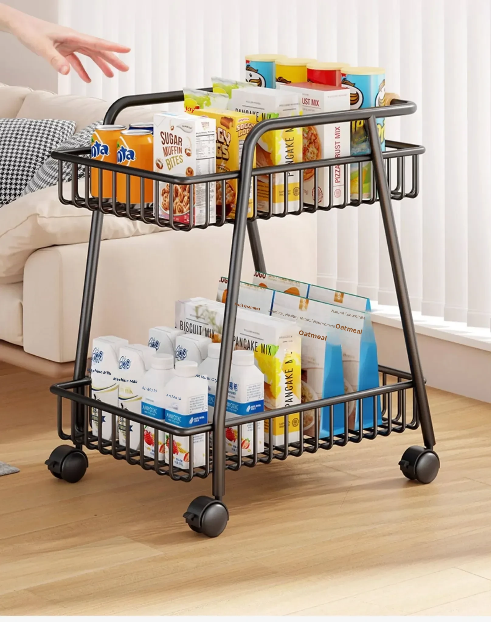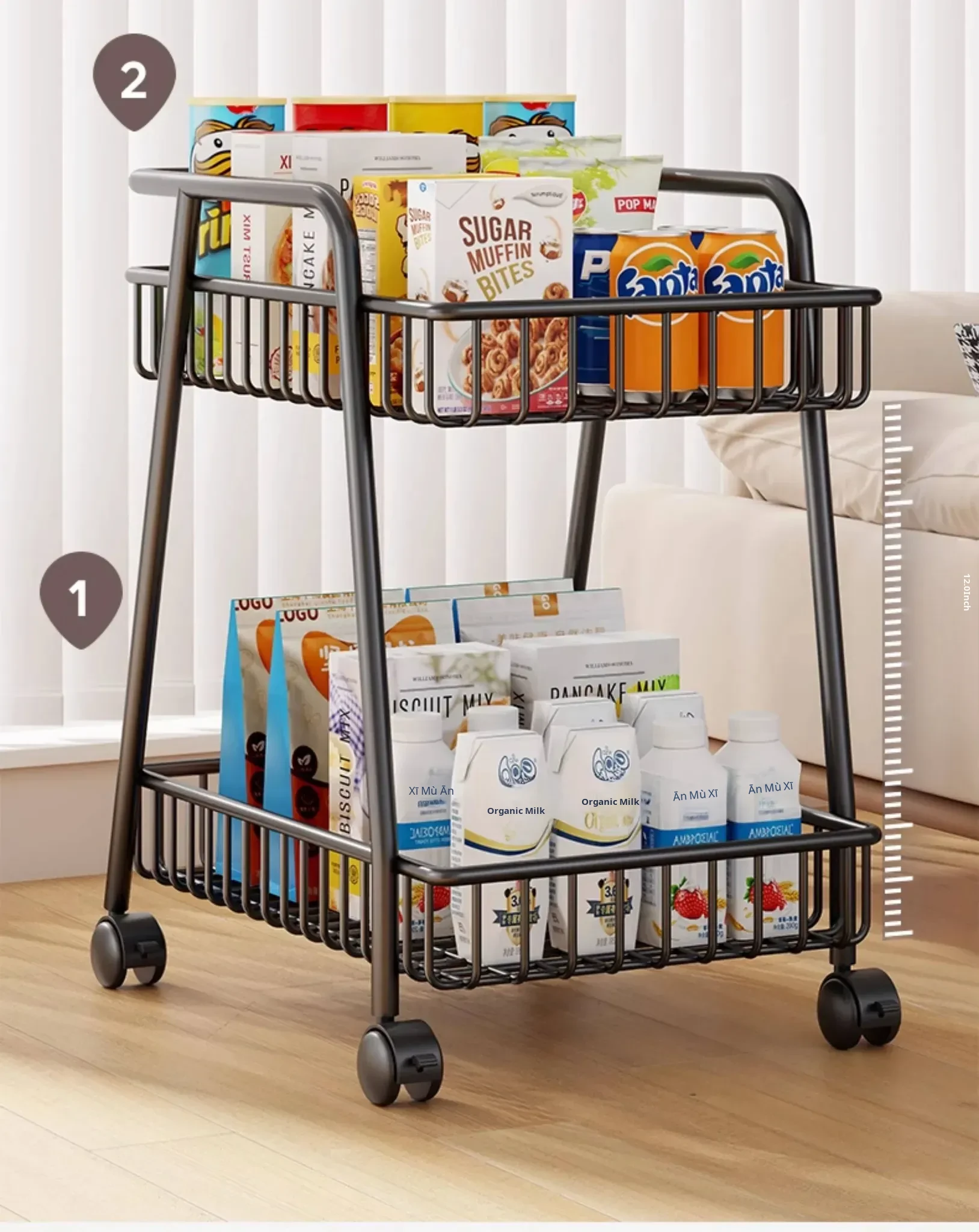Stylish Mobile Living Room Storage Rack with Wheels - Versatile Iron Snack Organizer and Kitchen Cart for Easy Access and Space-Saving Solutions