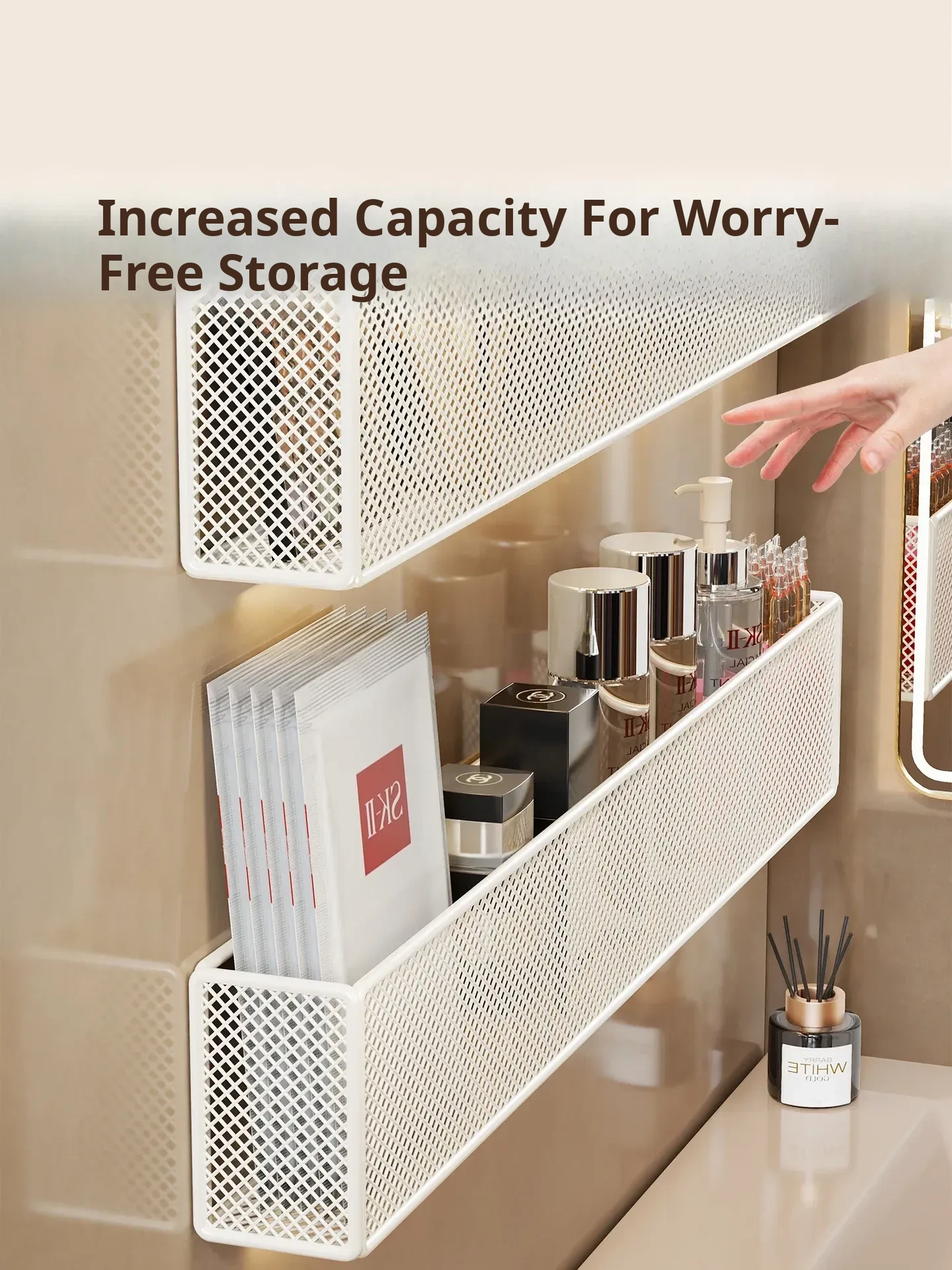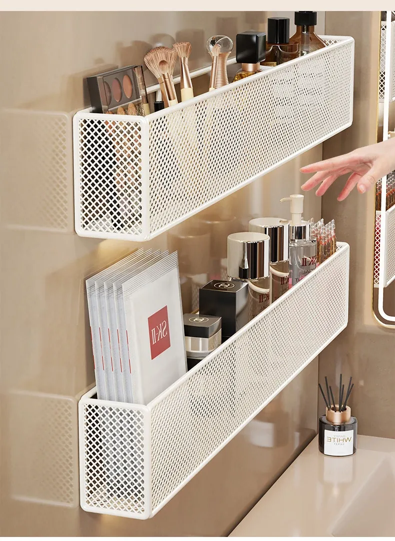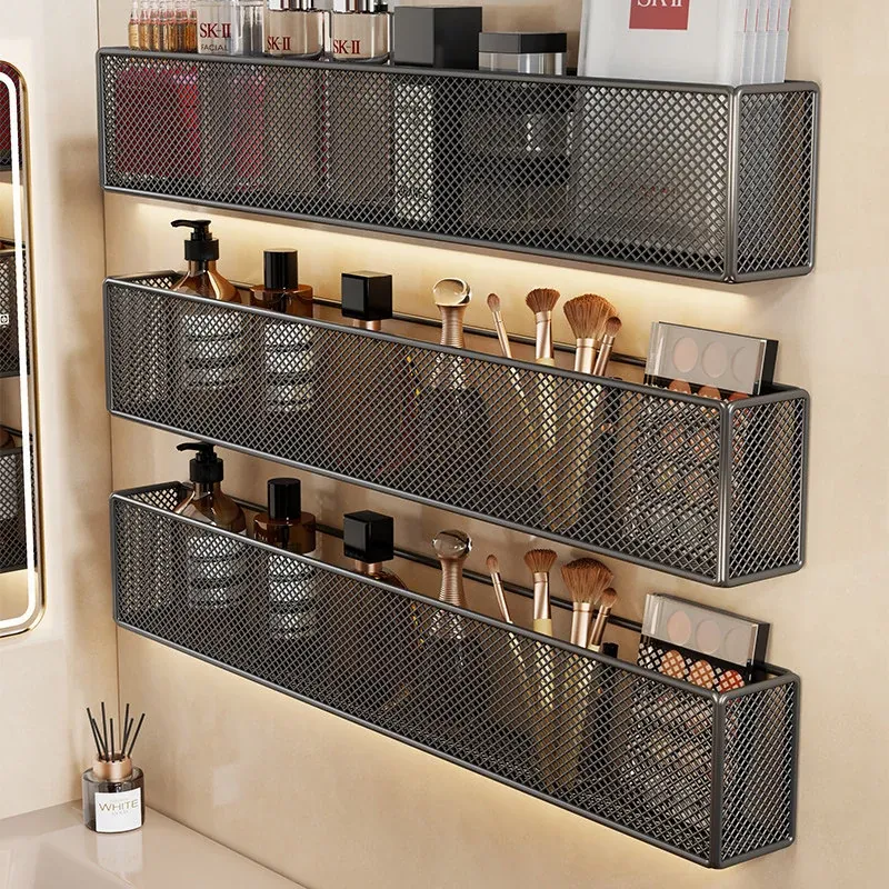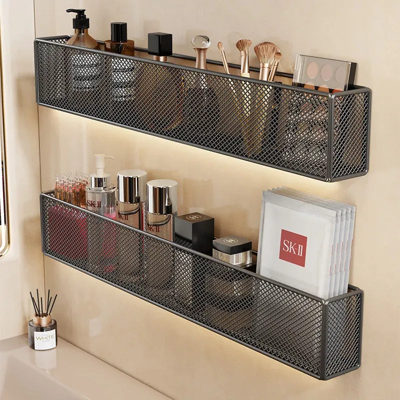 Wall-Mounted Bathroom Organizer Rack for Cosmetics, Lipsticks, Combs, and Face Masks – Stylish and Practical Storage Solution for Your Vanity and Shower Space
