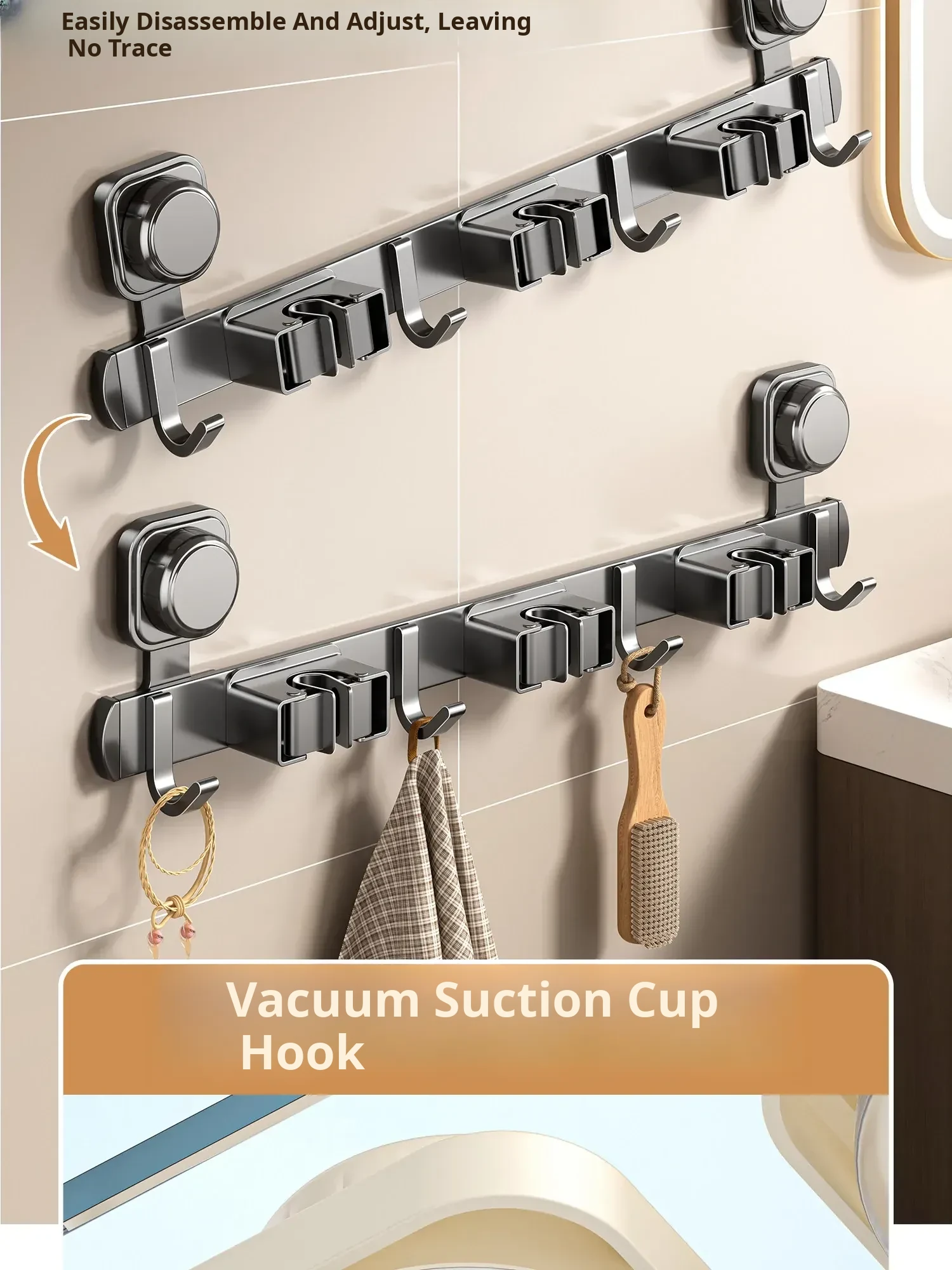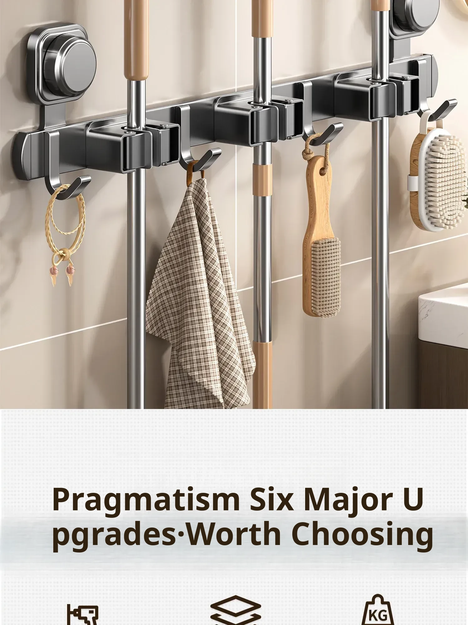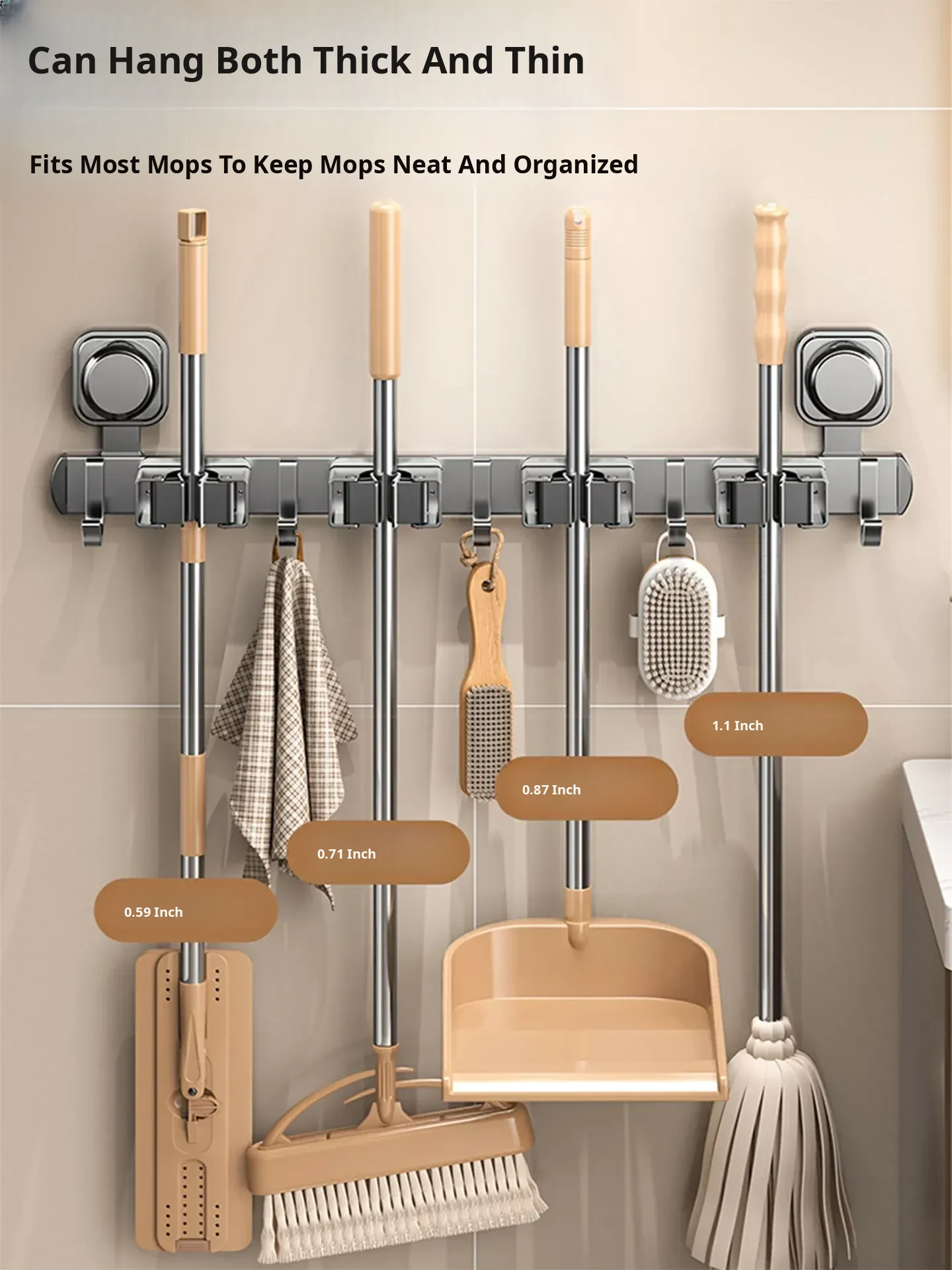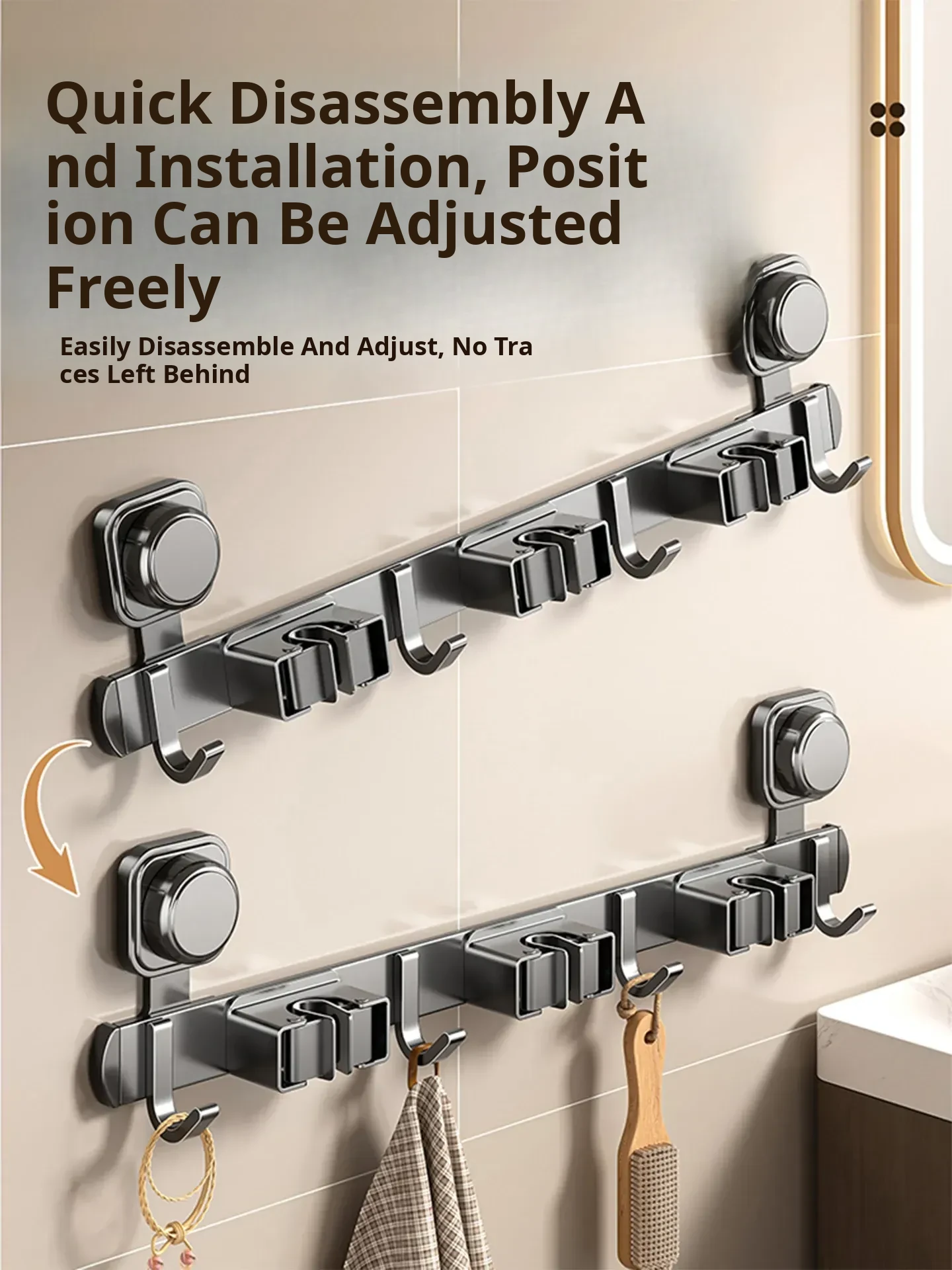 Wall-Mounted Mop Holder with Suction Cup - No Drilling Required, Perfect for Bathroom Storage, Keeps Mops and Brooms Organized and Accessible!