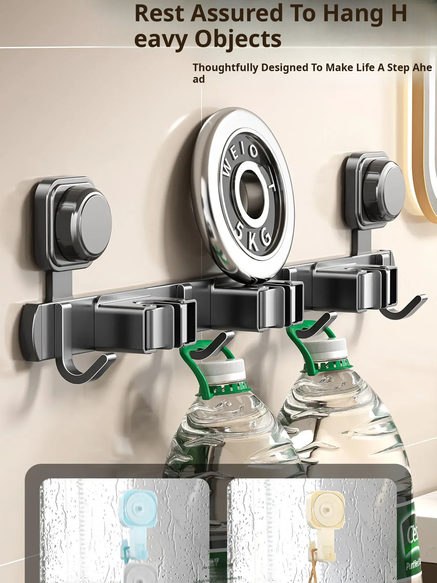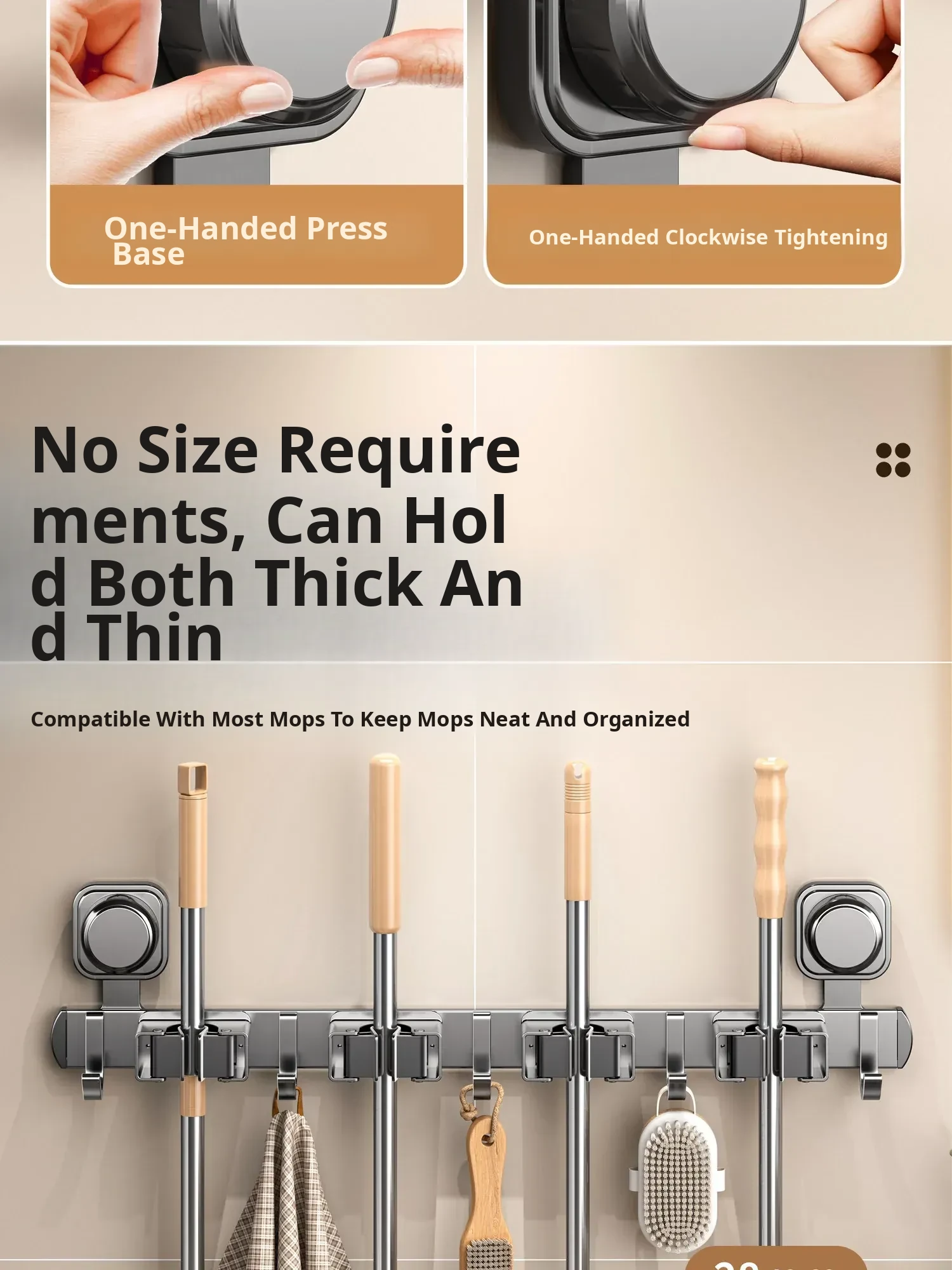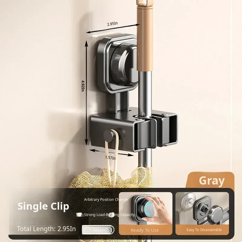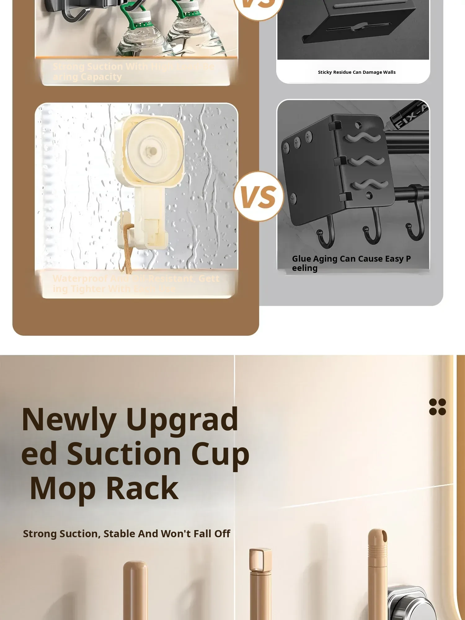 Wall-Mounted Mop Holder with Suction Cup - No Drilling Required, Perfect for Bathroom Storage, Keeps Mops and Brooms Organized and Accessible!