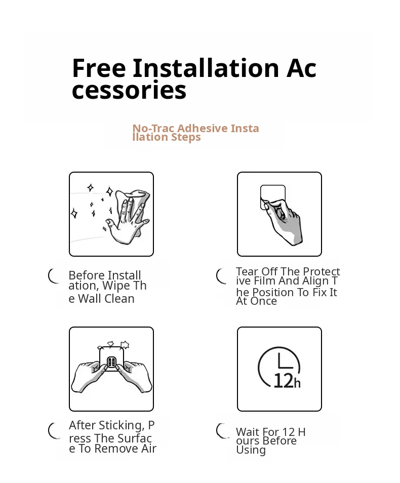 Walnut Color [Rubber Wood] - Free Traceless Stickers + Traceless Nails