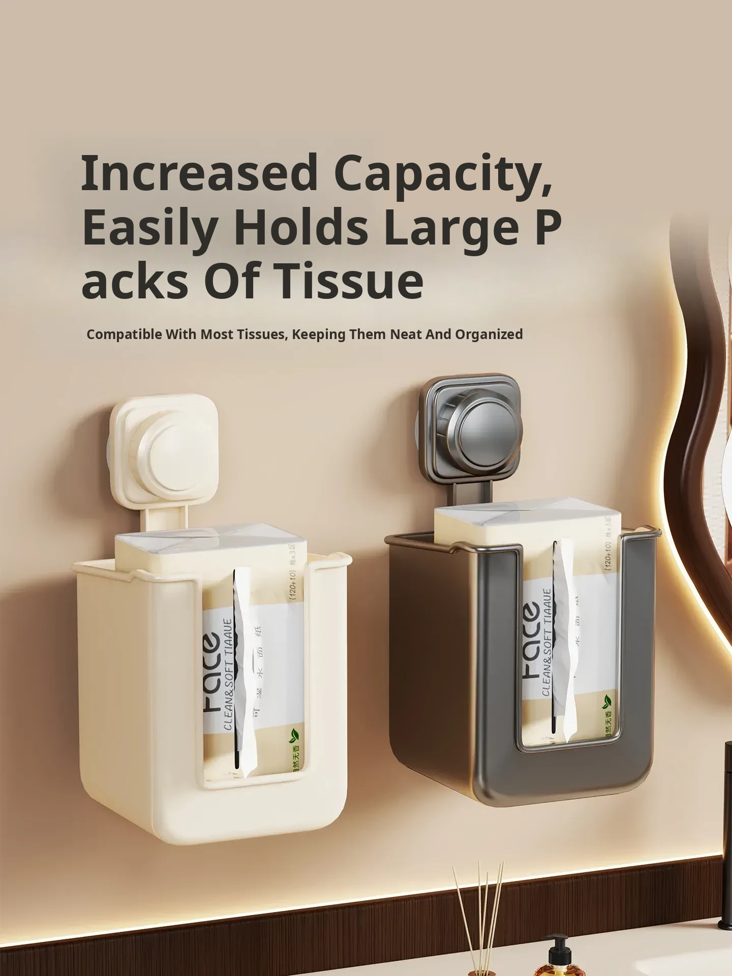 Wall-Mounted Tissue Box - No Drilling Required, Perfect for Home Use! Ideal for Bathrooms, Kitchens, and Restrooms. Keep Your Face Tissues and Wet Wipes Organized and Easily Accessible!