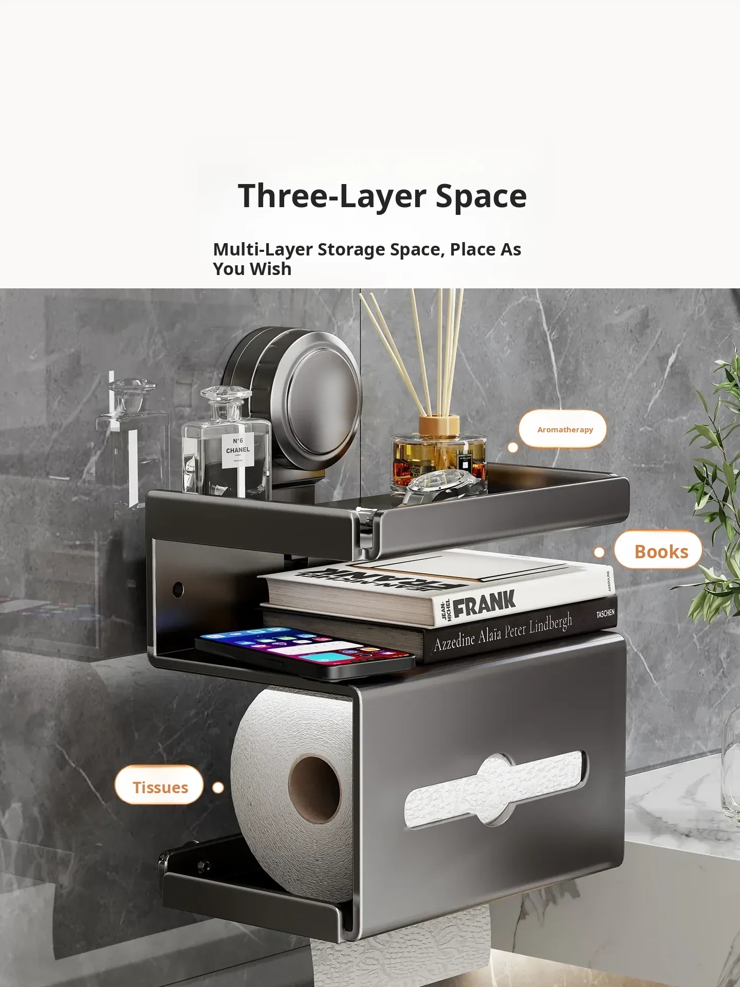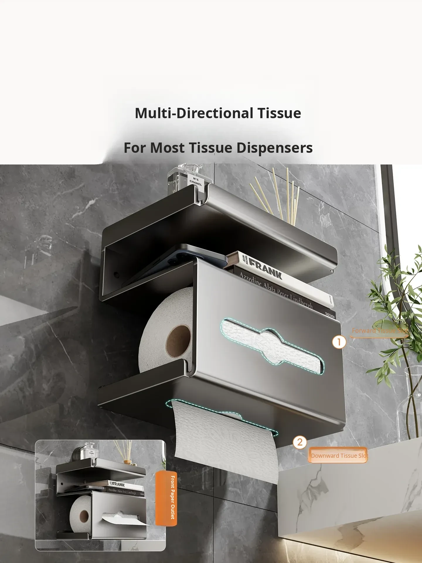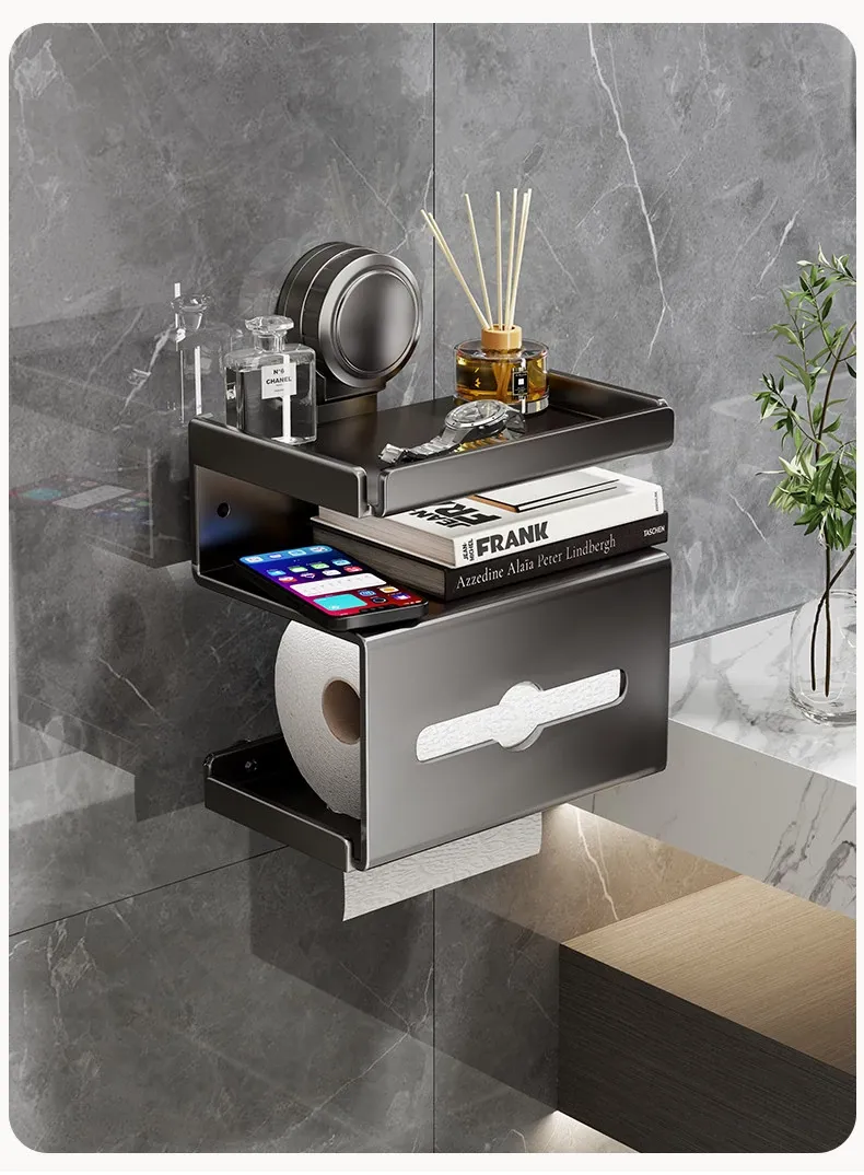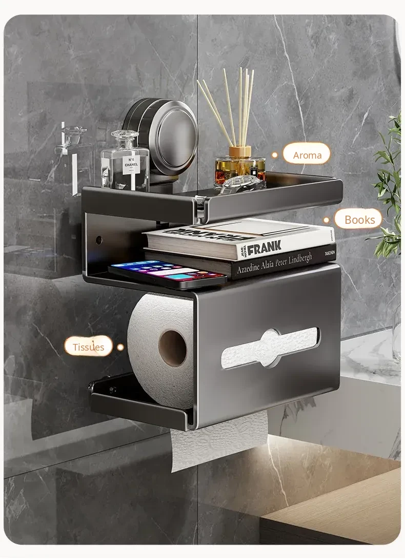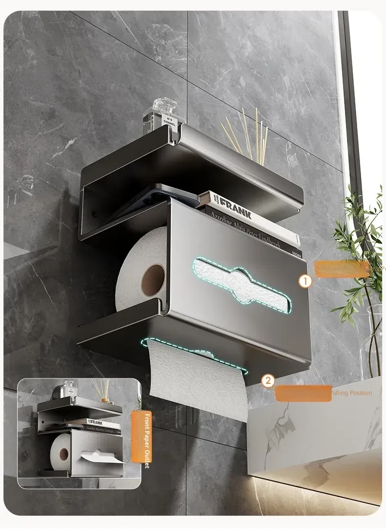 Wall-Mounted Tissue Holder - No Drill Bathroom Toilet Paper Dispenser, Space-Saving Storage Rack for Rolls and Wipes, Perfect for Your Stylish Bathroom Decor
