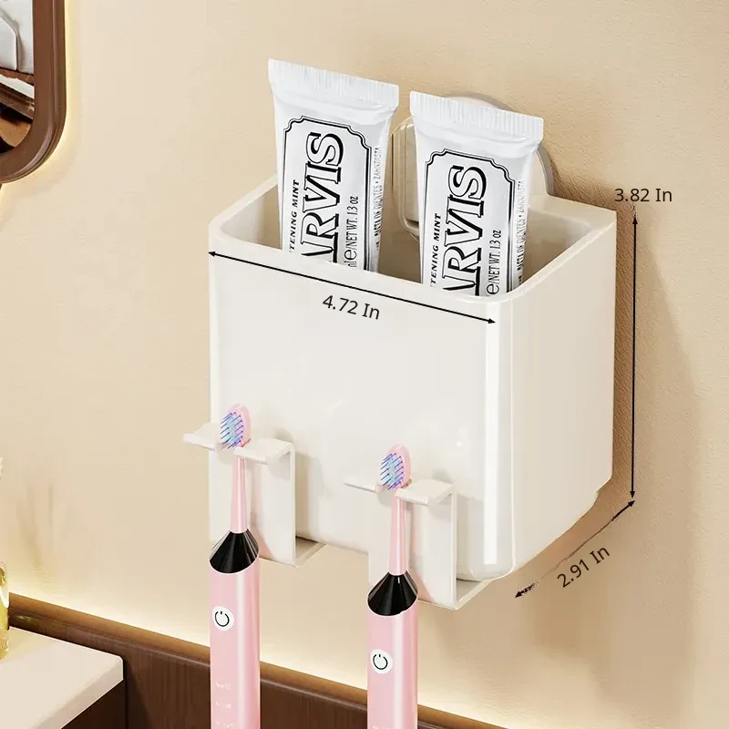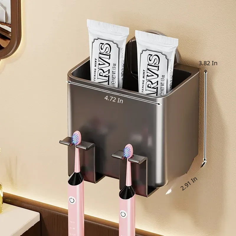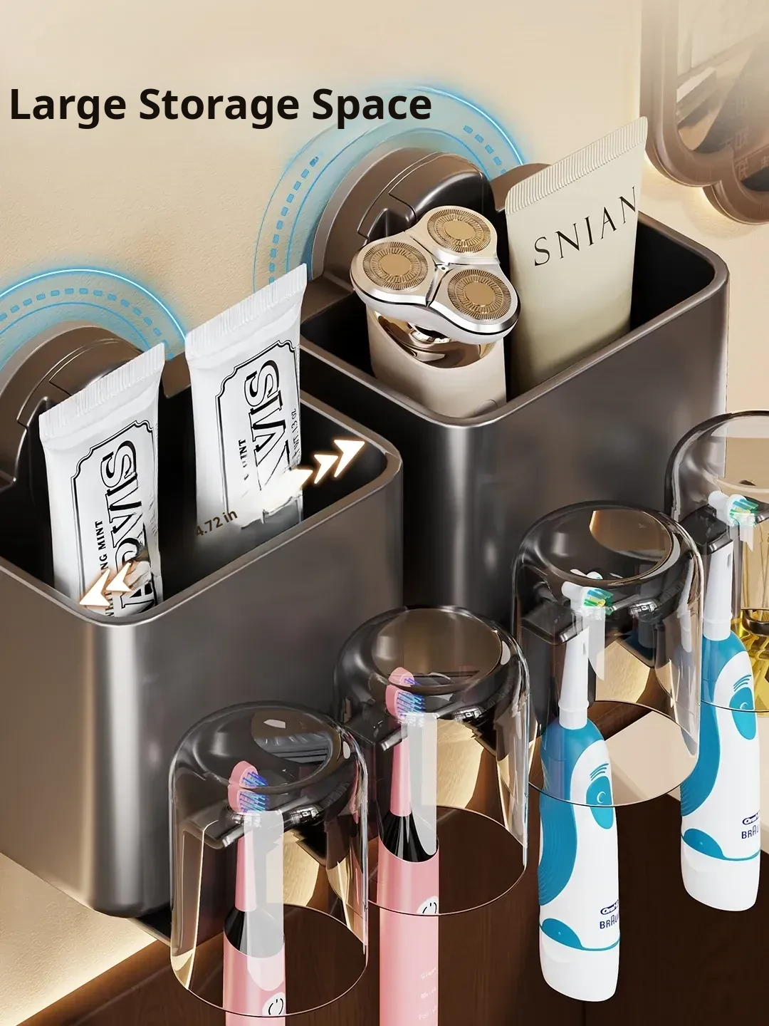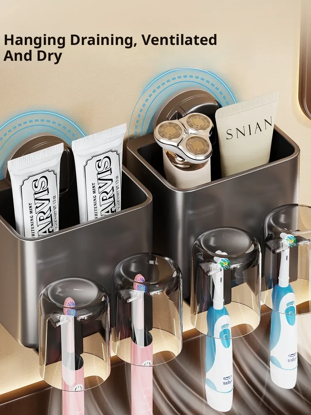 Wall-Mounted Toothbrush Holder with Suction Cup - No Drilling Required! Ideal for Bathroom, Includes Space for Rinsing Cup, Electric Toothbrush, and Toothpaste. Keep Your Bathroom Organized and Stylish!