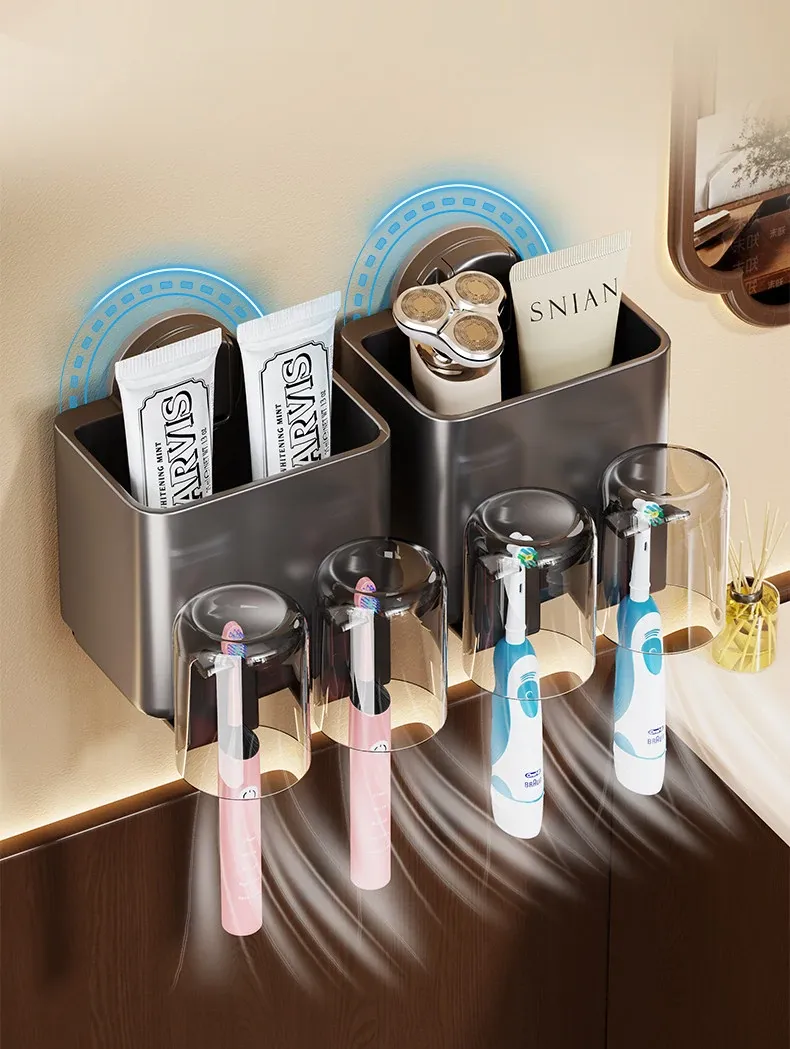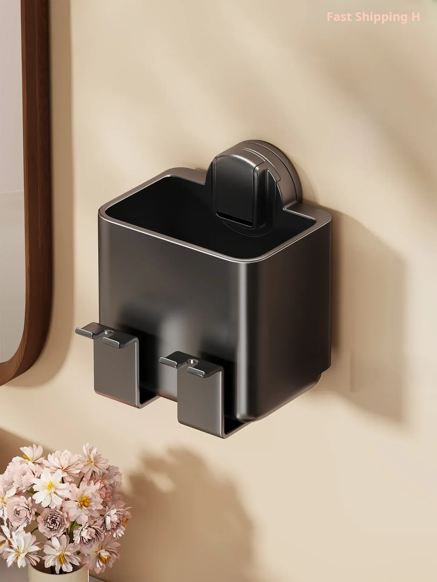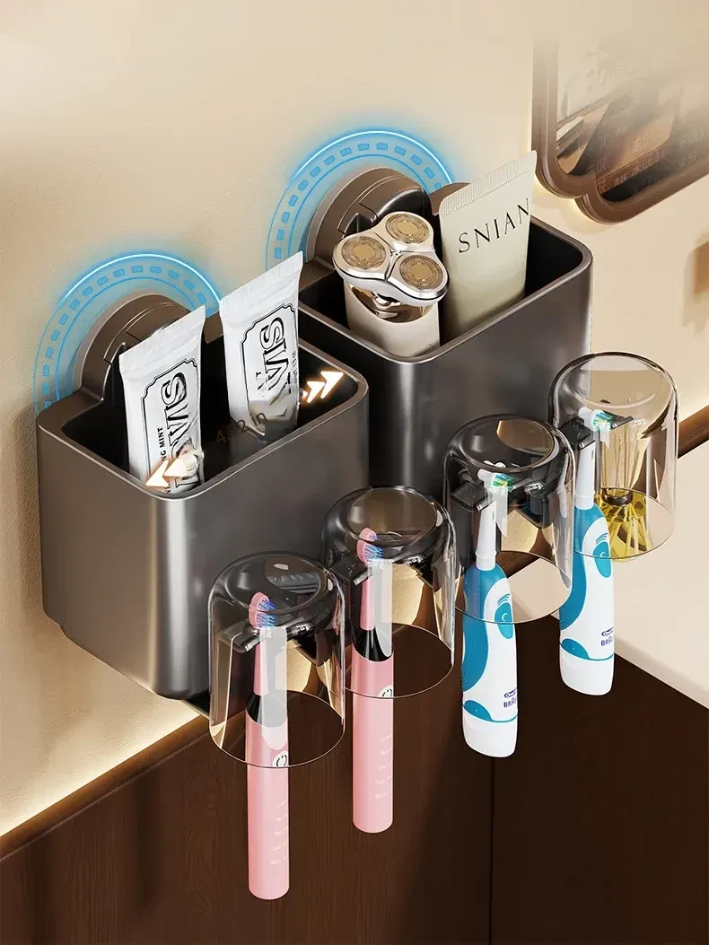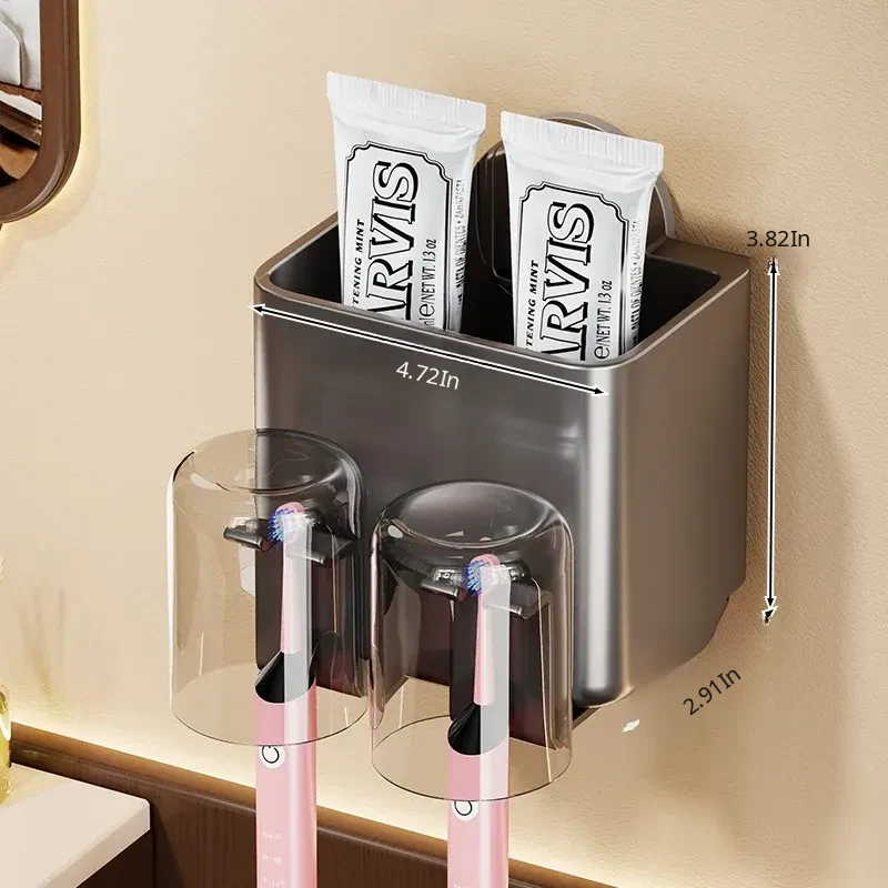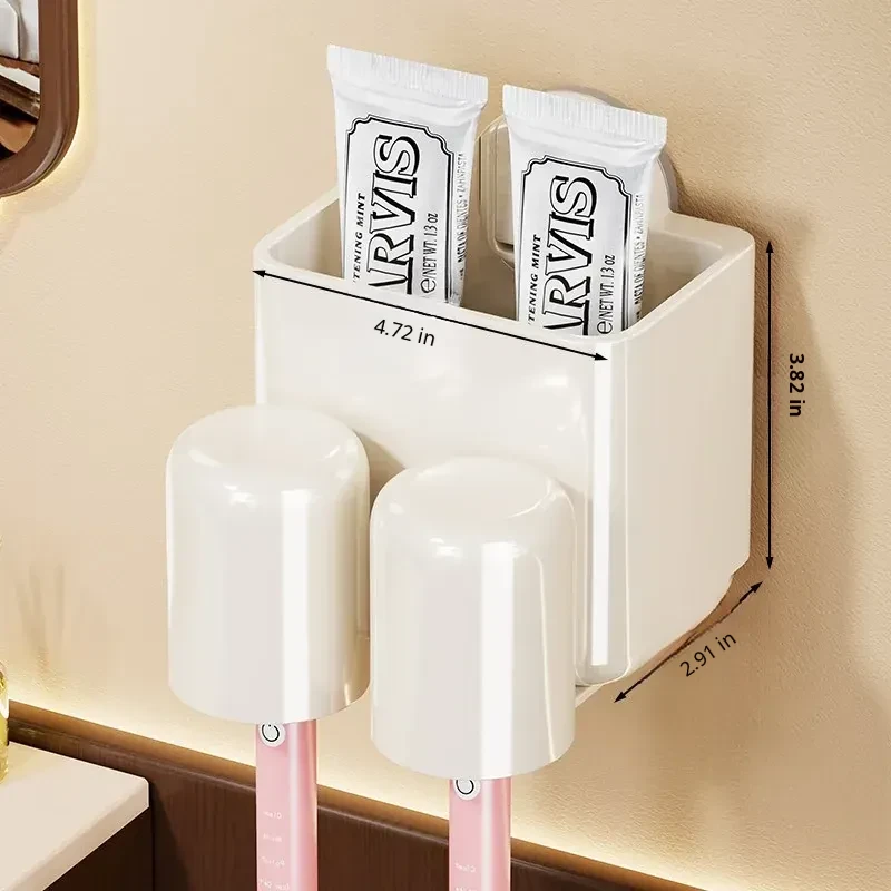 Wall-Mounted Toothbrush Holder with Suction Cup - No Drilling Required! Ideal for Bathroom, Includes Space for Rinsing Cup, Electric Toothbrush, and Toothpaste. Keep Your Bathroom Organized and Stylish!