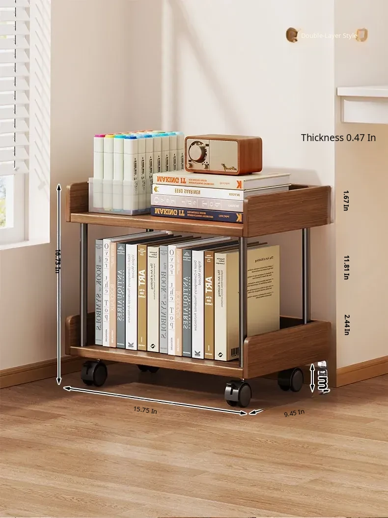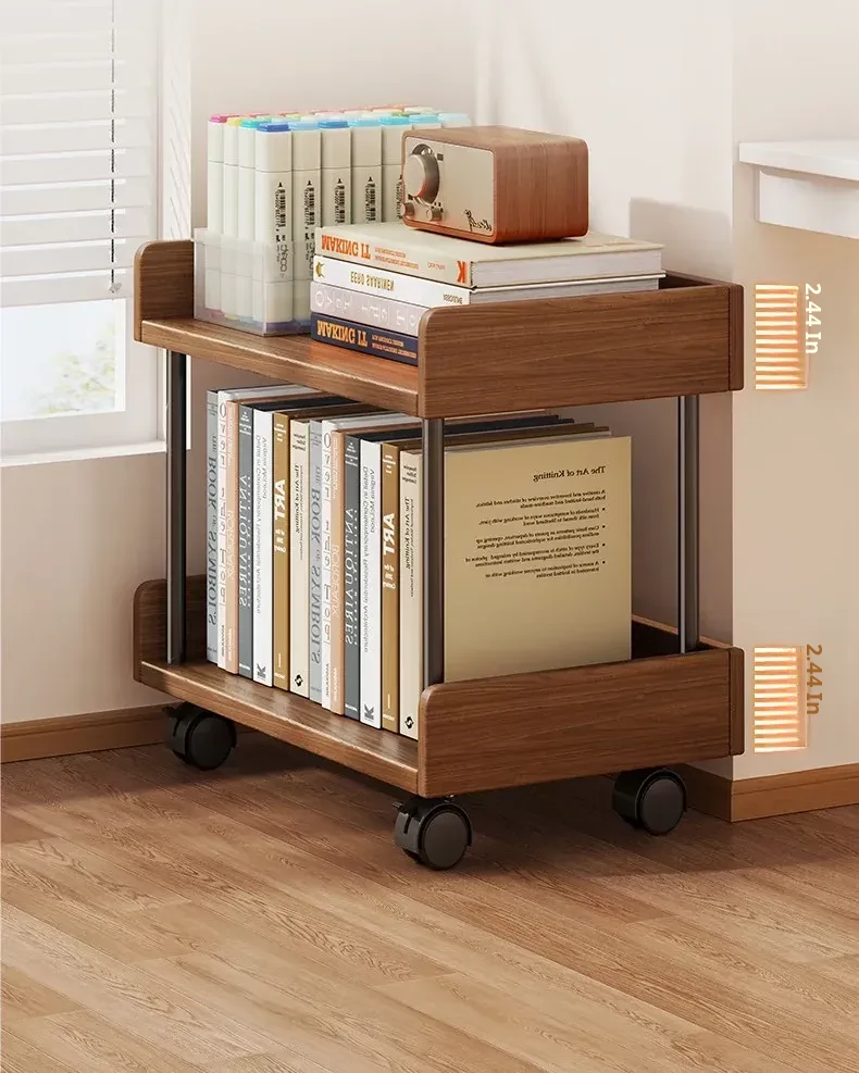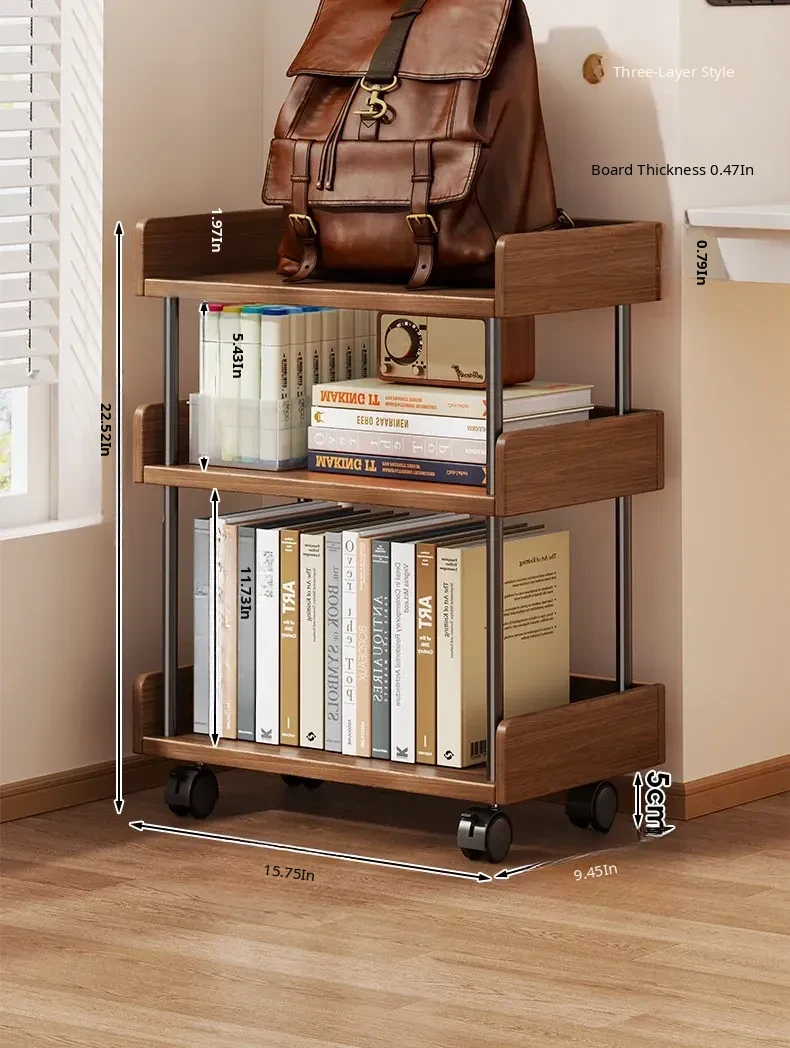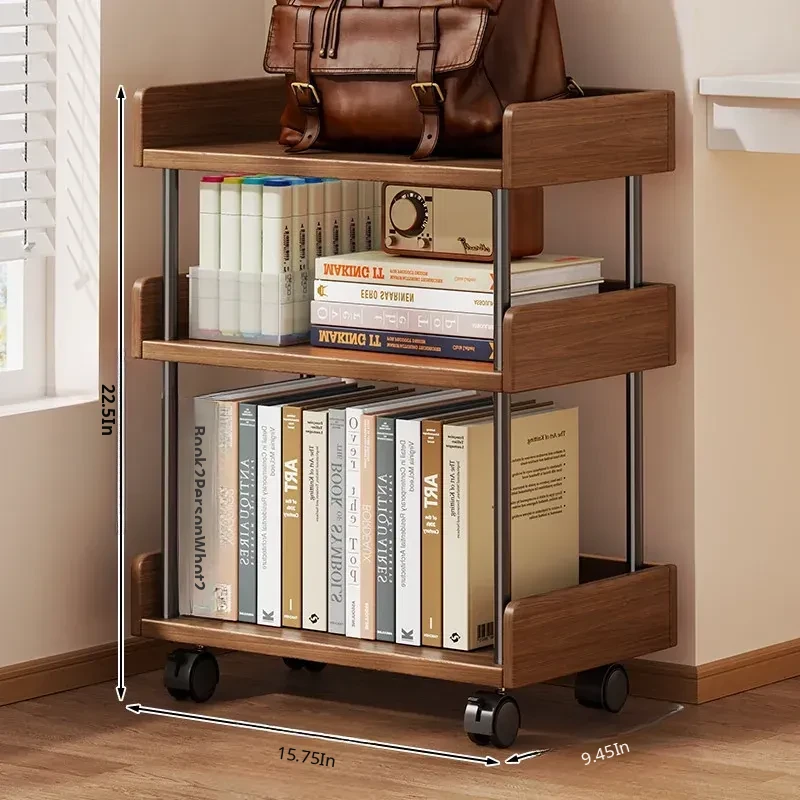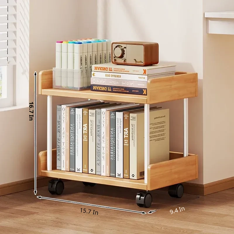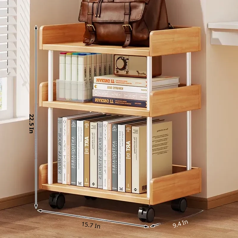 Wooden Book Storage Rack with Wheels - Mobile Snack Cart and Backpack Organizer, Perfect for Keeping Your Space Tidy!