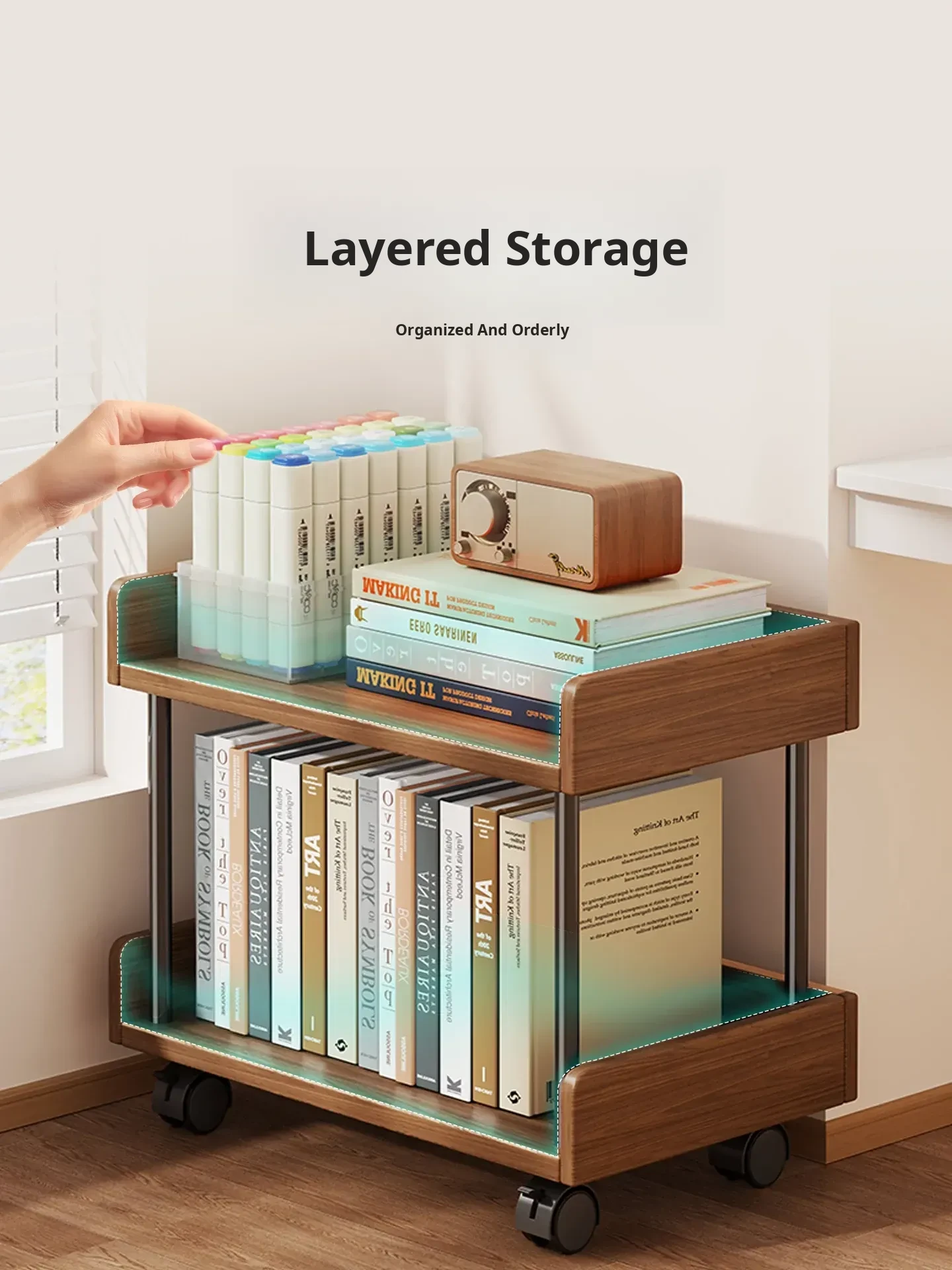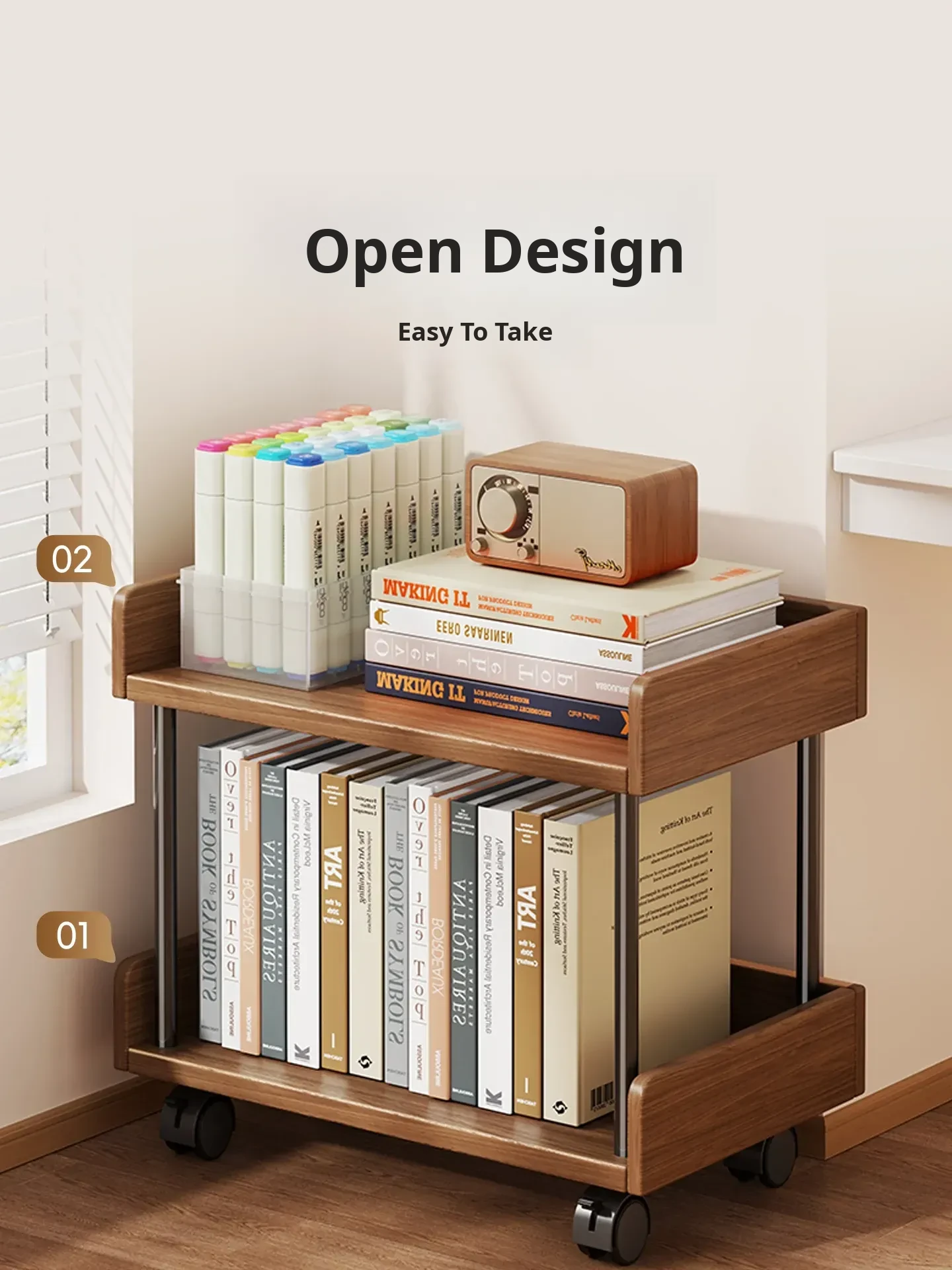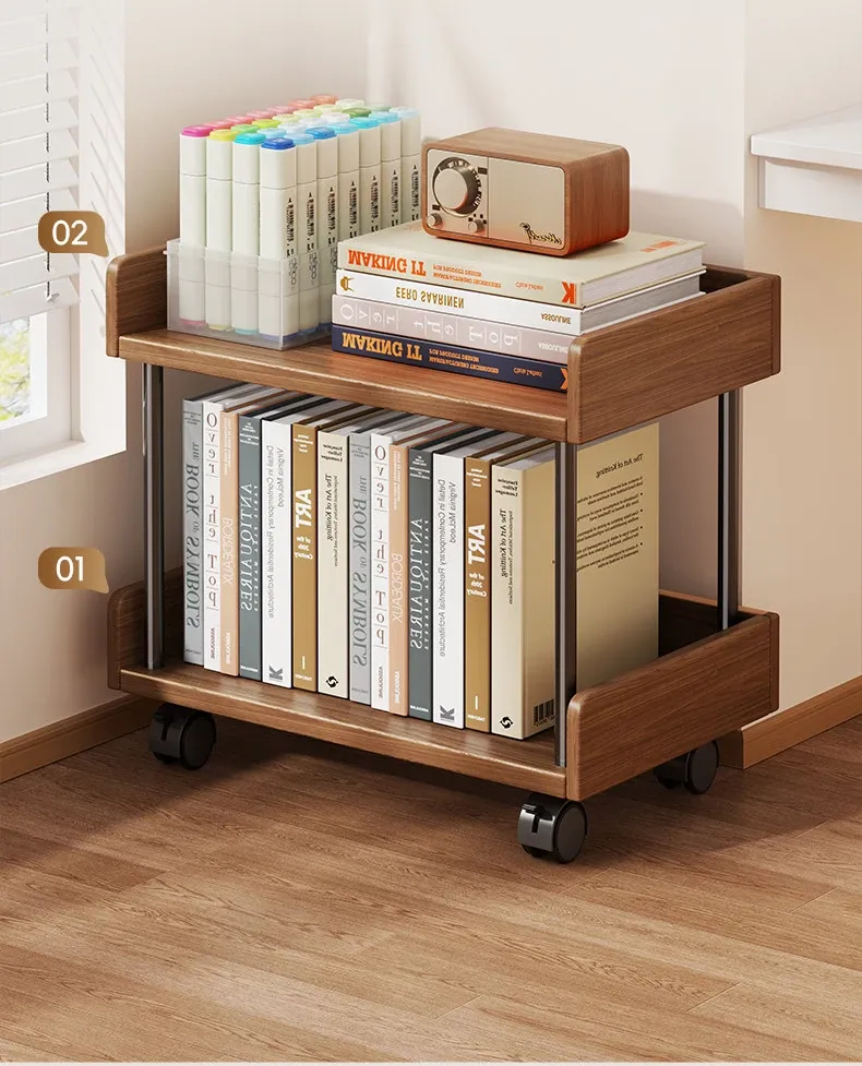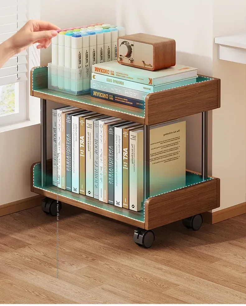 Wooden Book Storage Rack with Wheels - Mobile Snack Cart and Backpack Organizer, Perfect for Keeping Your Space Tidy!