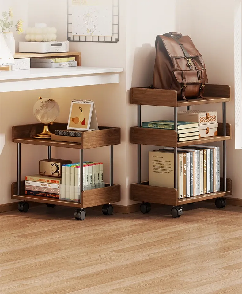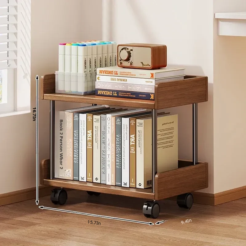 Walnut Color with Wheels (Two Layers) [Imported Solid Wood]