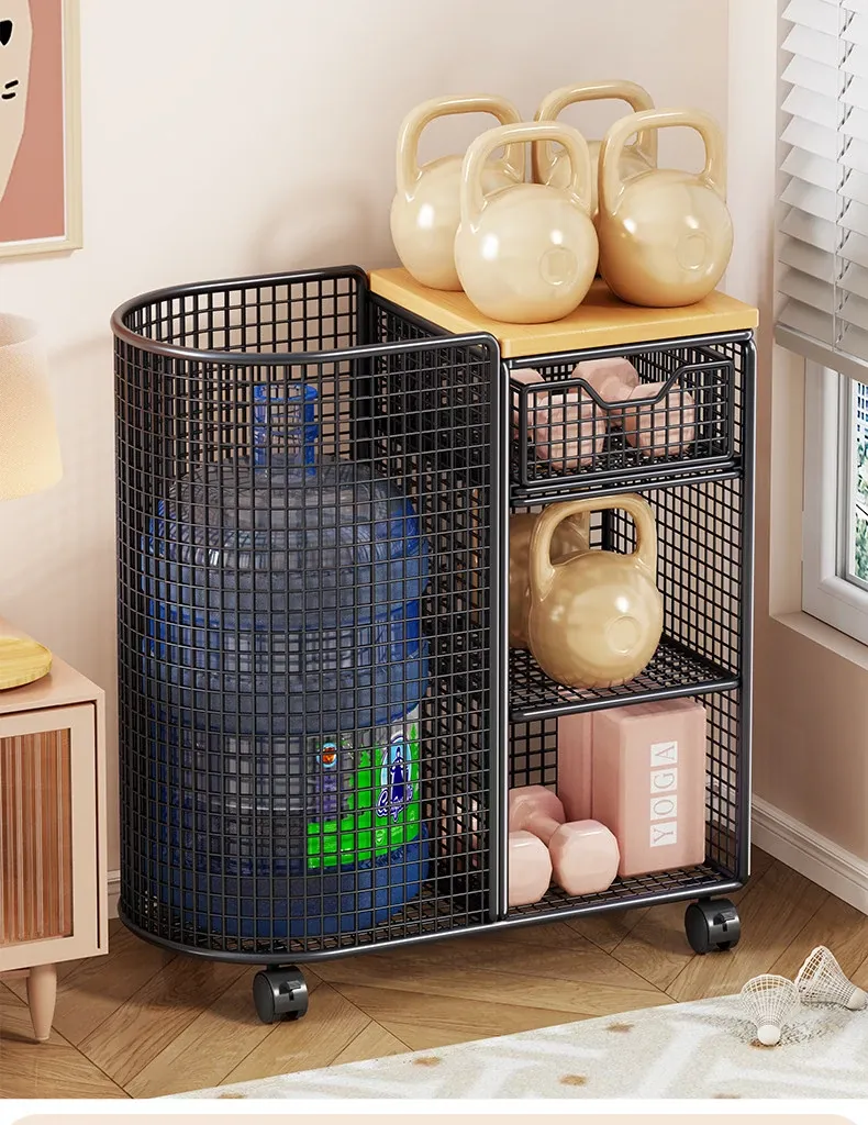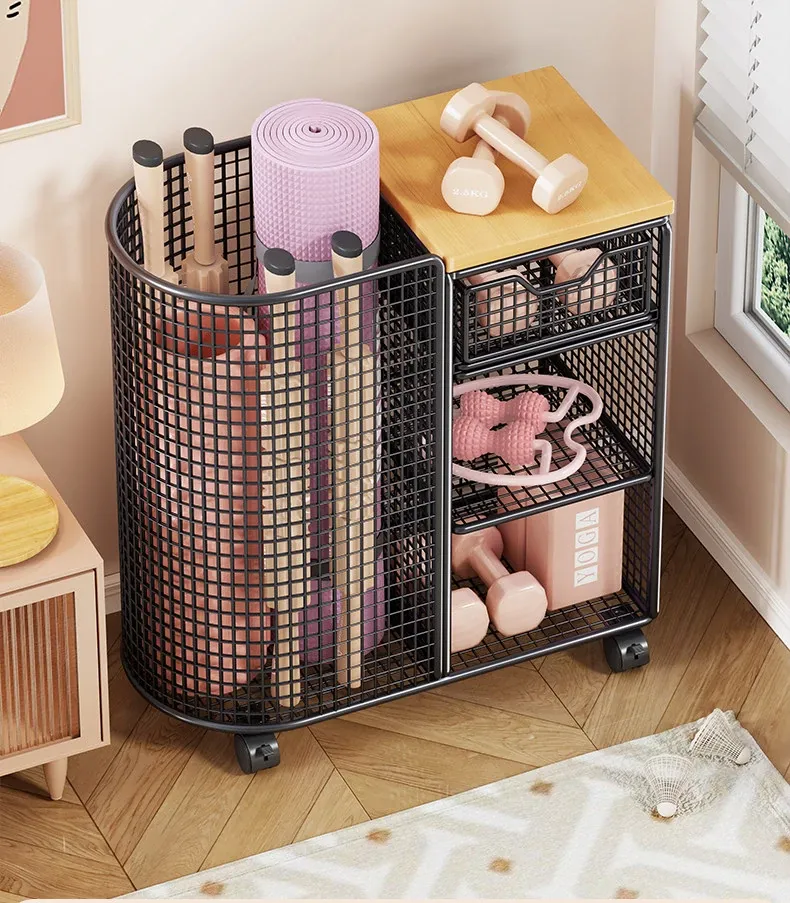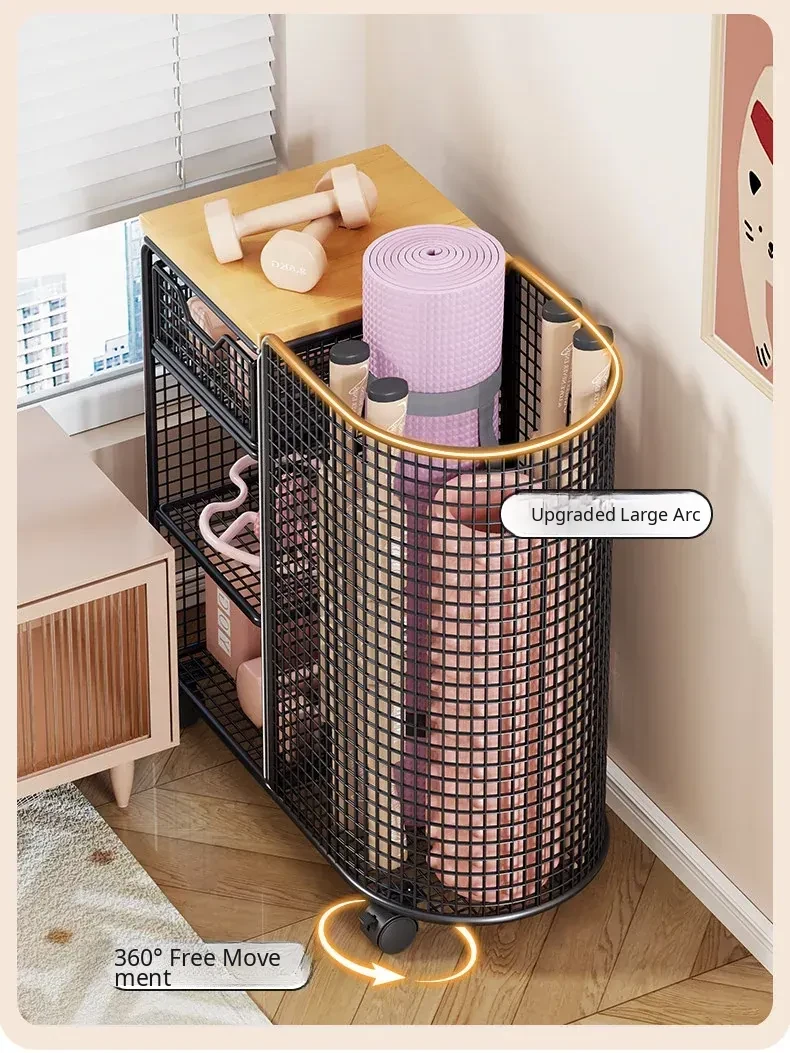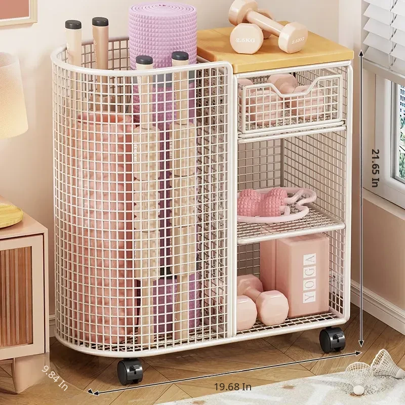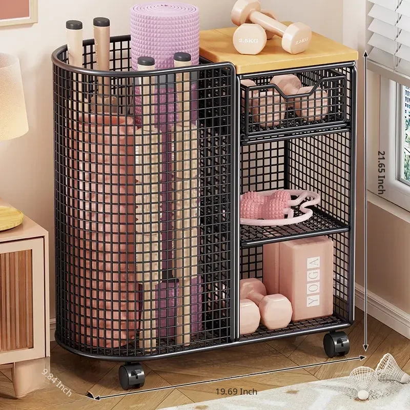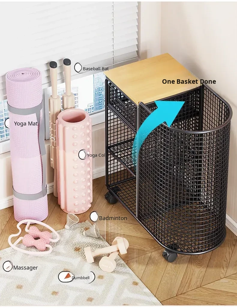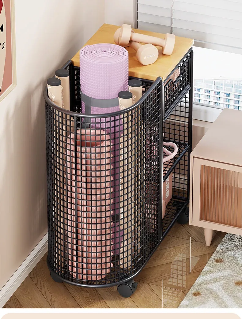 Yoga Mat Storage Basket with Wheels - Portable Organizer for Home, Ideal for Basketball and Fitness Equipment. Perfect Solution for Keeping Your Workout Space Tidy!