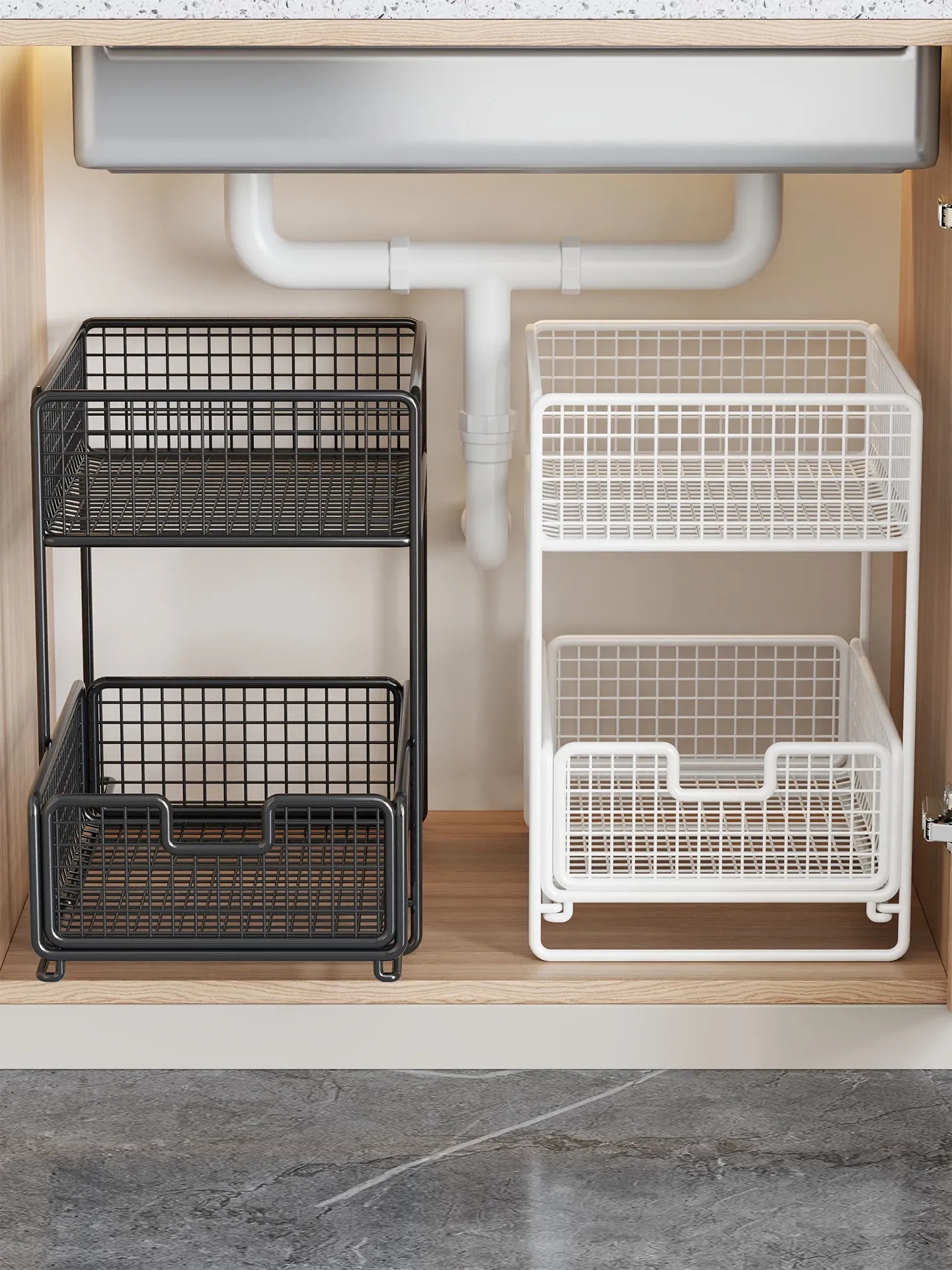 Pull-Out Bathroom Storage Rack for Sink - Under-Sink Organizer with Baskets for Toilets and Vanities - Multi-Tier Shelf for Efficient Bathroom Storage Solutions