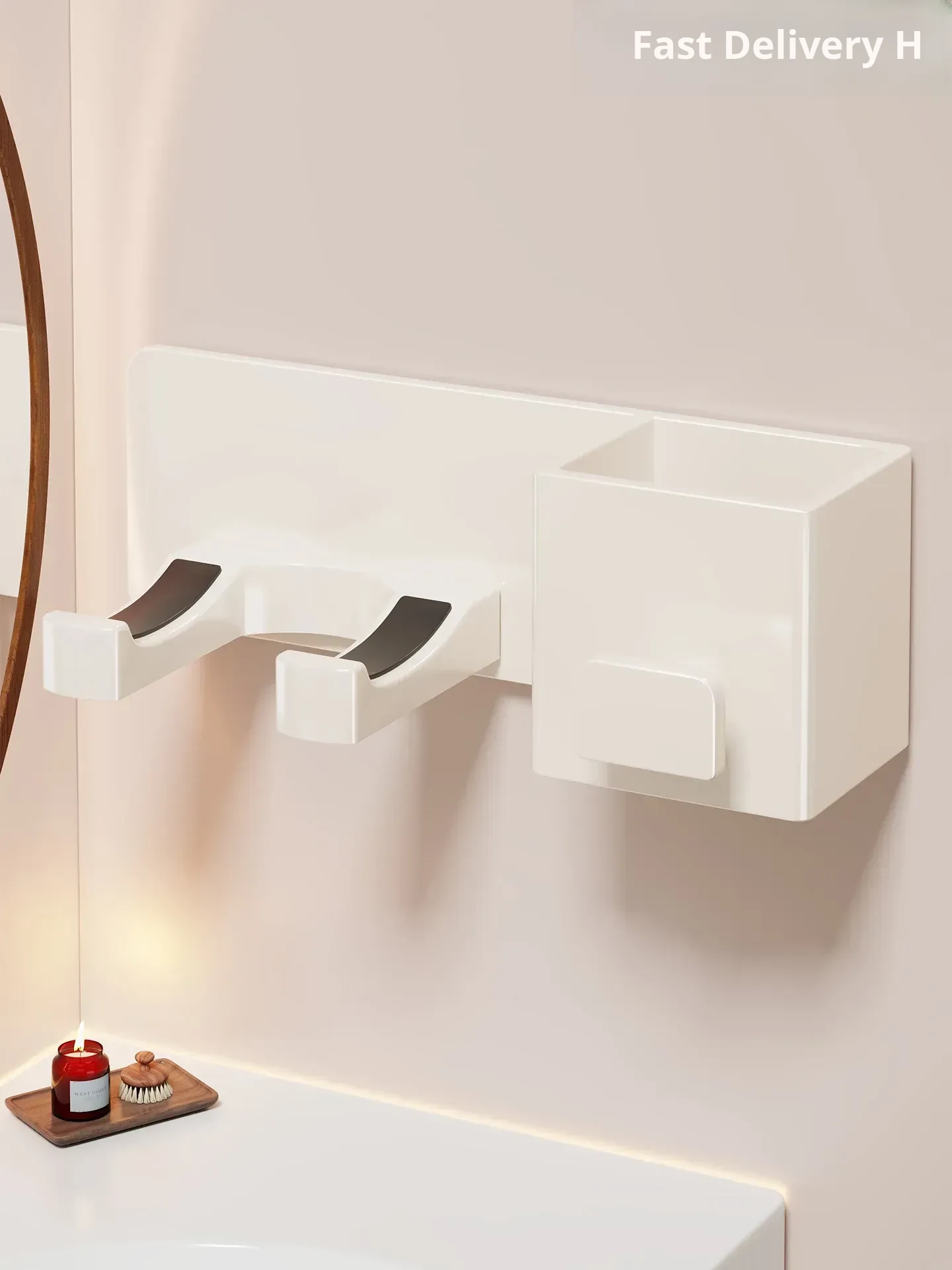 Wall-Mounted Hair Dryer Holder - No Drilling Required, Space-Saving Organizer for Bathroom and Shower - Tangle-Free Storage Rack