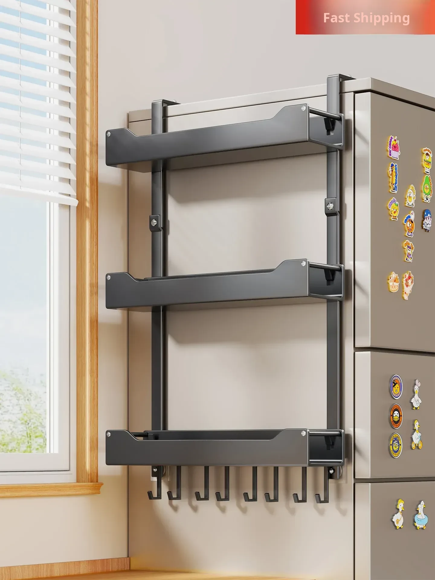 Multifunctional Side Storage Rack for Refrigerator - No Drill Wall-Mounted Organizer for Kitchen Essentials & Spice Bottles, Perfect for Home Use