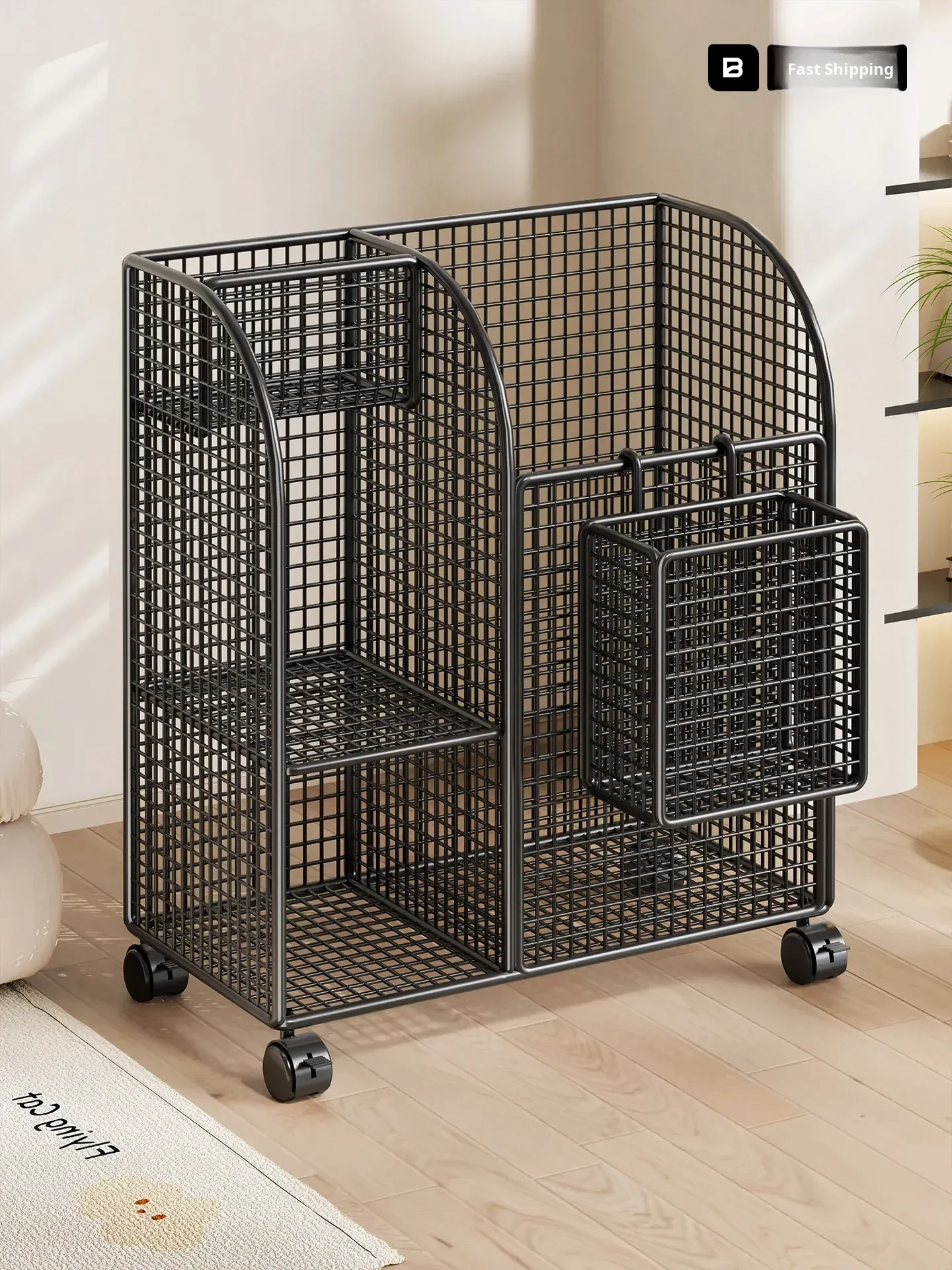 Wooden Book Storage Rack with Wheels - Mobile Snack Cart and Backpack Organizer, Perfect for Keeping Your Space Tidy!